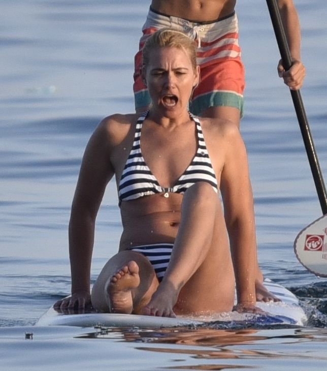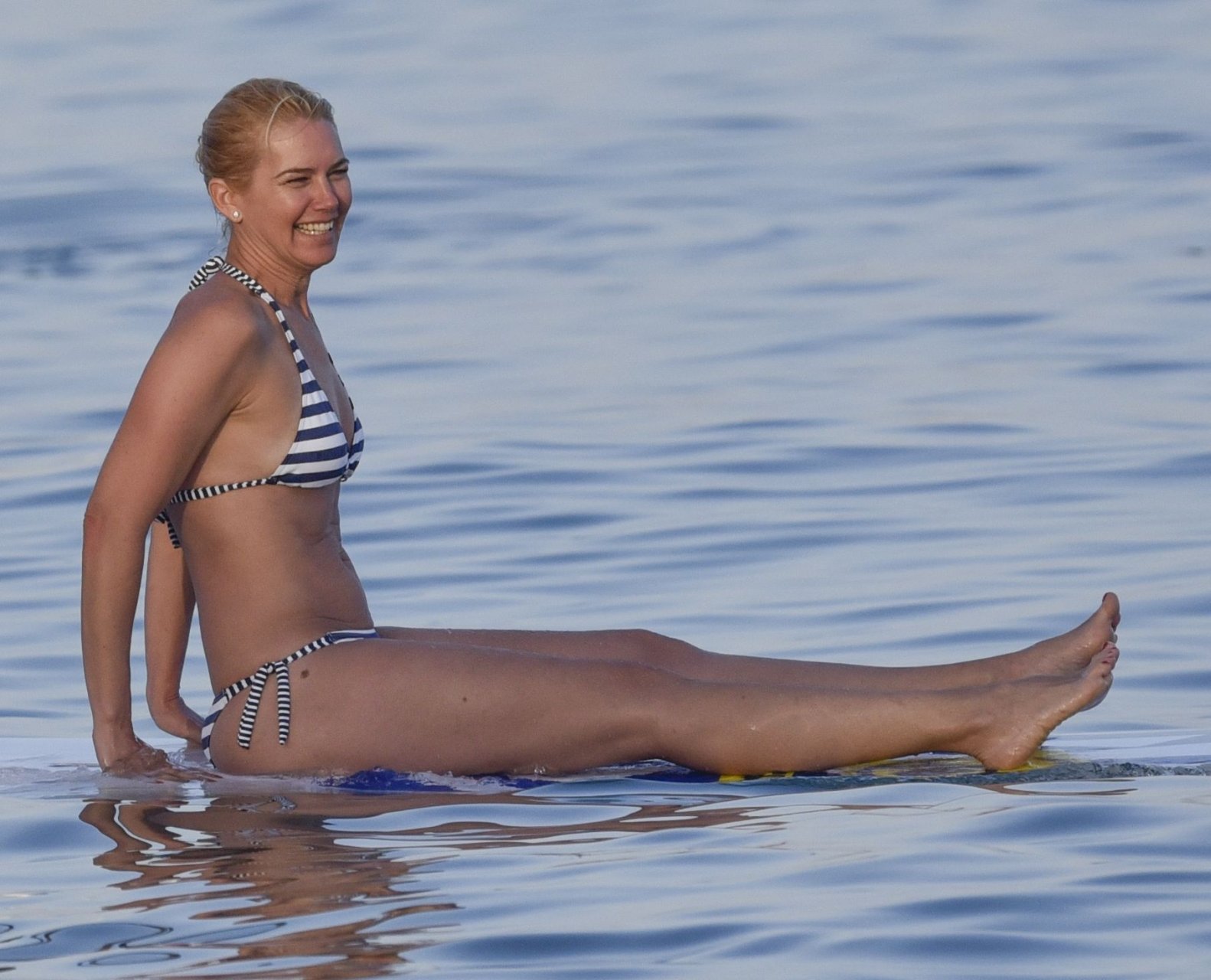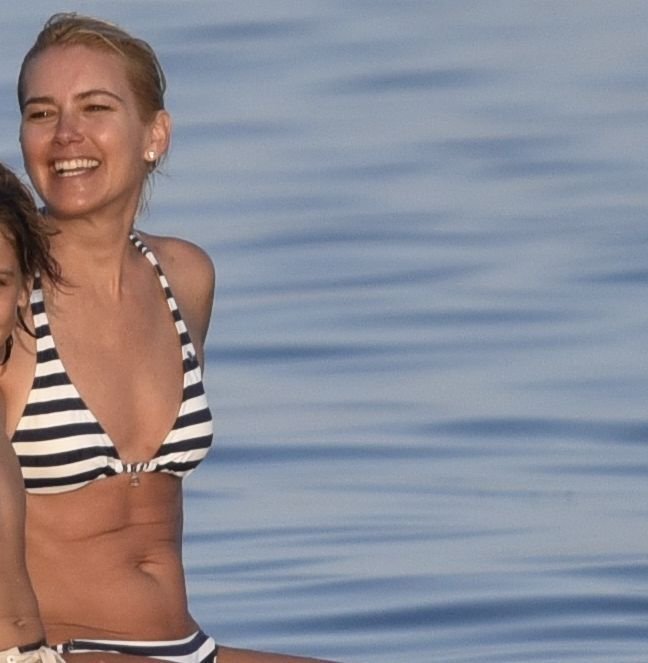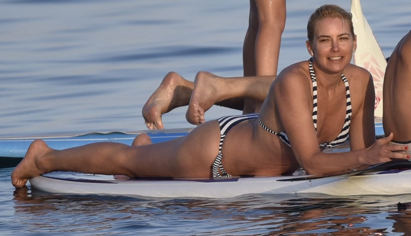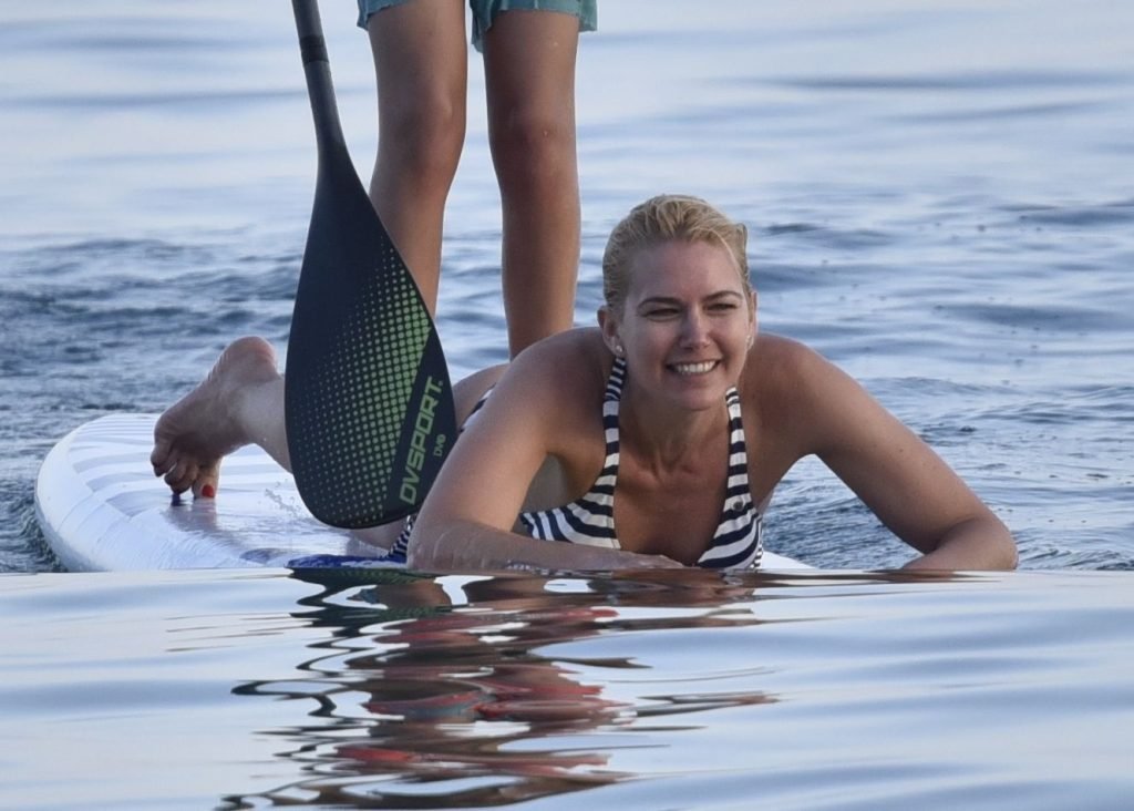 Валерия Мацца и семья катаются на сапборде в Марбелье, Испания, 23.08.2017. Валерия Мацца — аргентинская модель и бизнесвумен, считается первой латиноамериканской супермоделью. Возраст: 45.