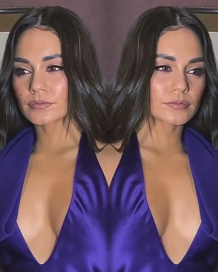 Ванесса Хадженс выглядит сексуально в глубокодекольтированном фиолетовом платье (8 фото + GIF и видео)