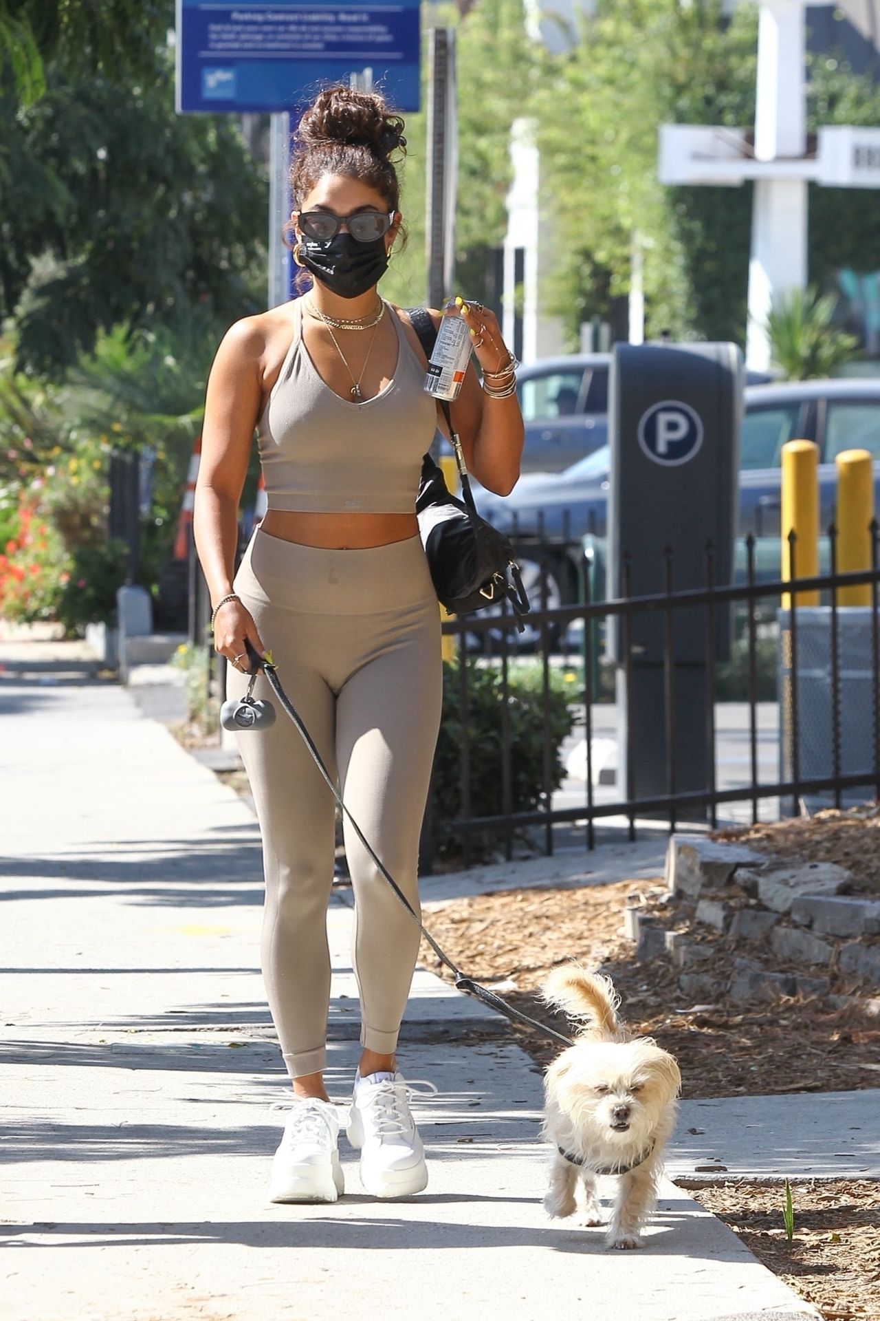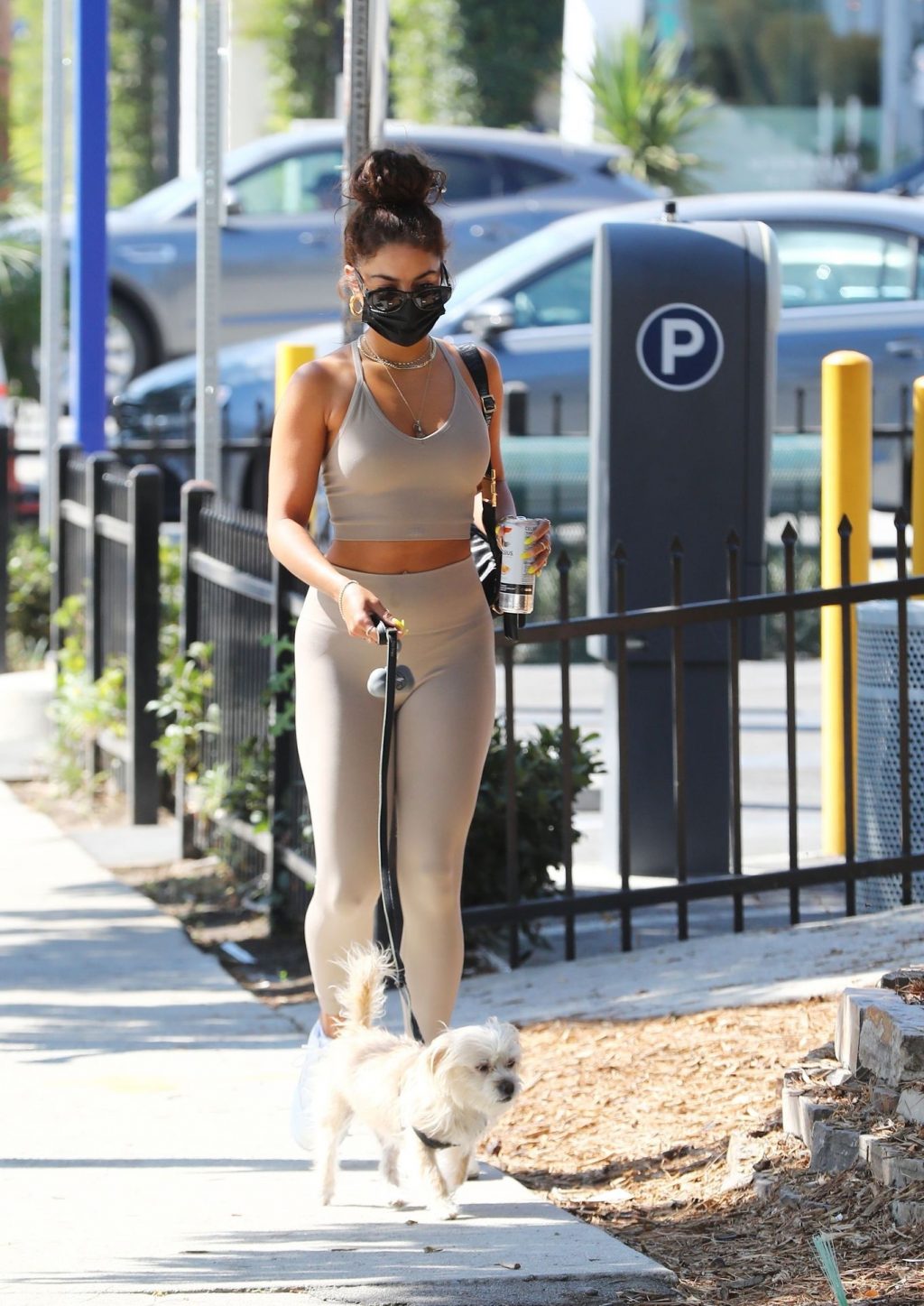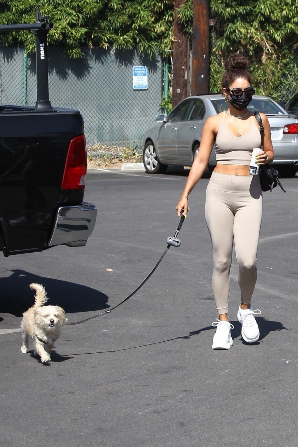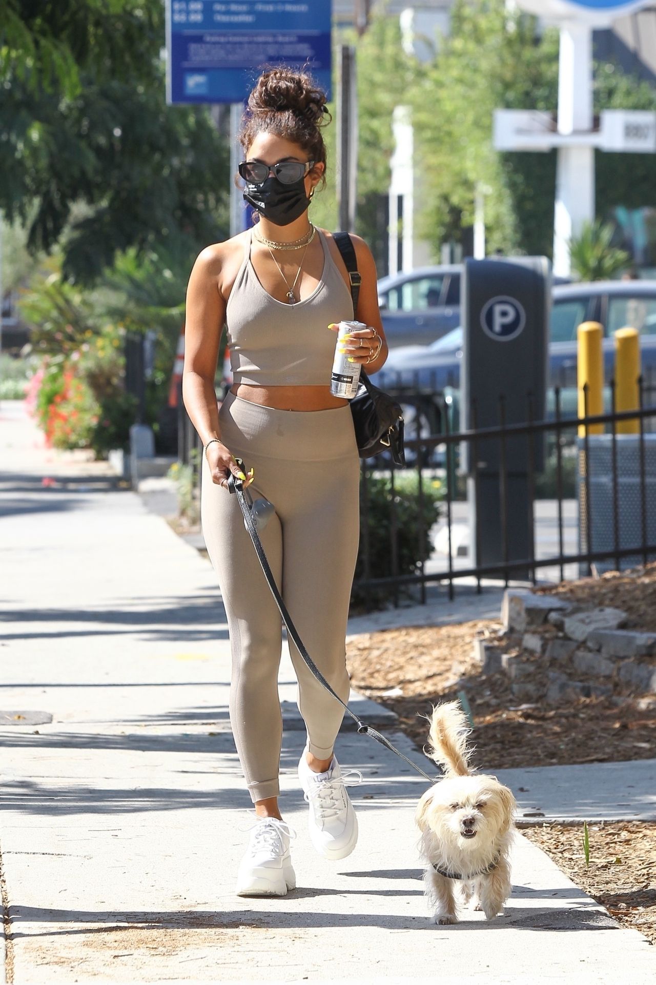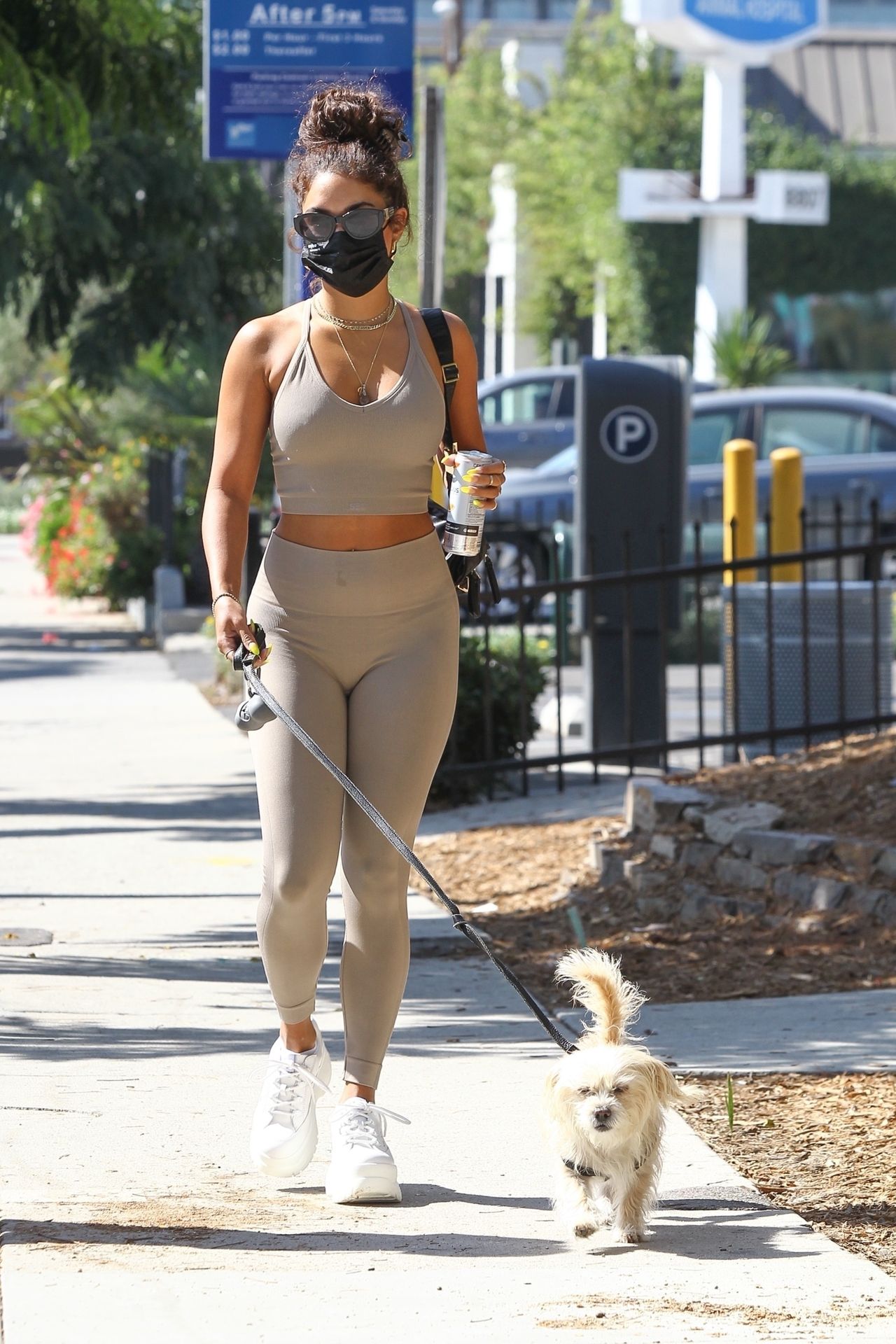 Звезда Фаппенинга Ванесса Хадженс (31) выгуливает свою собаку в спортзале в Уэст-Голливуде, 26.08.2020.