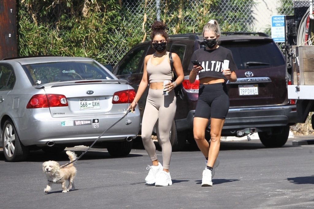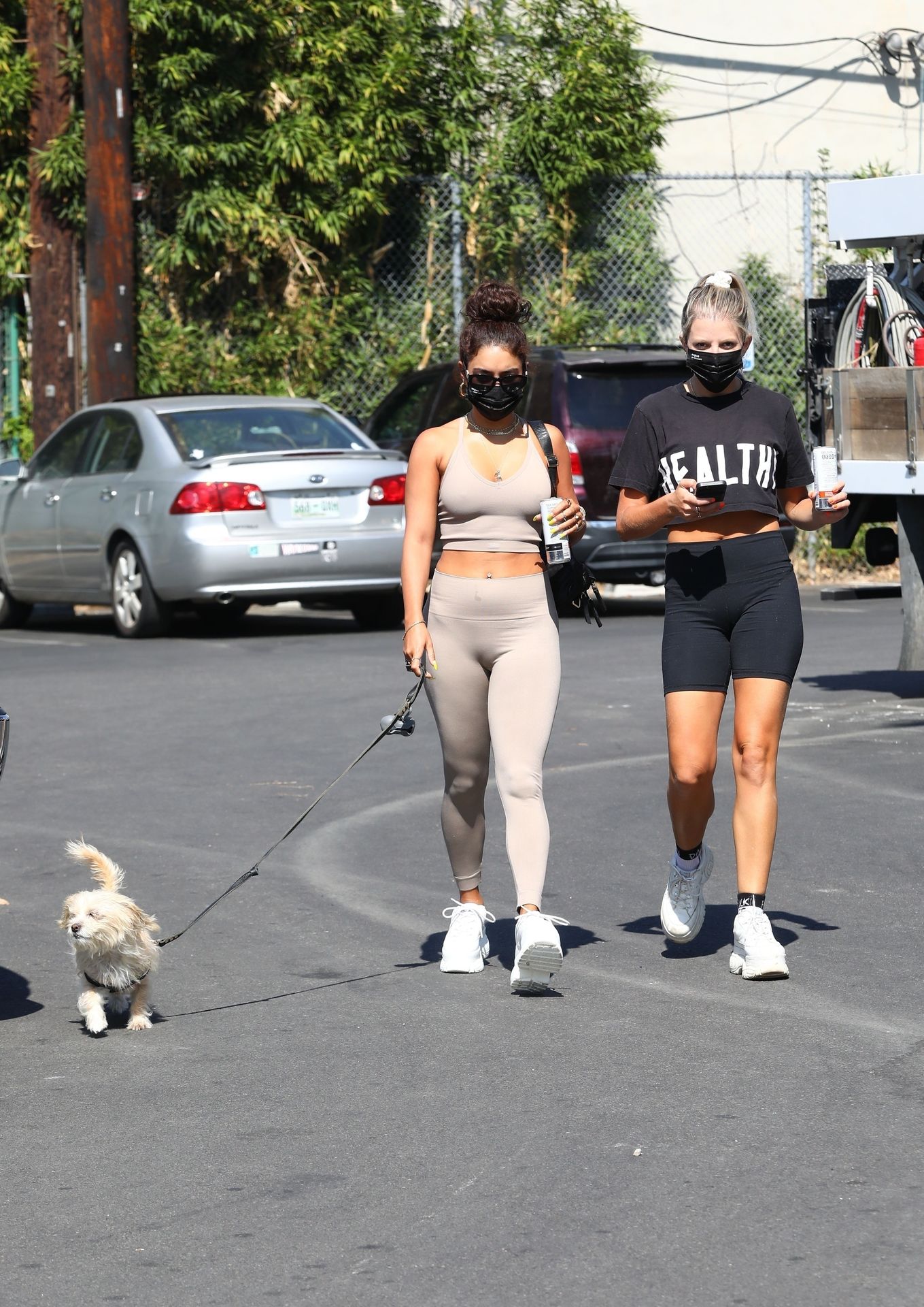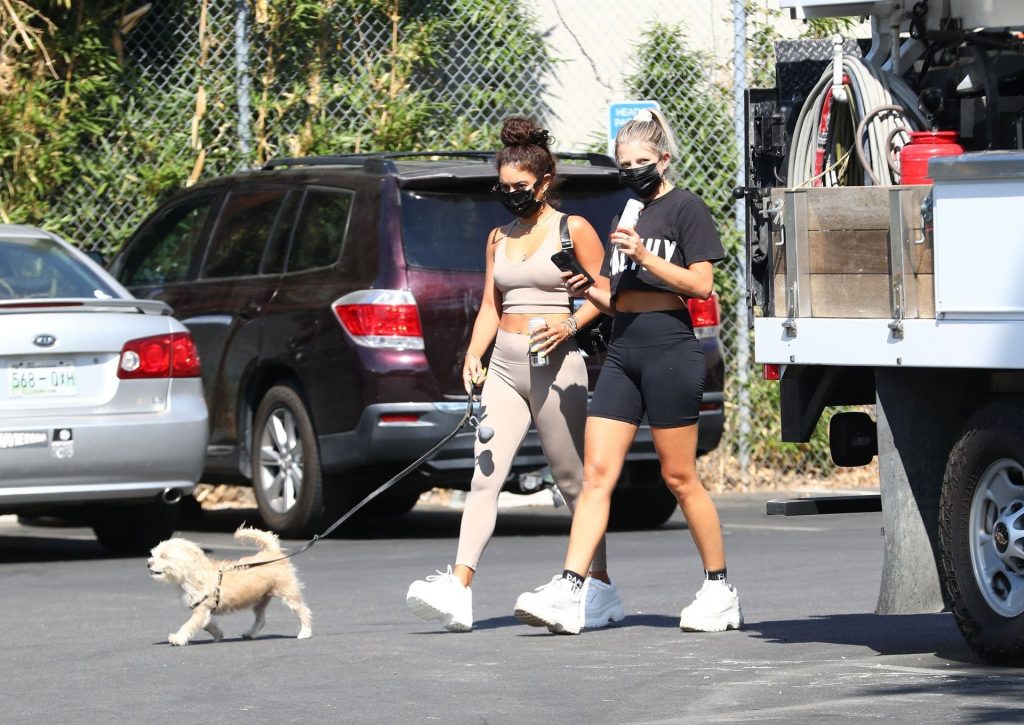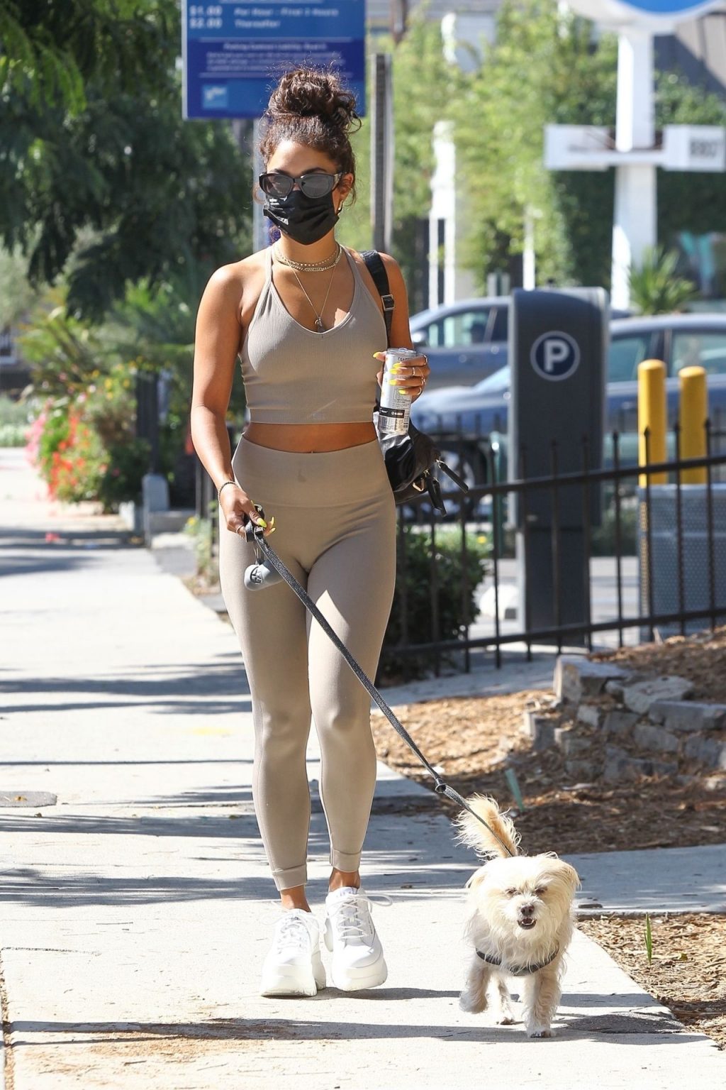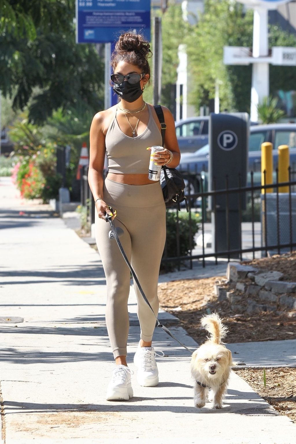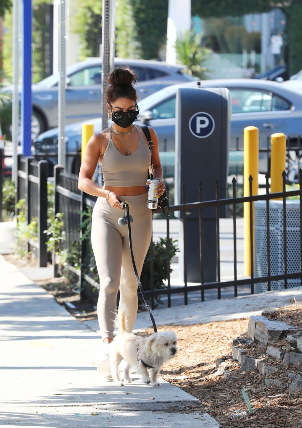 Звезда Фаппенинга Ванесса Хадженс (31) выгуливает свою собаку в спортзале в Уэст-Голливуде, 26.08.2020.