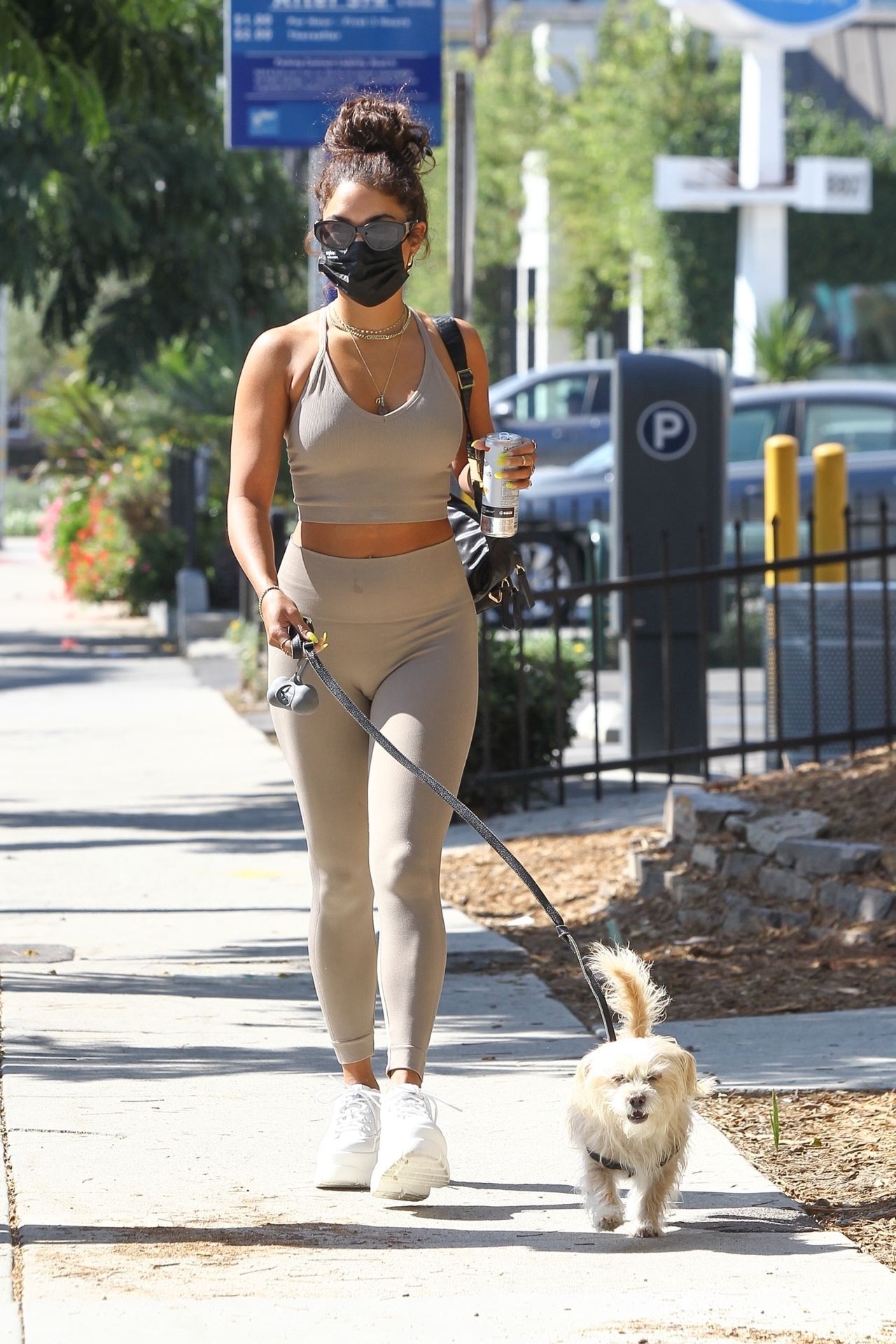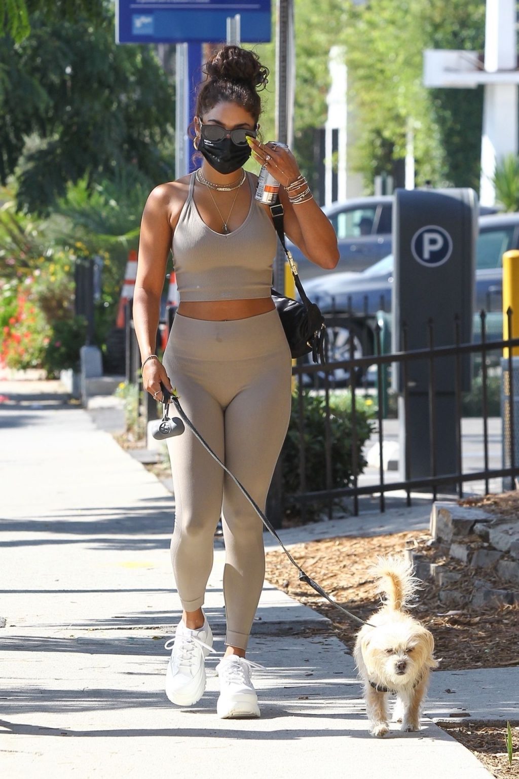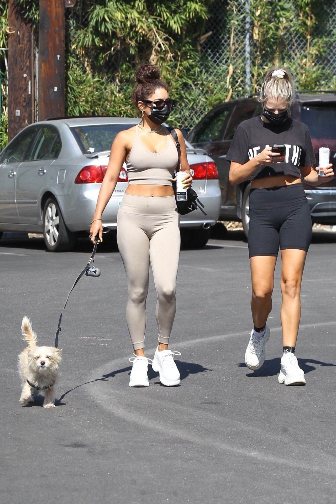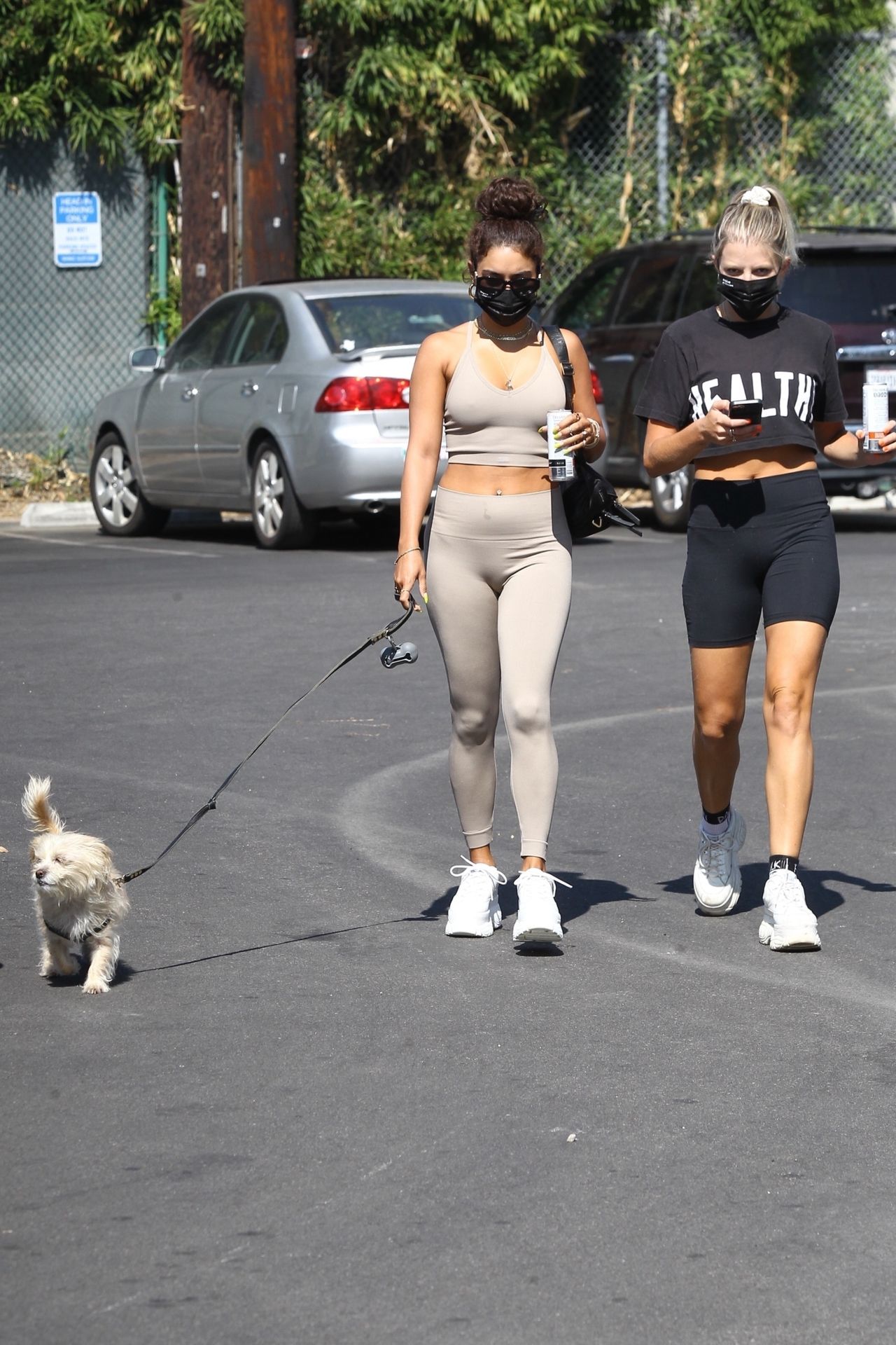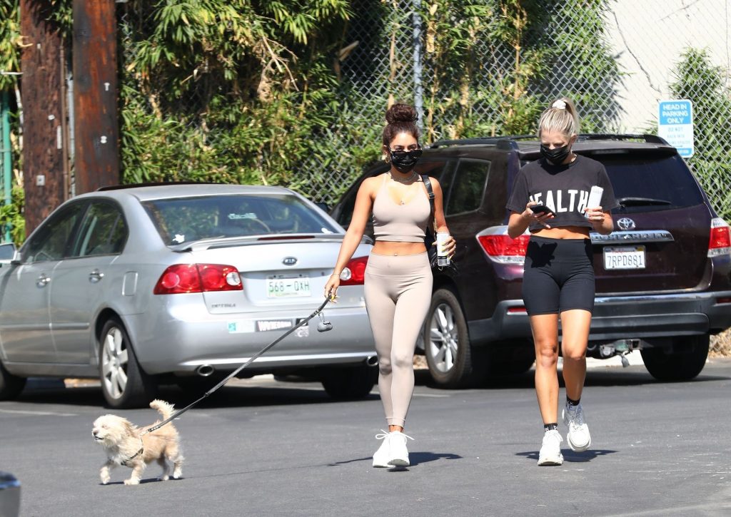 Звезда Фаппенинга Ванесса Хадженс (31) выгуливает свою собаку в спортзале в Уэст-Голливуде, 26.08.2020.