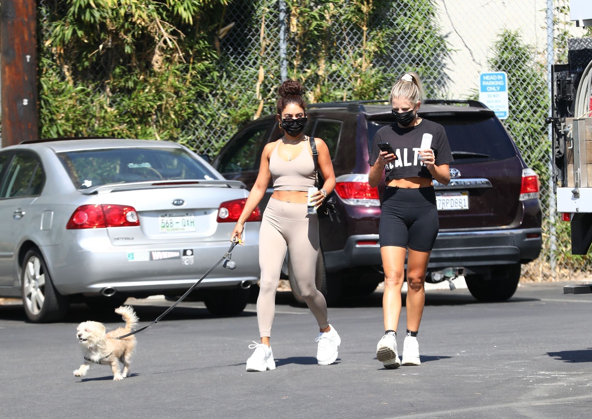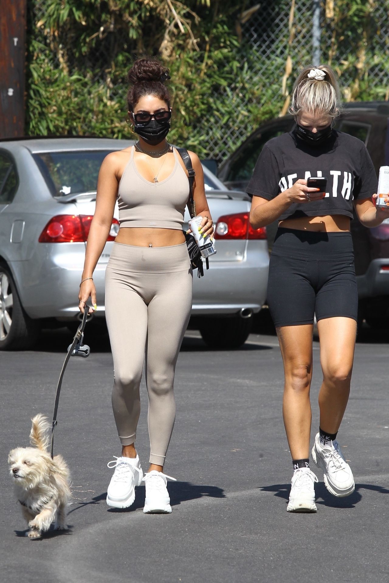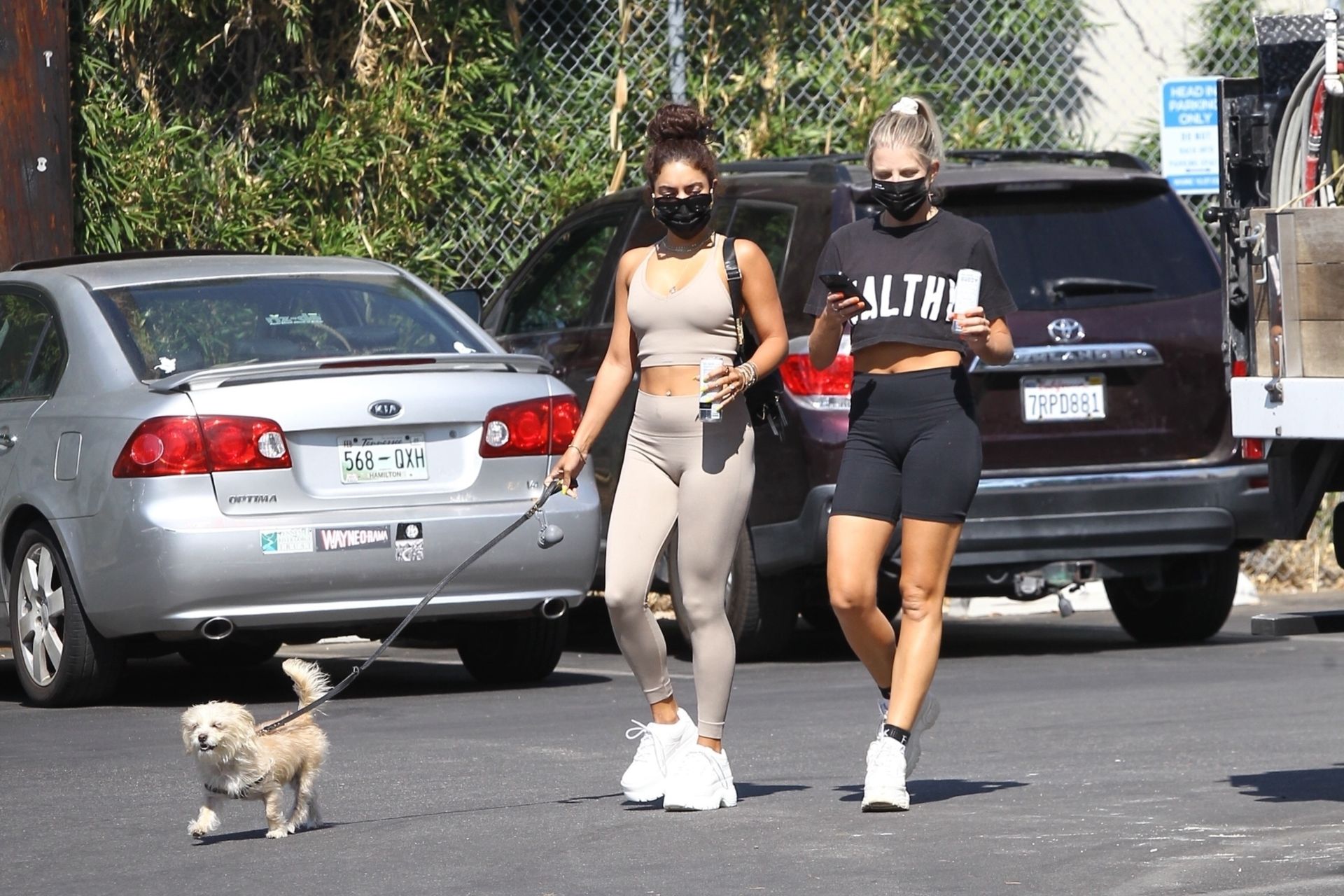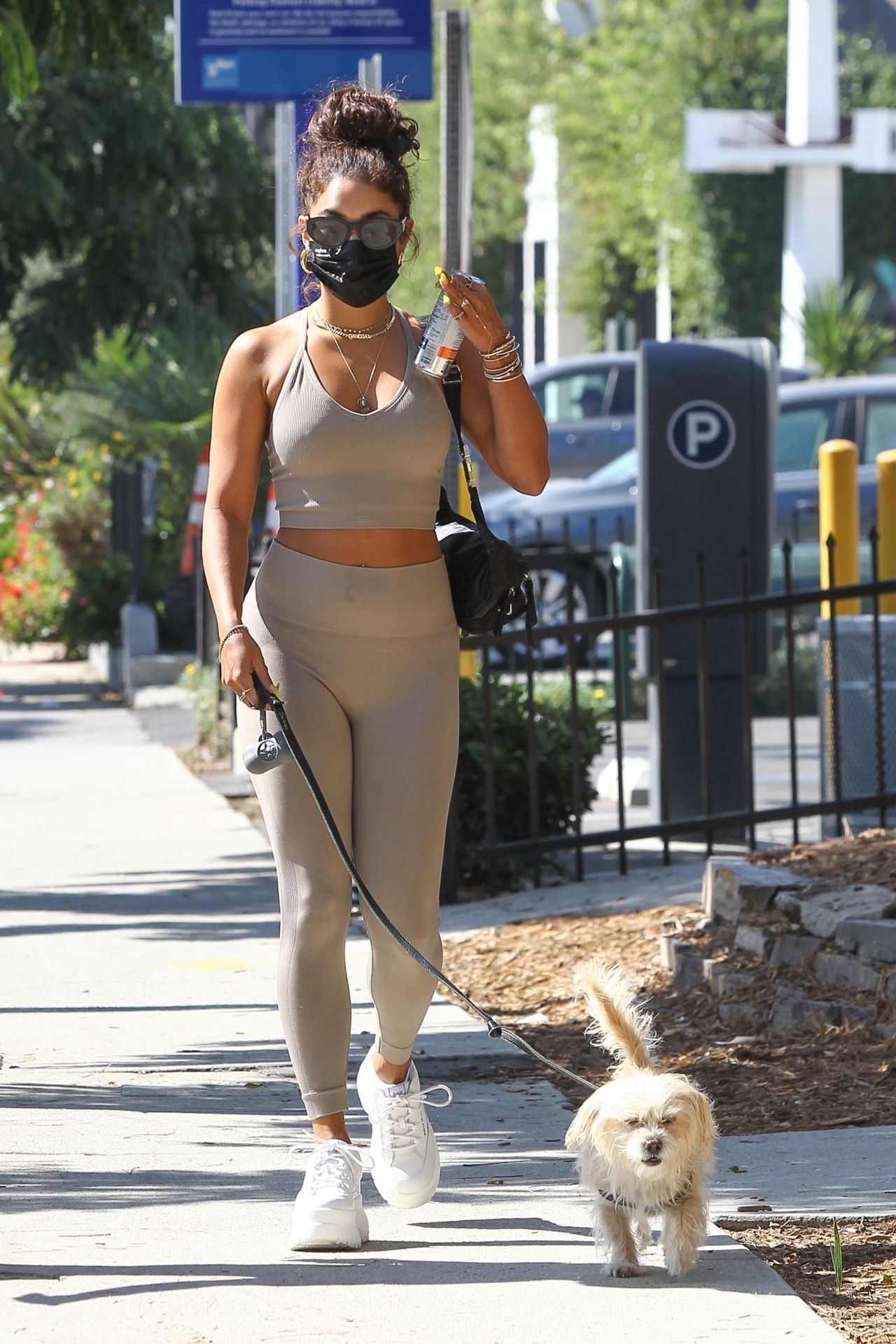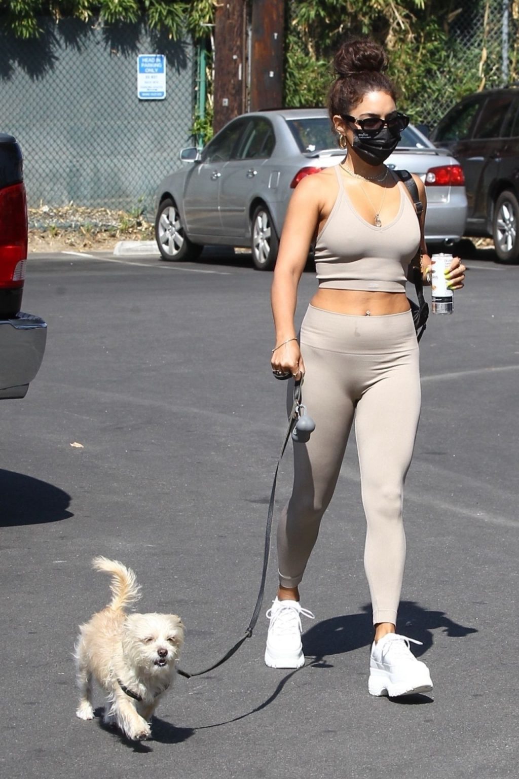 Звезда Фаппенинга Ванесса Хадженс (31) выгуливает свою собаку в спортзале в Уэст-Голливуде, 26.08.2020.