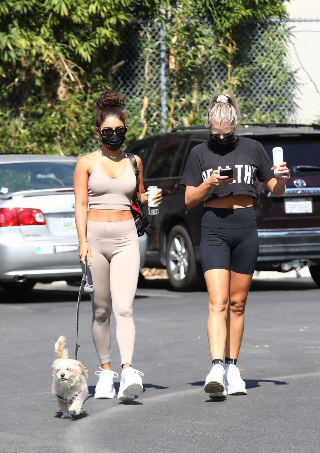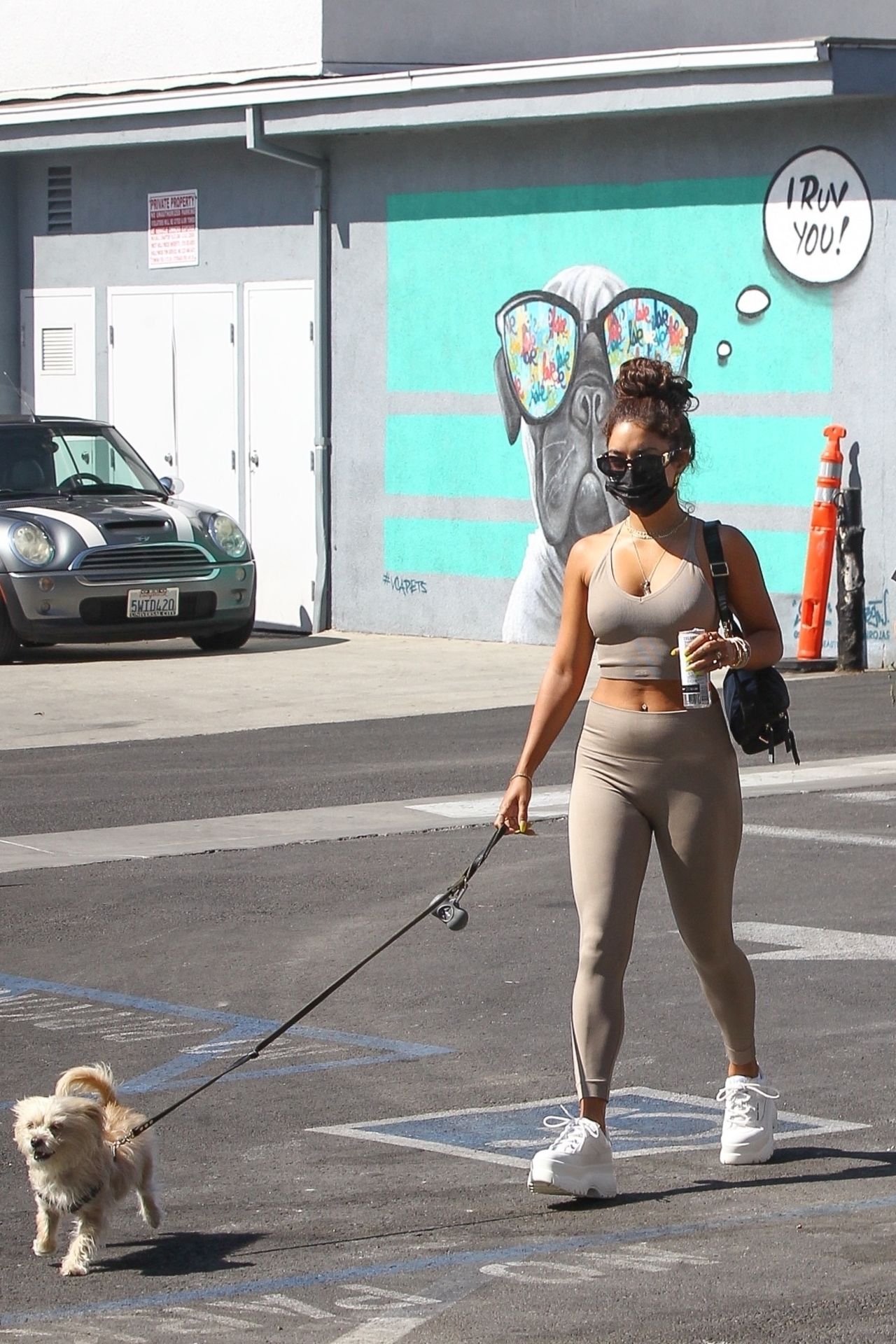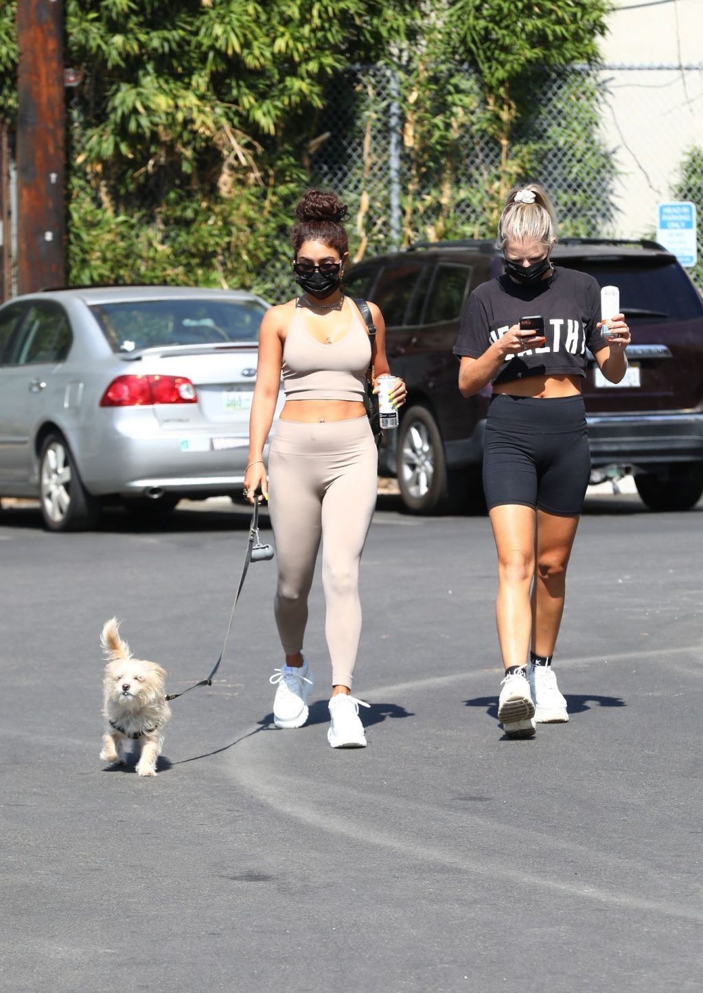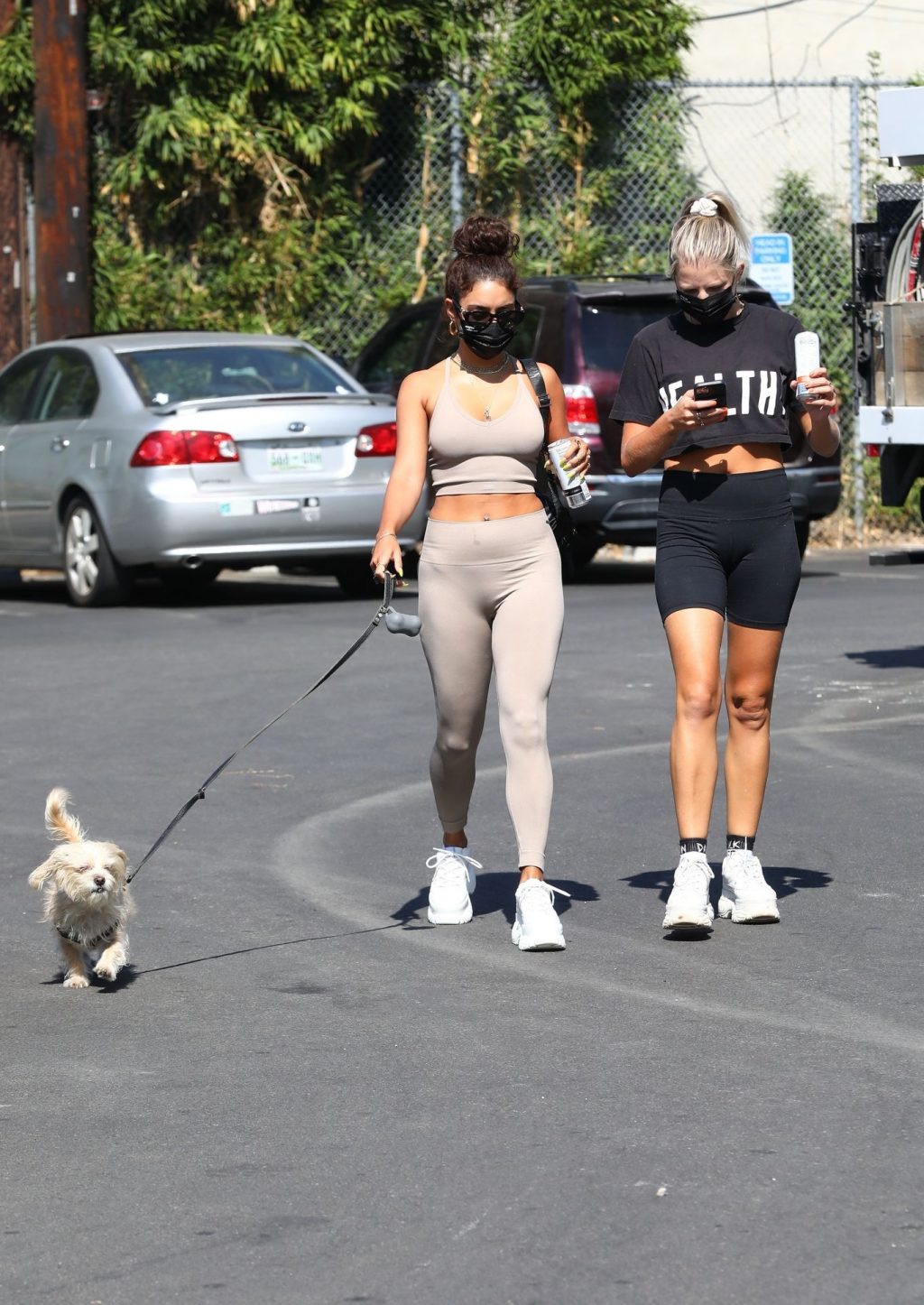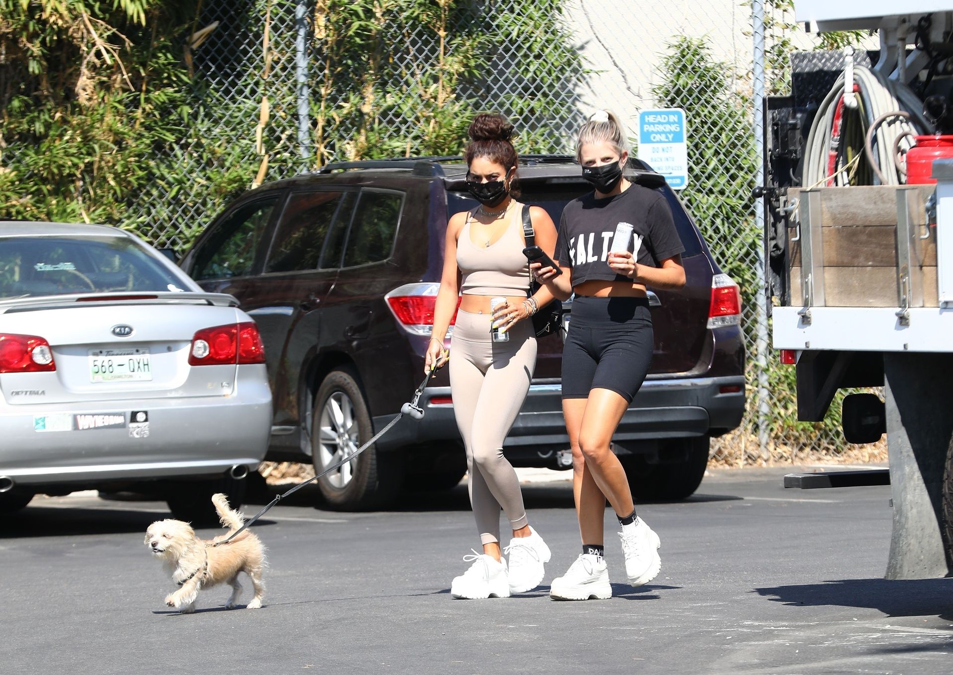 Звезда Фаппенинга Ванесса Хадженс (31) выгуливает свою собаку в спортзале в Уэст-Голливуде, 26.08.2020.