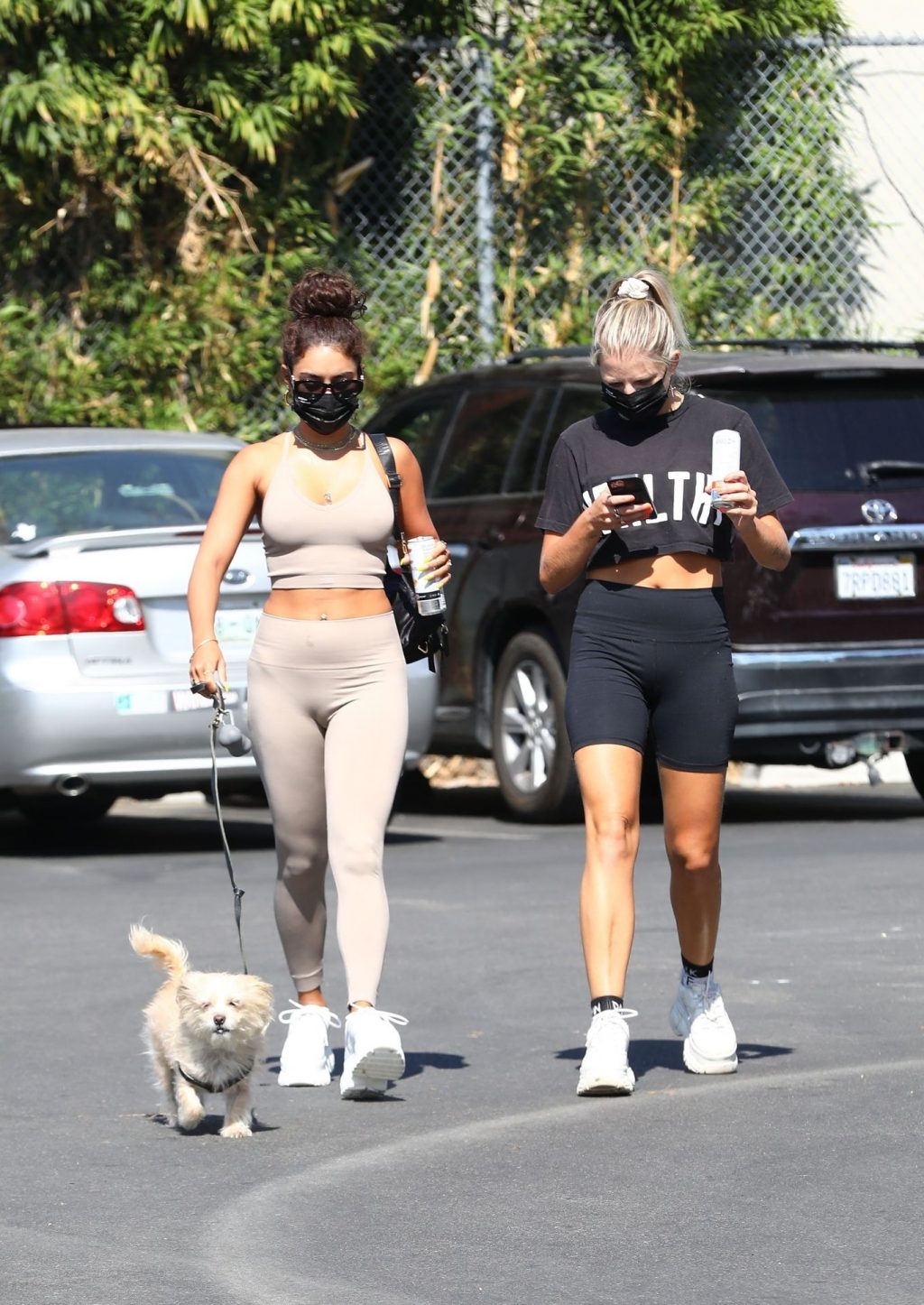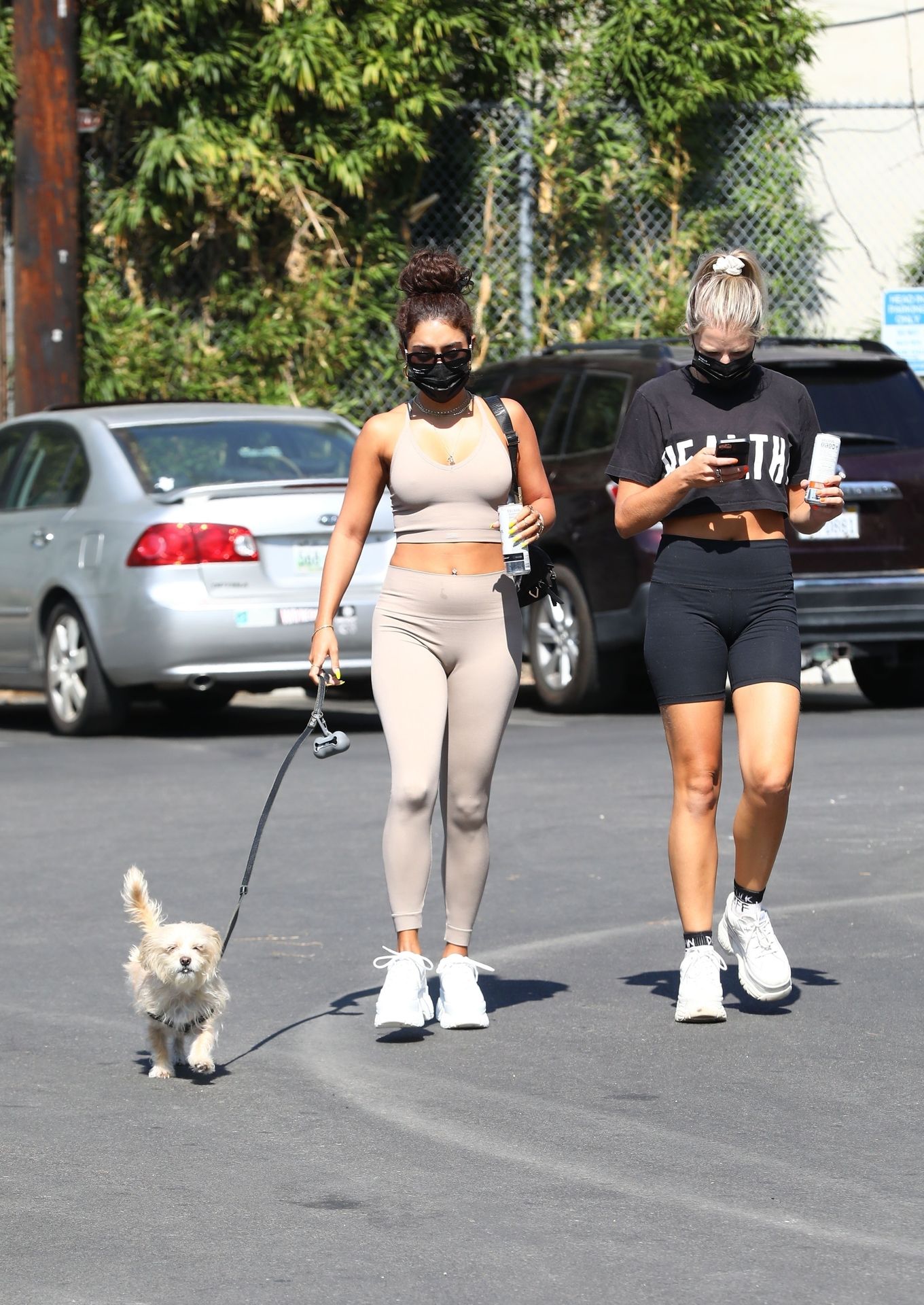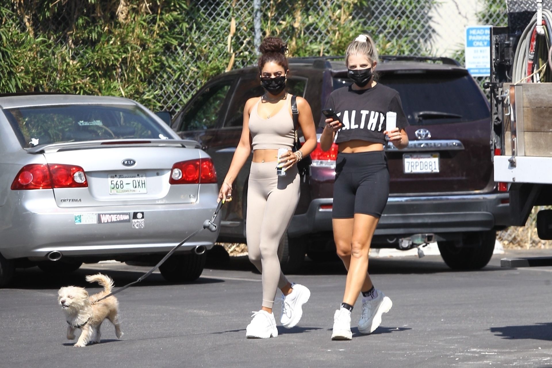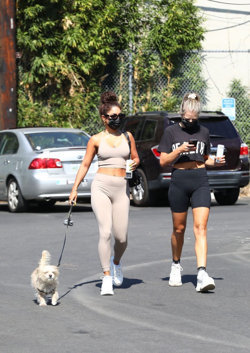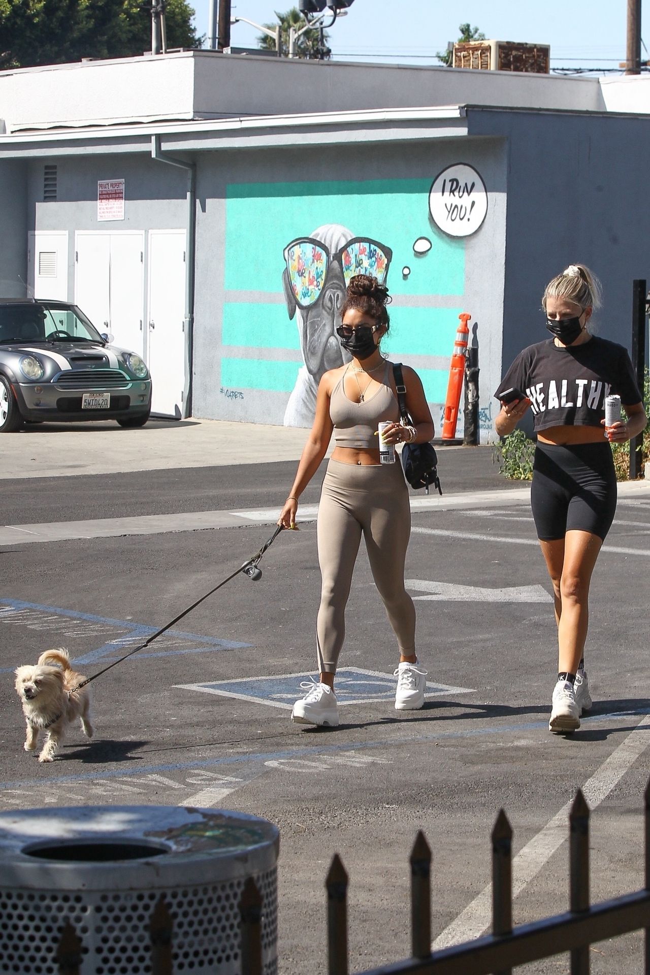 Звезда Фаппенинга Ванесса Хадженс (31) выгуливает свою собаку в спортзале в Уэст-Голливуде, 26.08.2020.