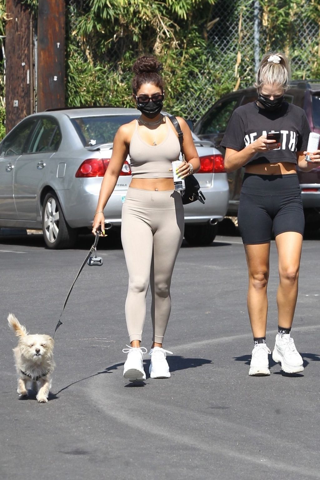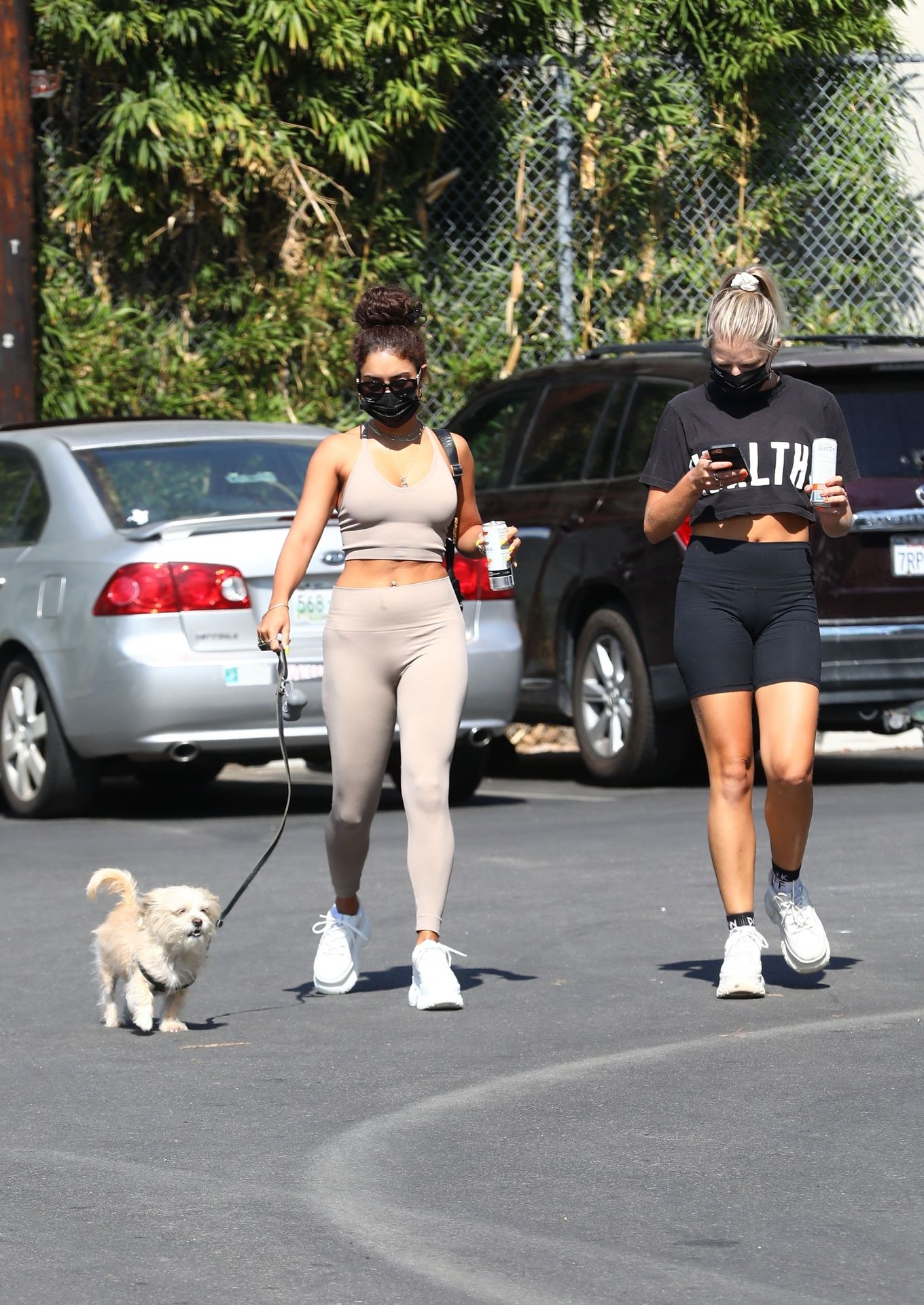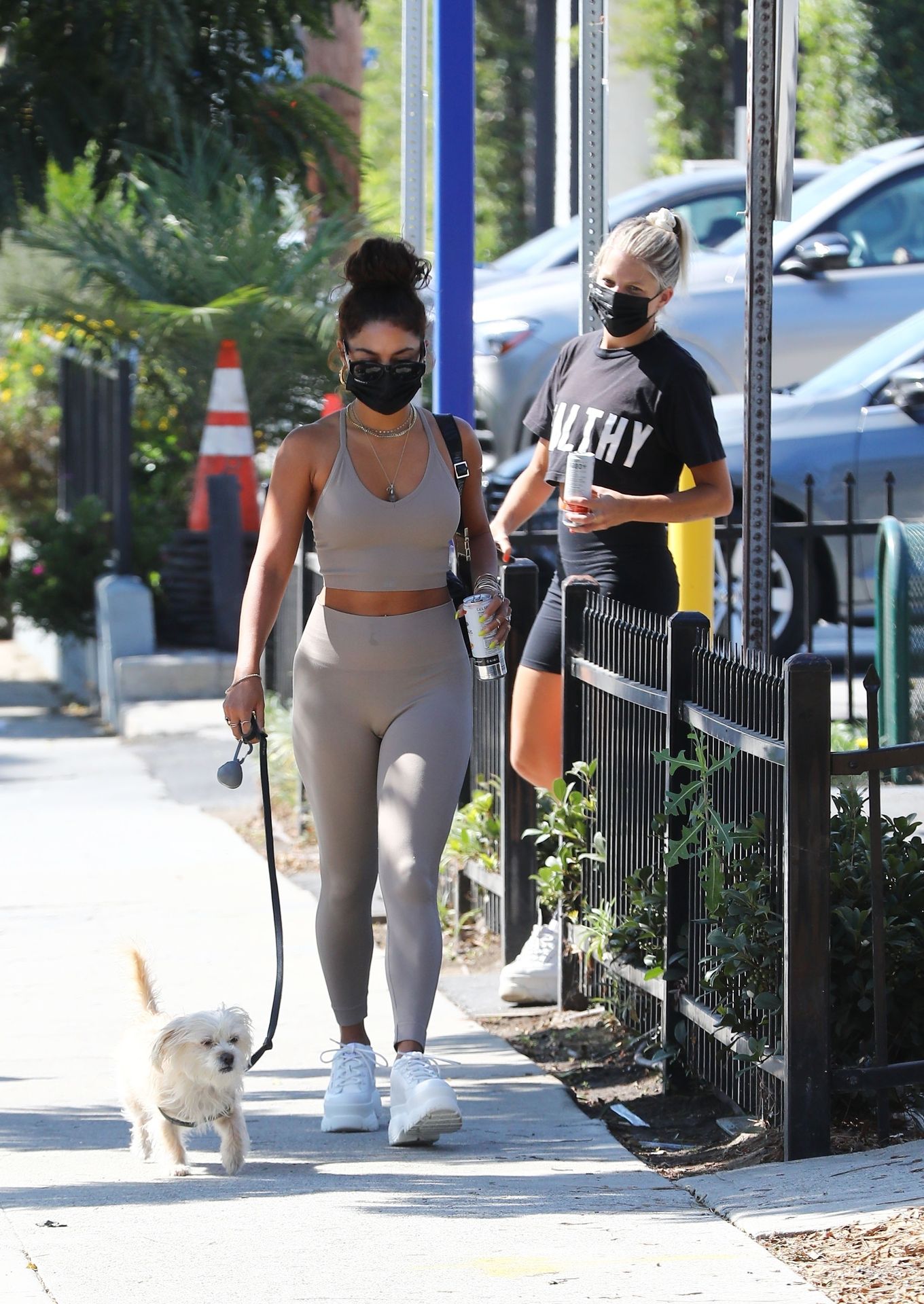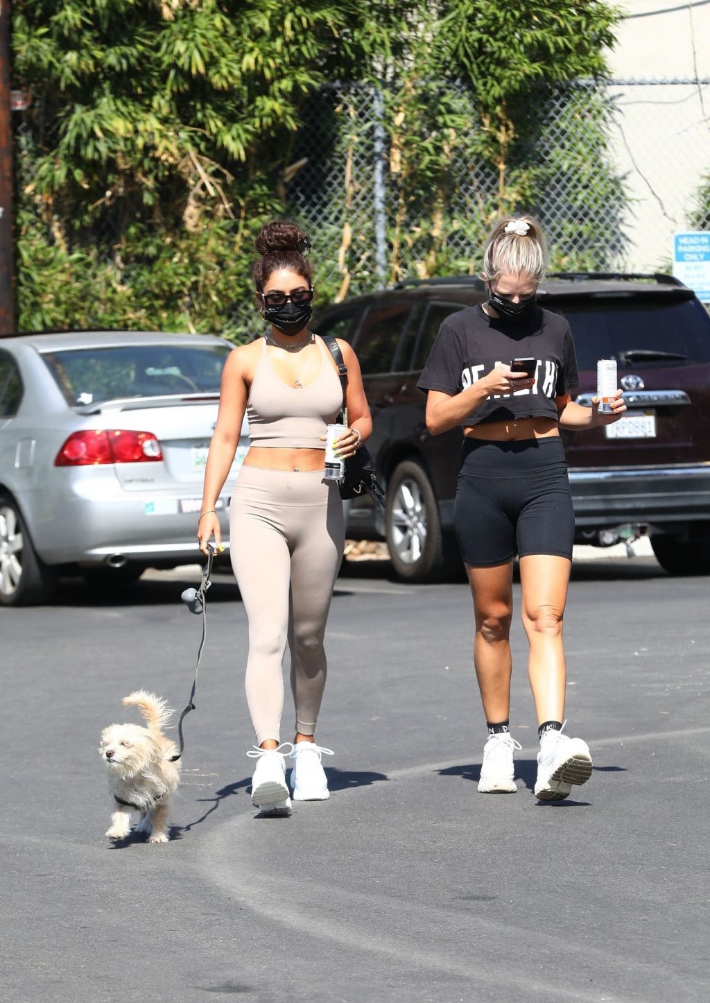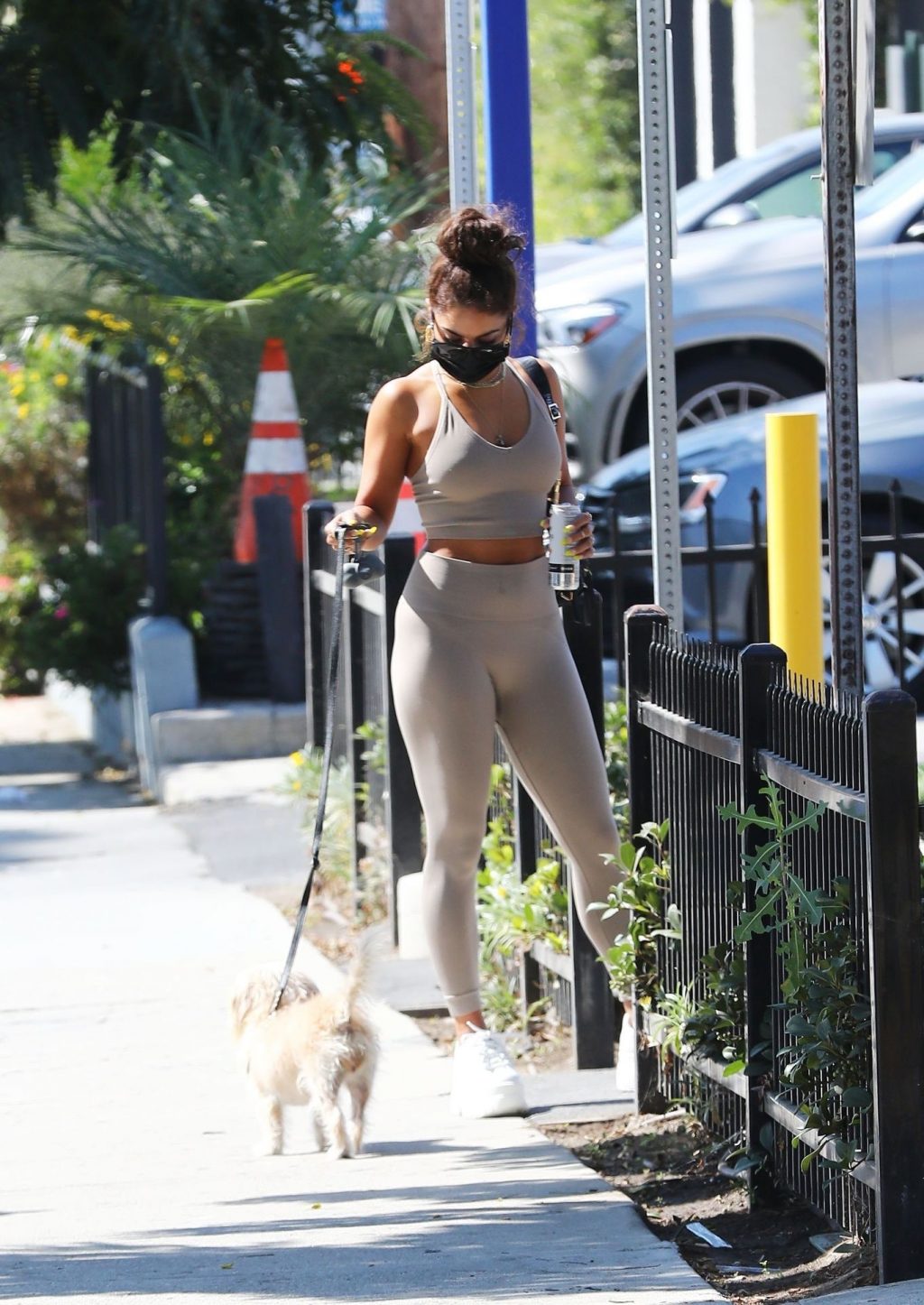 Звезда Фаппенинга Ванесса Хадженс (31) выгуливает свою собаку в спортзале в Уэст-Голливуде, 26.08.2020.