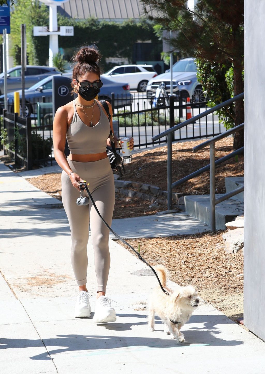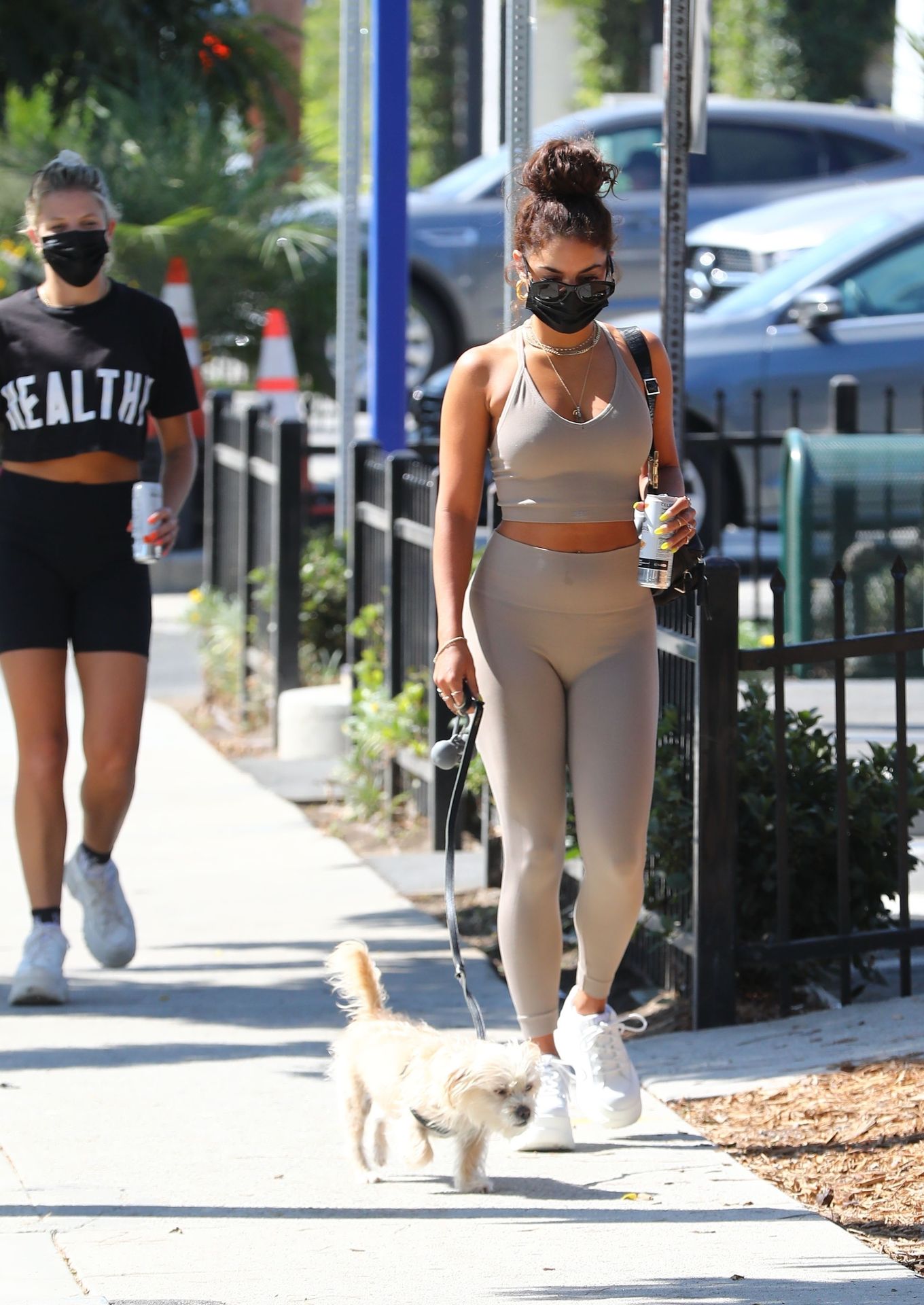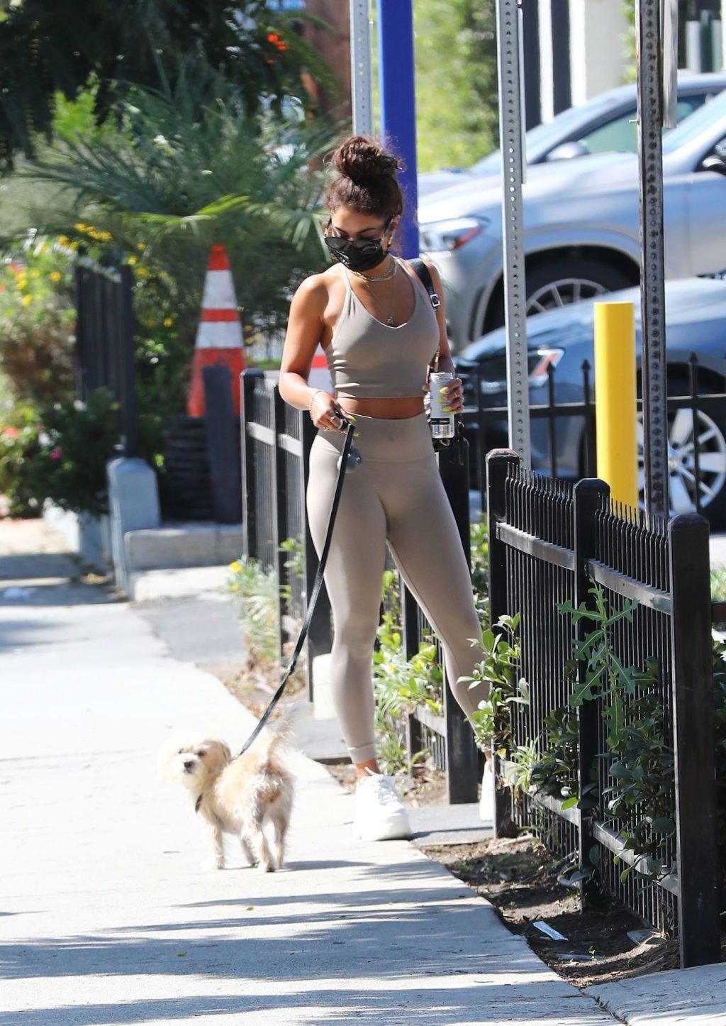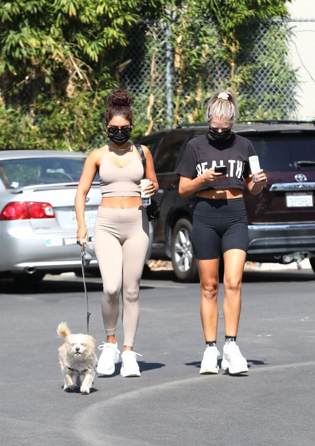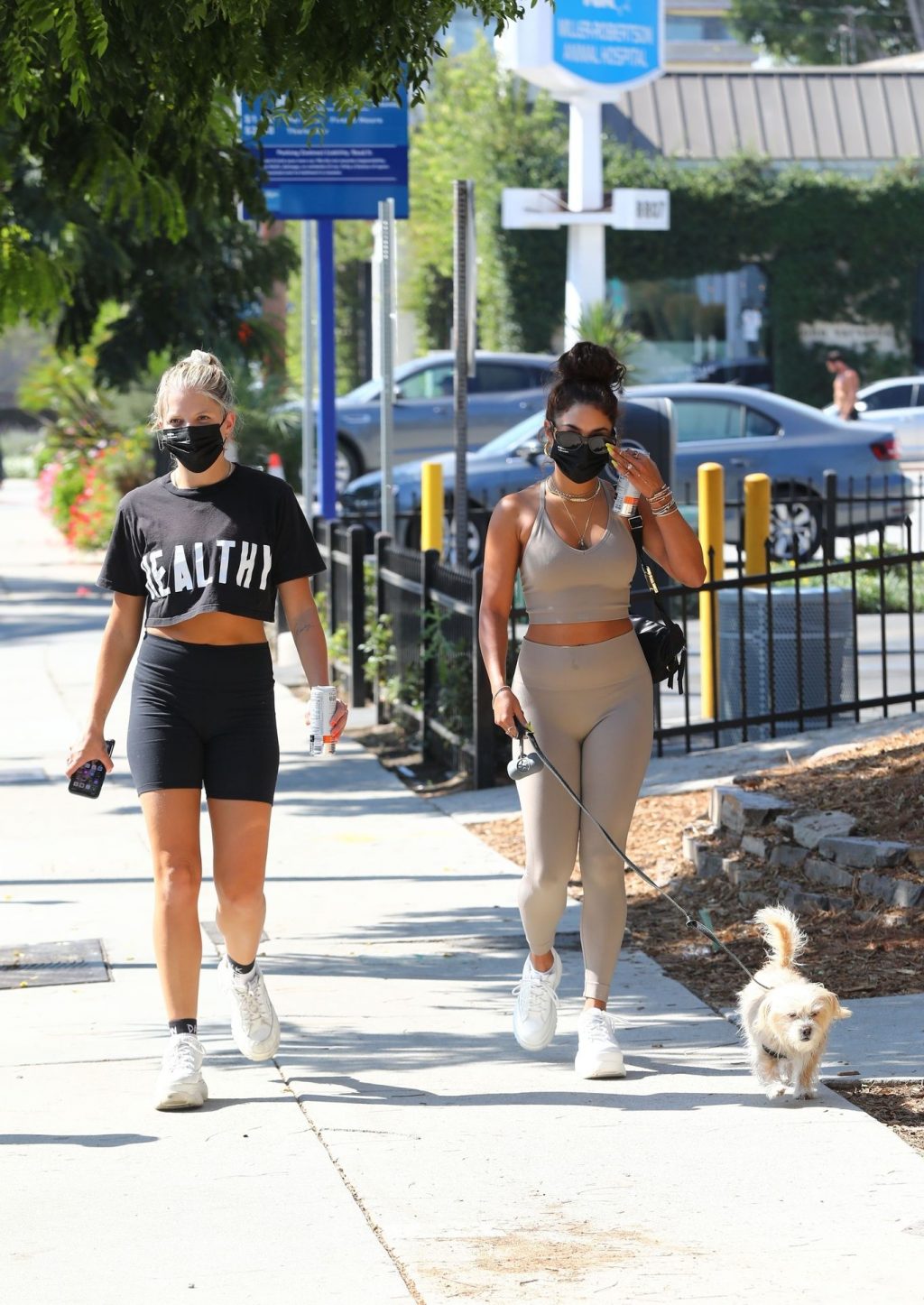 Звезда Фаппенинга Ванесса Хадженс (31) выгуливает свою собаку в спортзале в Уэст-Голливуде, 26.08.2020.