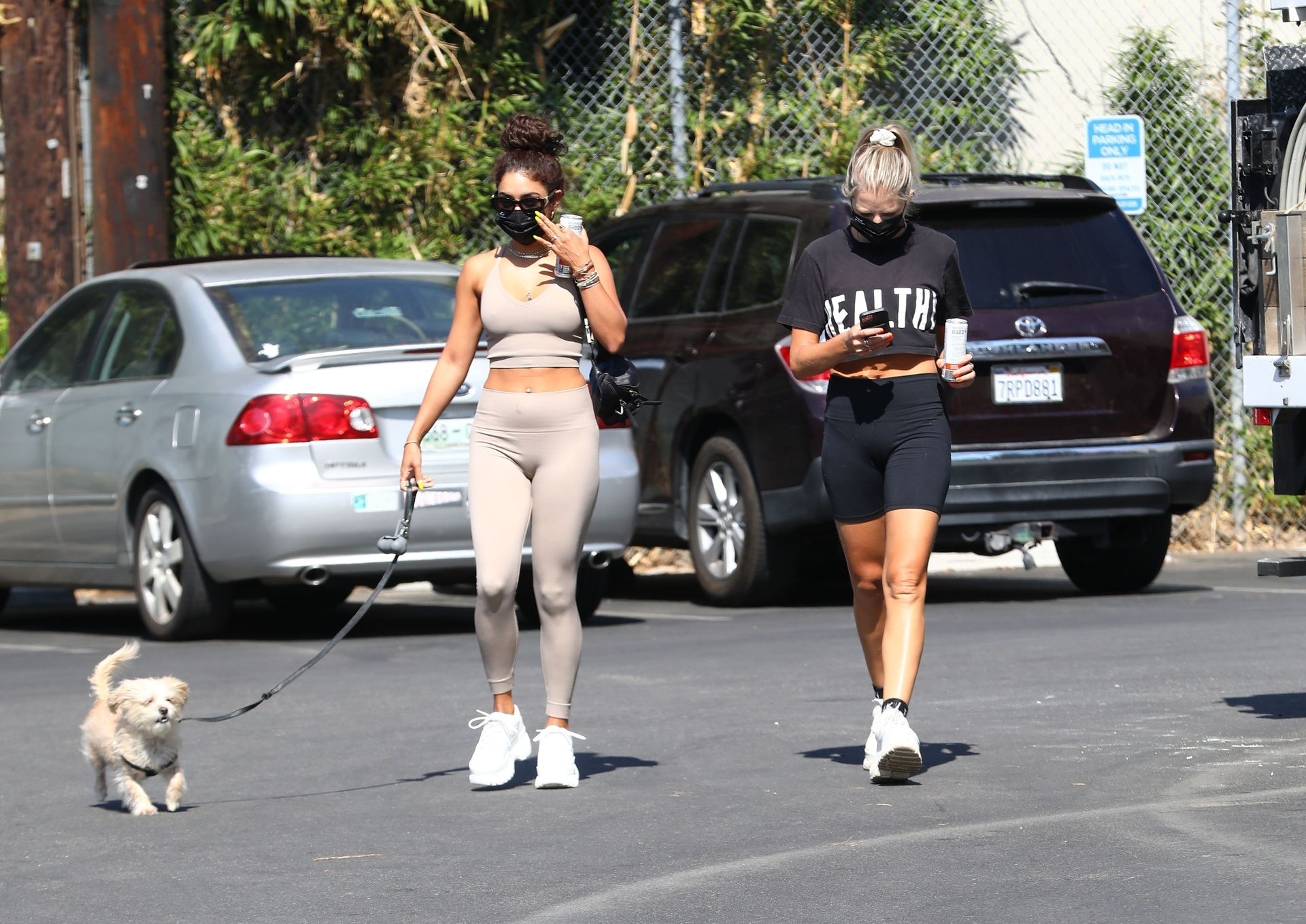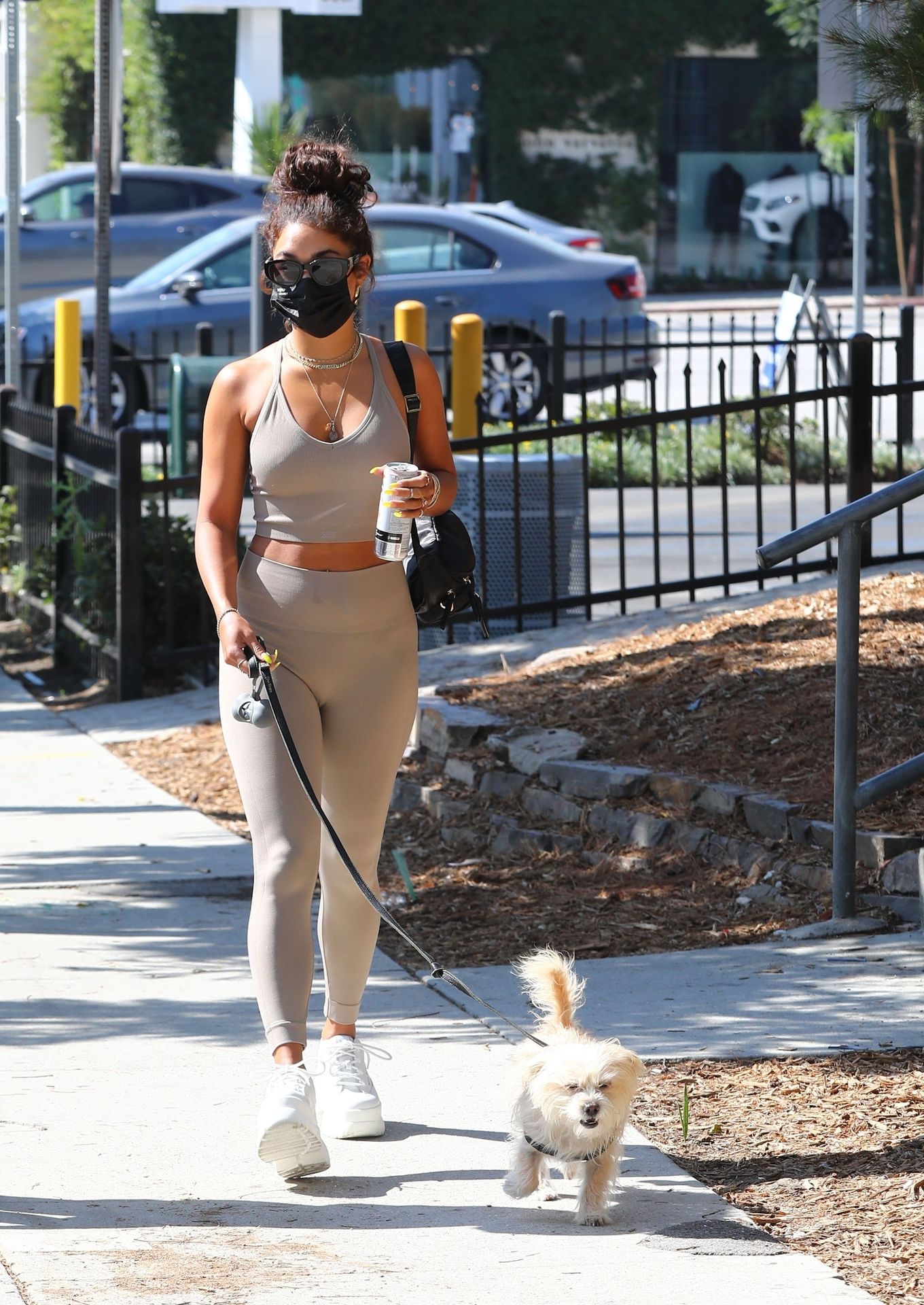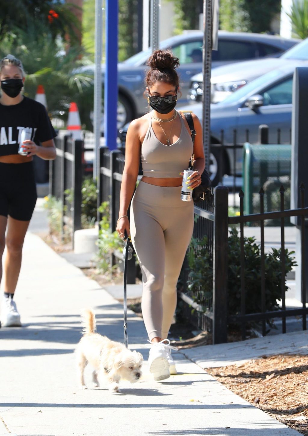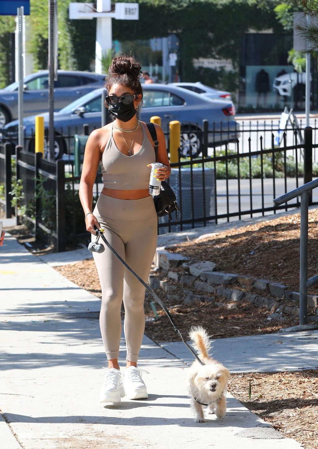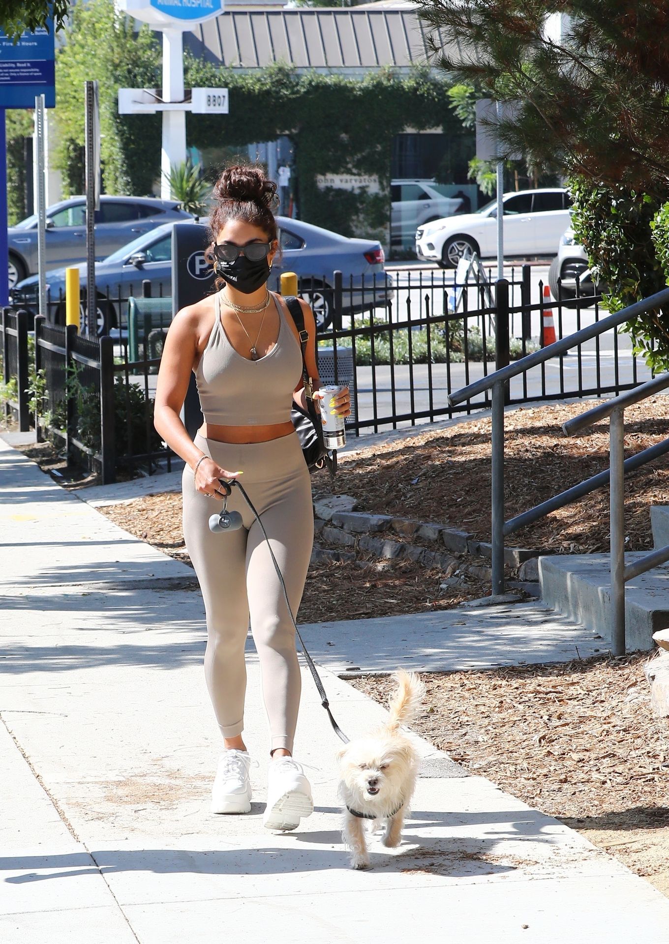 Звезда Фаппенинга Ванесса Хадженс (31) выгуливает свою собаку в спортзале в Уэст-Голливуде, 26.08.2020.