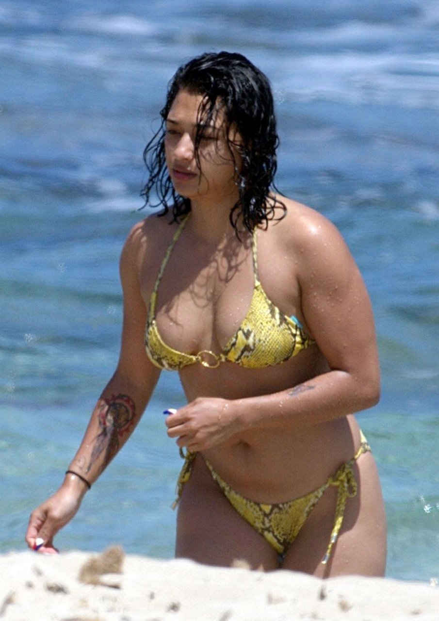 Vanessa White весело проводит время на пляже в Ибице, 06/07/2017. Vanessa White — английская певица/автор песен, танцовщица, актриса. Возраст: 27 лет (родилась 30 октября 1989).