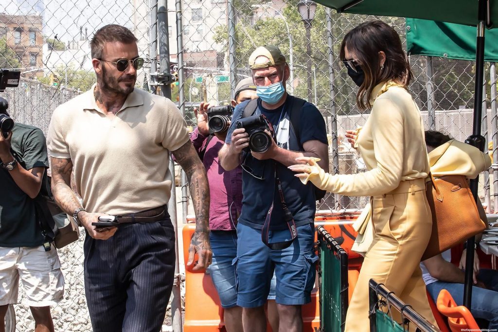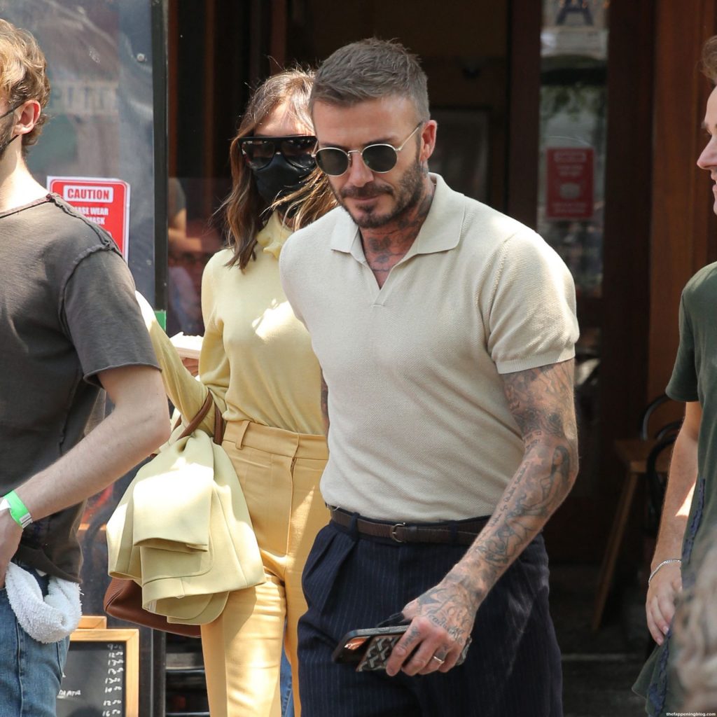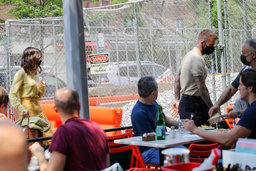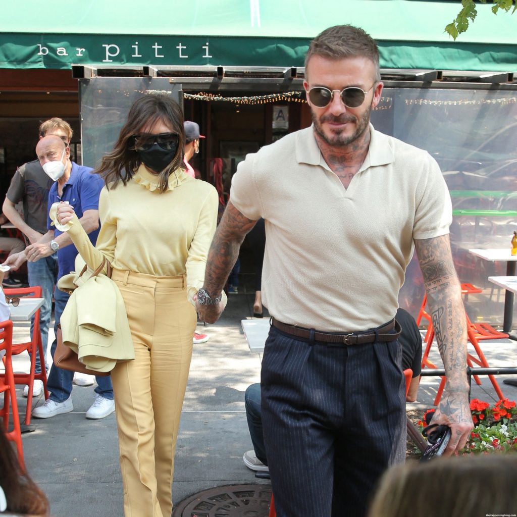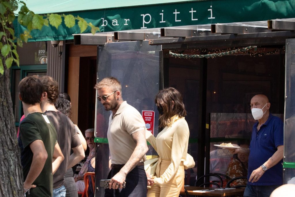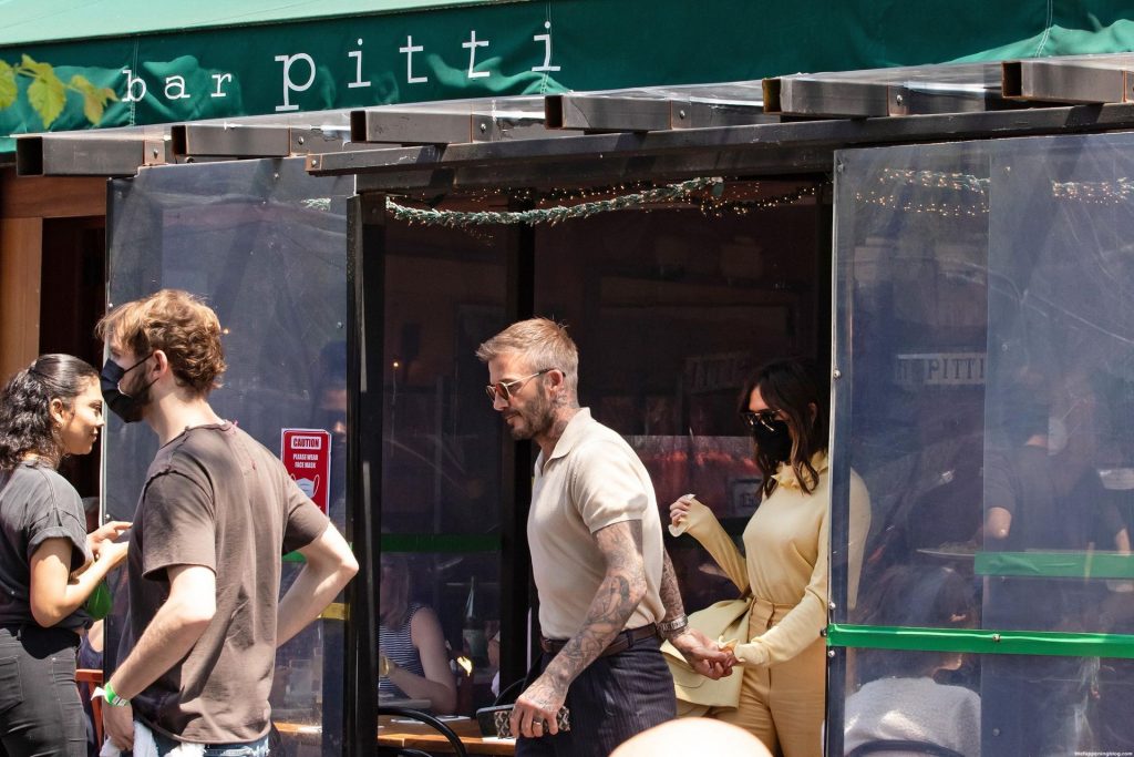Пышногрудая Виктория Бекхэм и Дэвид Бекхэм замечены при выходе из бара Pitti после обеда в Нью-Йорке, 26.05.2021.