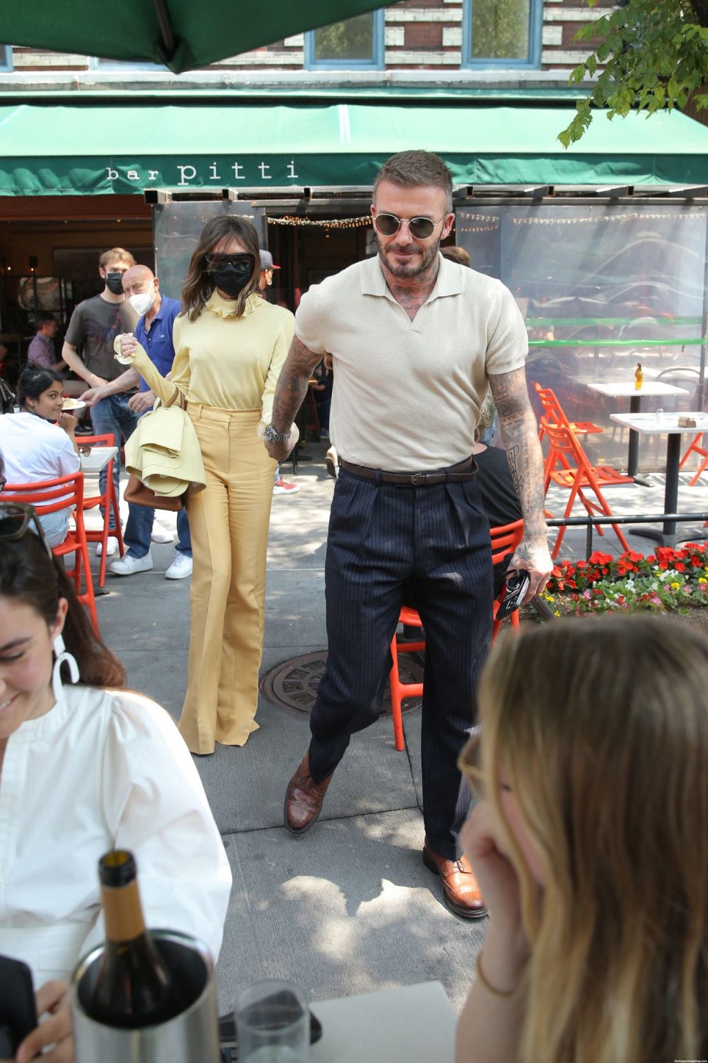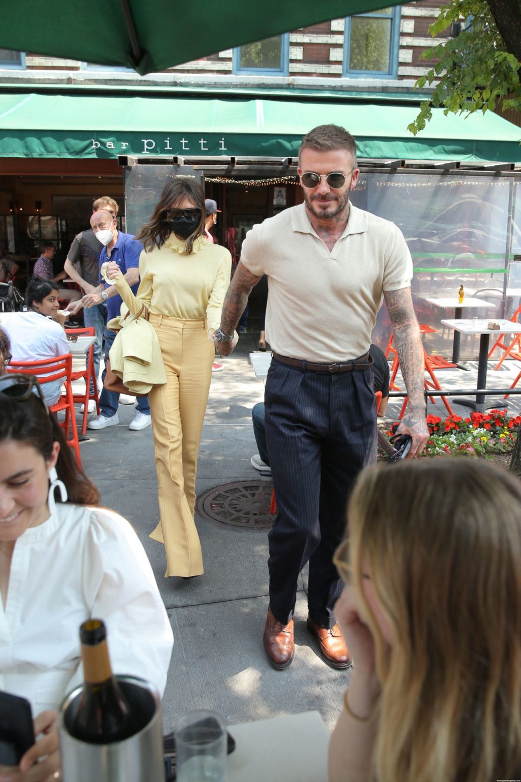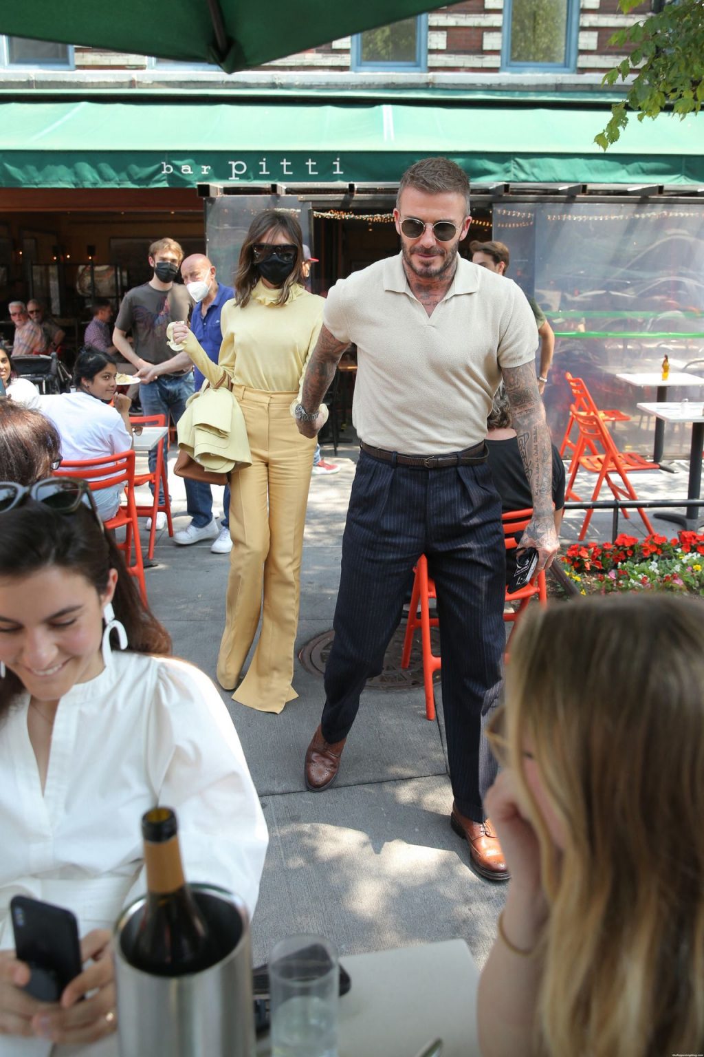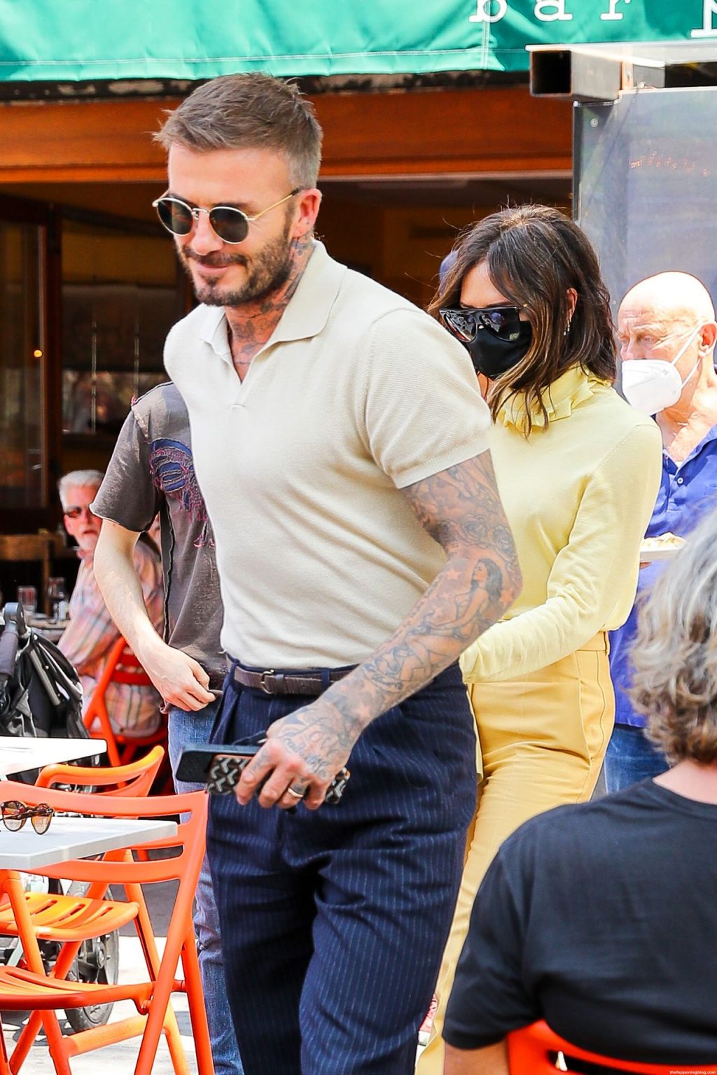 Пышногрудая Виктория Бекхэм и Дэвид Бекхэм замечены при выходе из бара Pitti после обеда в Нью-Йорке, 26.05.2021.
