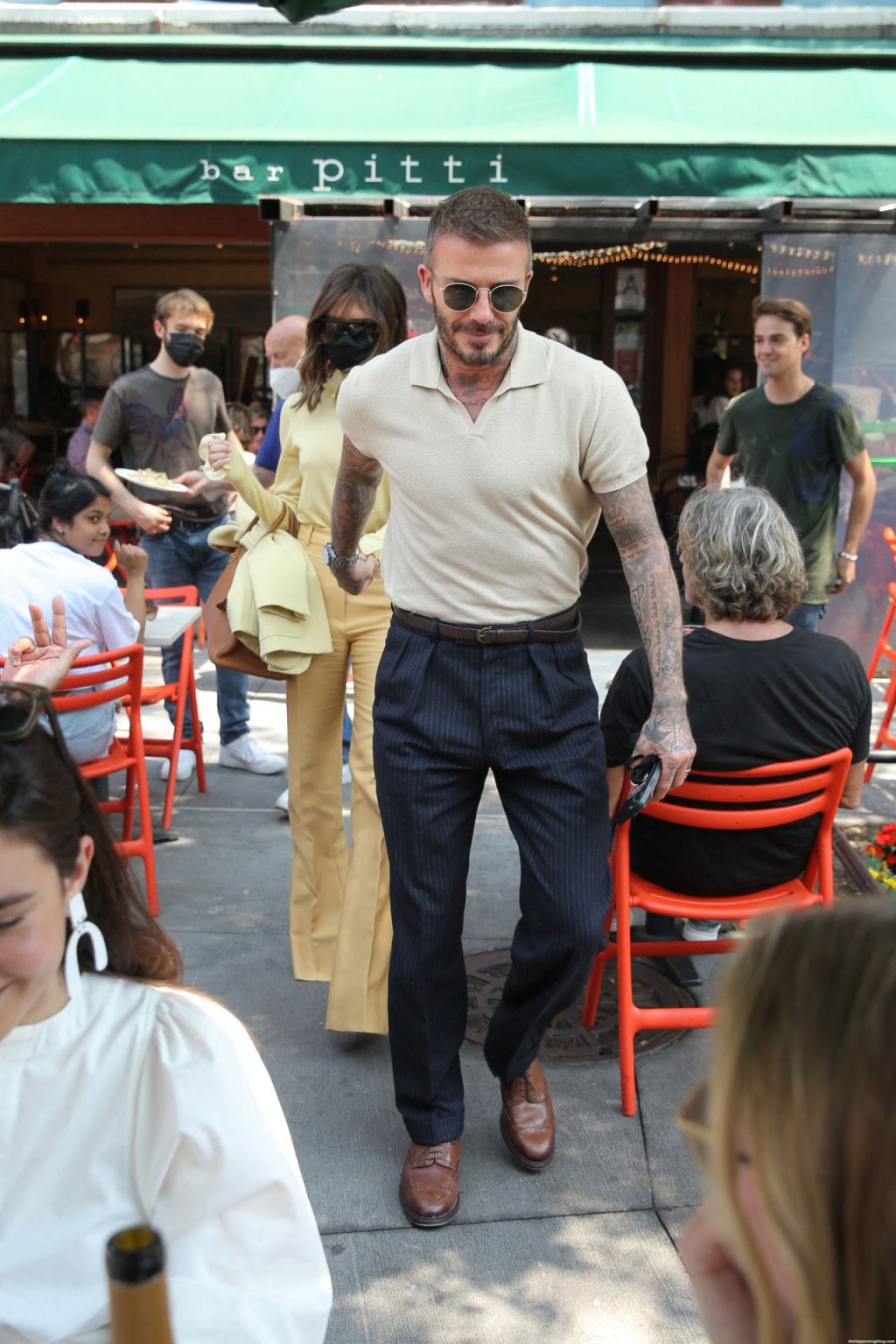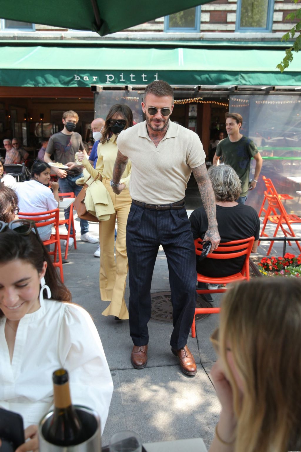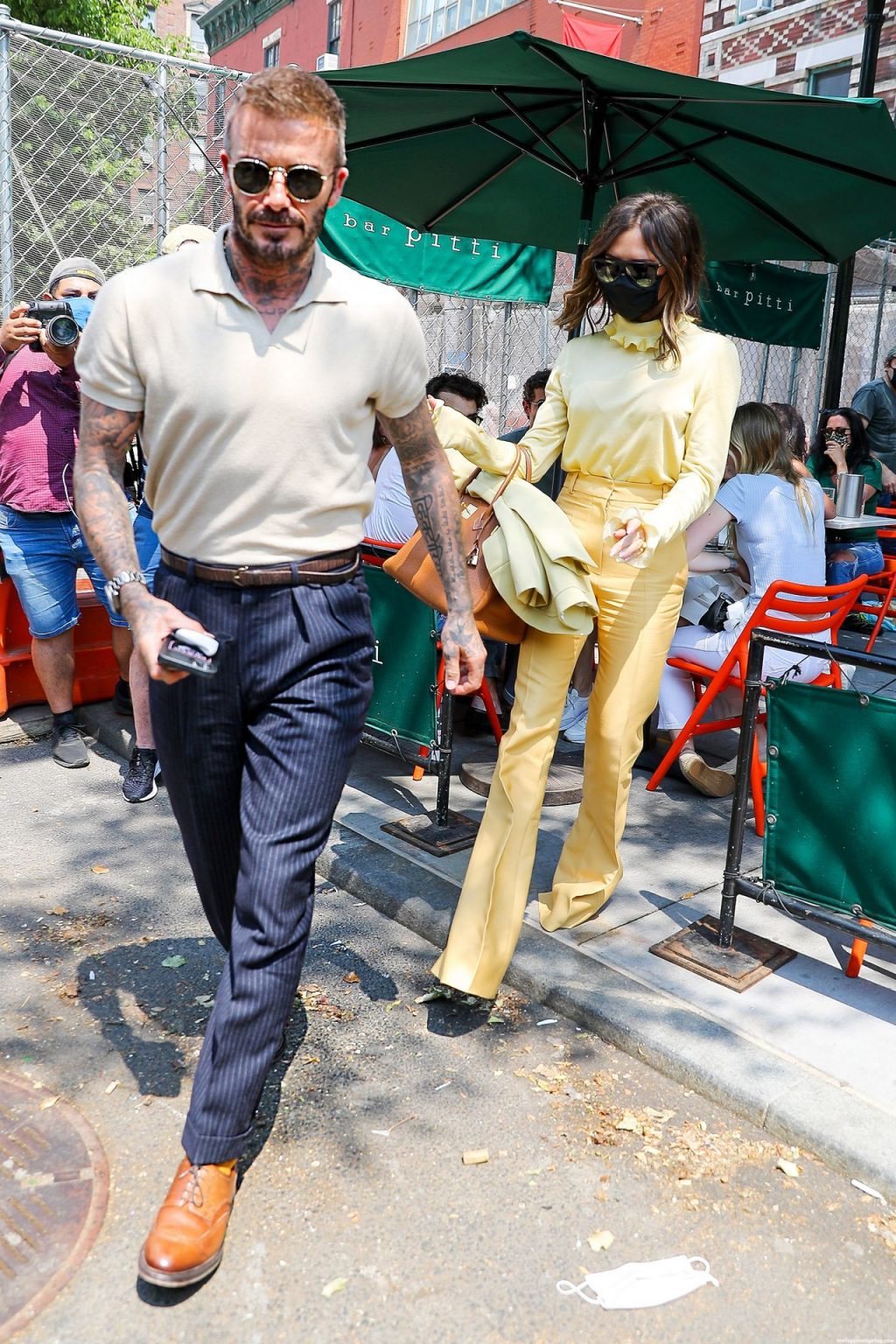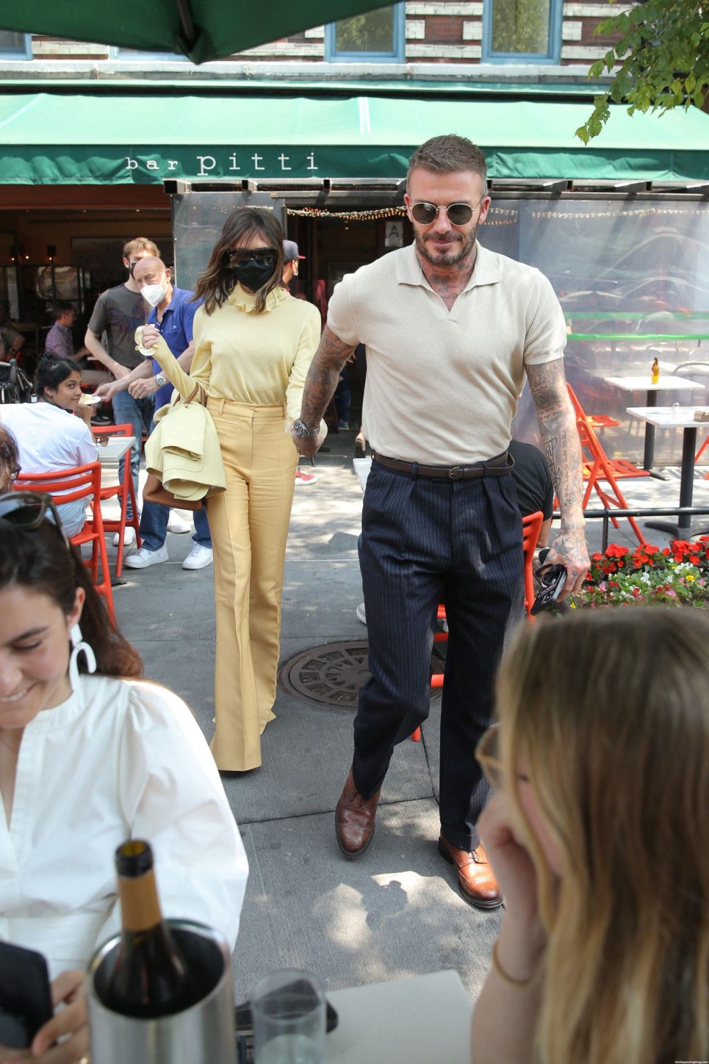 Пышногрудая Виктория Бекхэм и Дэвид Бекхэм замечены при выходе из бара Pitti после обеда в Нью-Йорке, 26.05.2021.