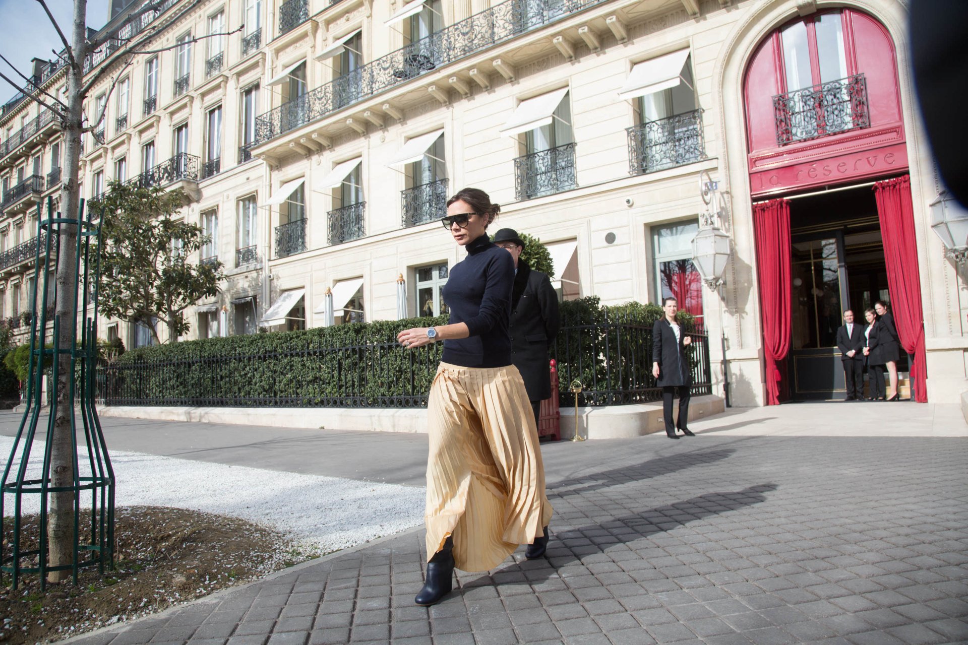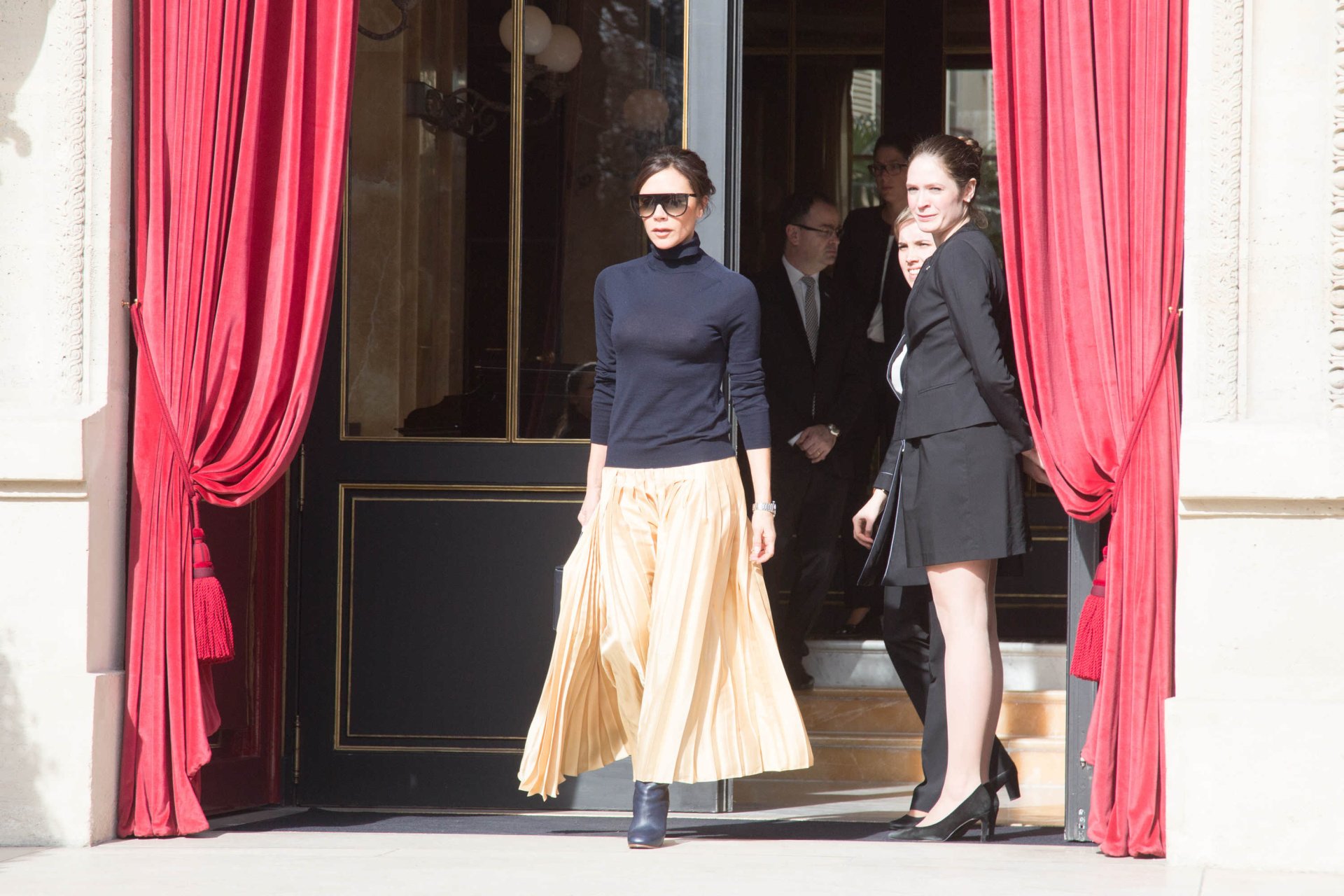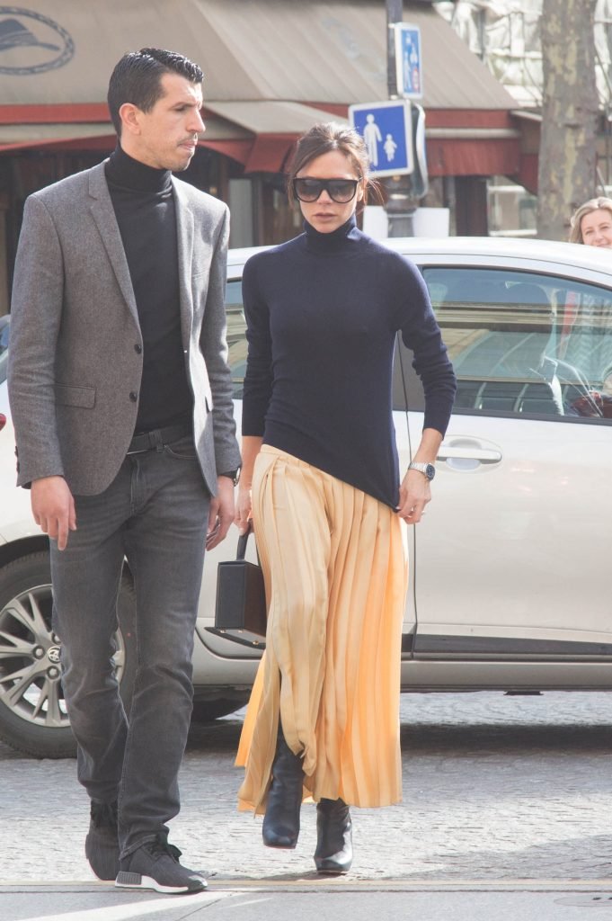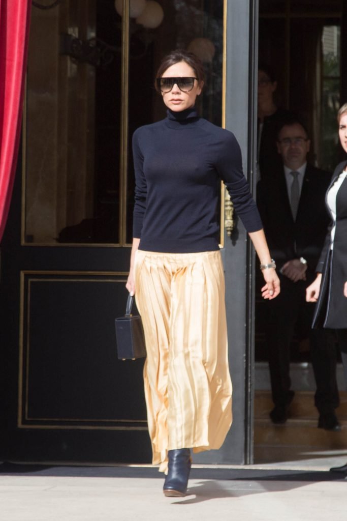 Бывшая участница Spice Girls Виктория Бекхэм, 43 года, показывает свои маленькие груди с твердыми сосками, когда ее заметили, покидающей отель La Reserve, направляясь на вокзал Гар дю Нор в Париже, 14.03.2018. Надеюсь, все довольны. Виктория Кэролайн Бекхэм известна как английский модельер, модель, бизнесвумен и жена футболиста Дэвида Бекхэма.