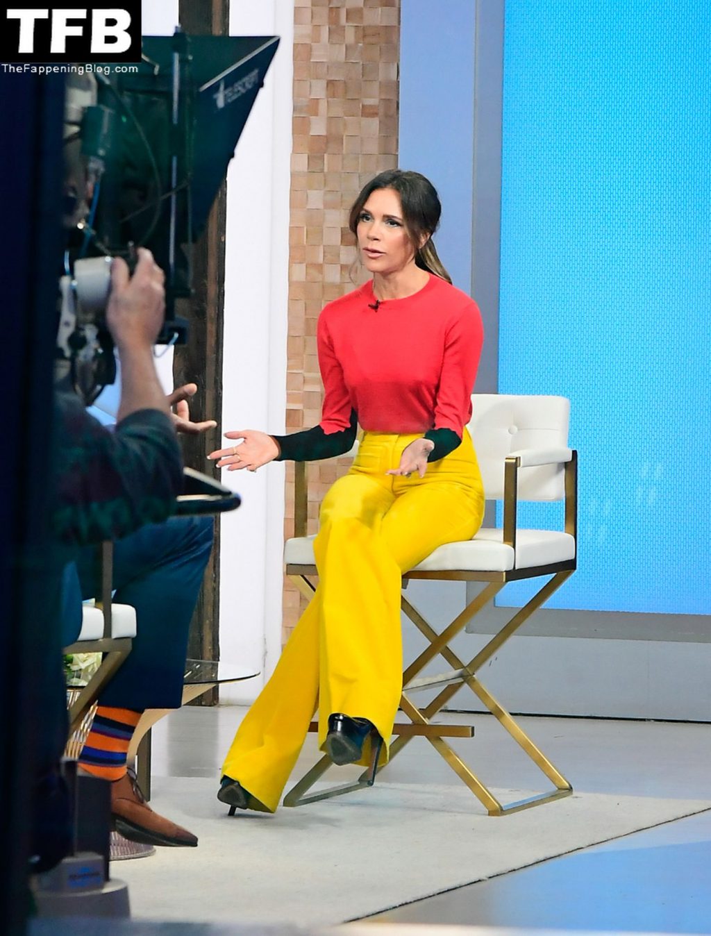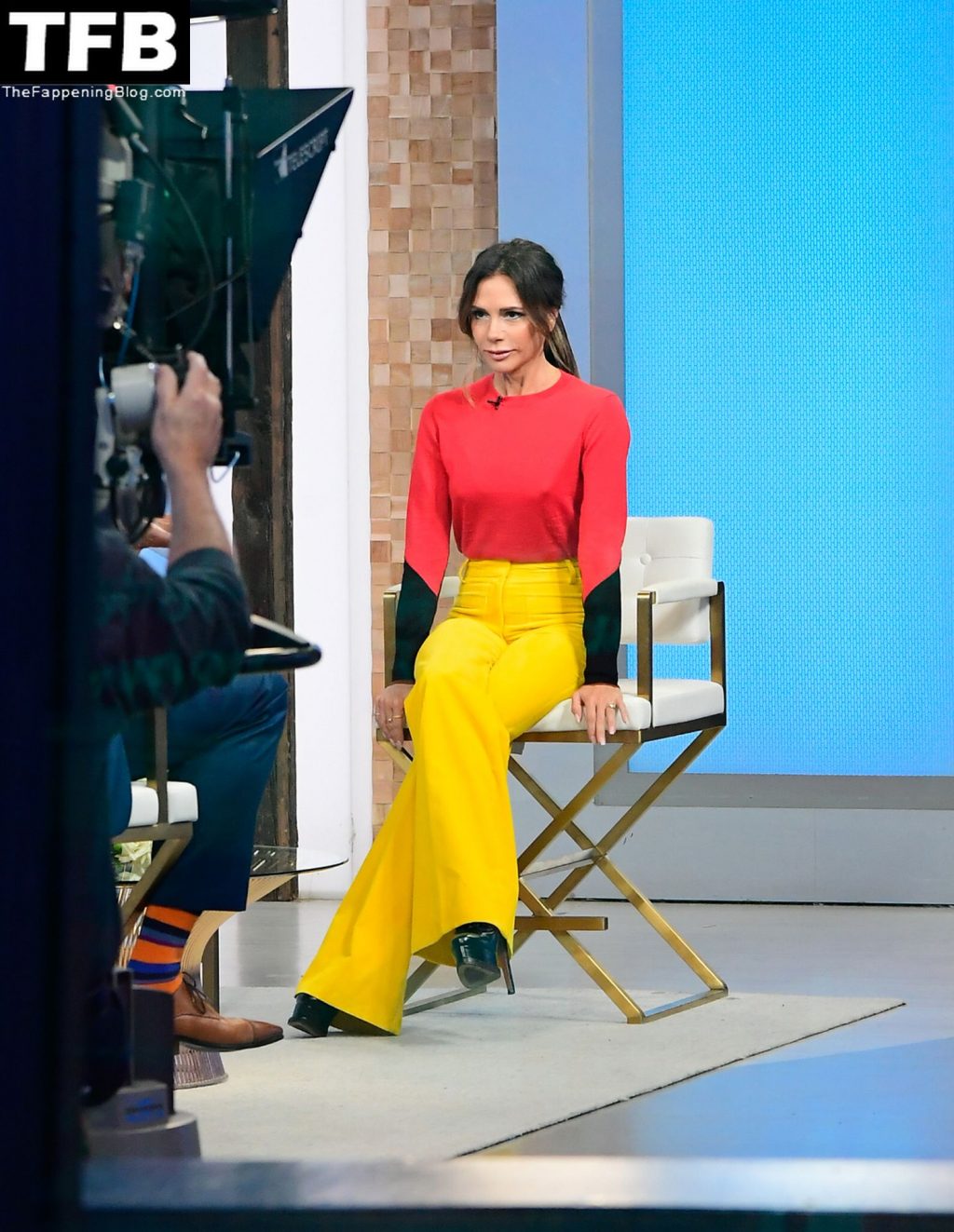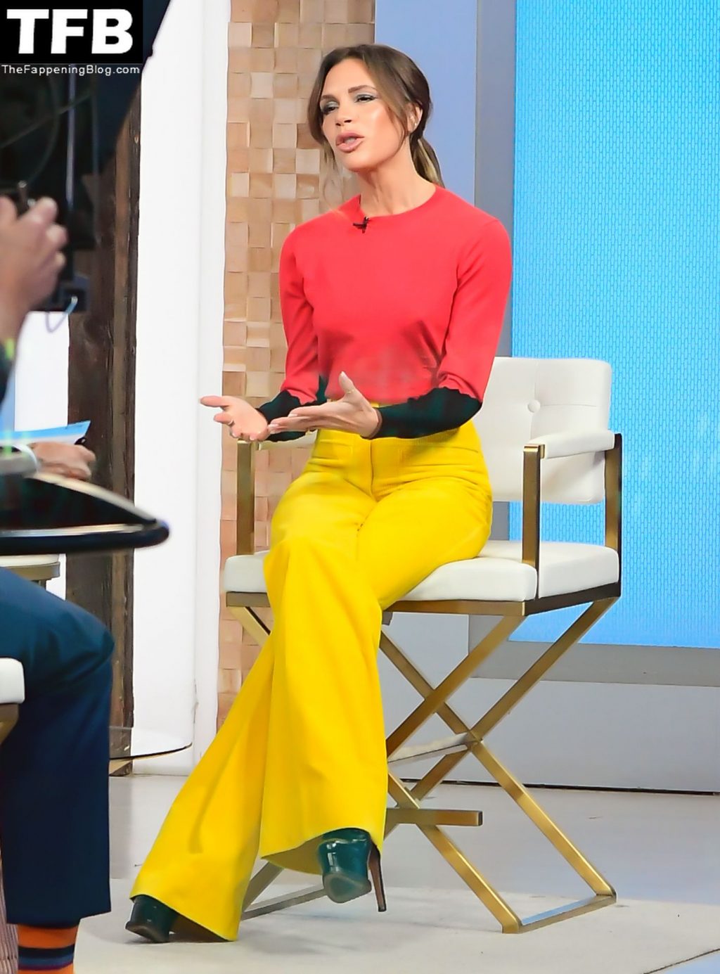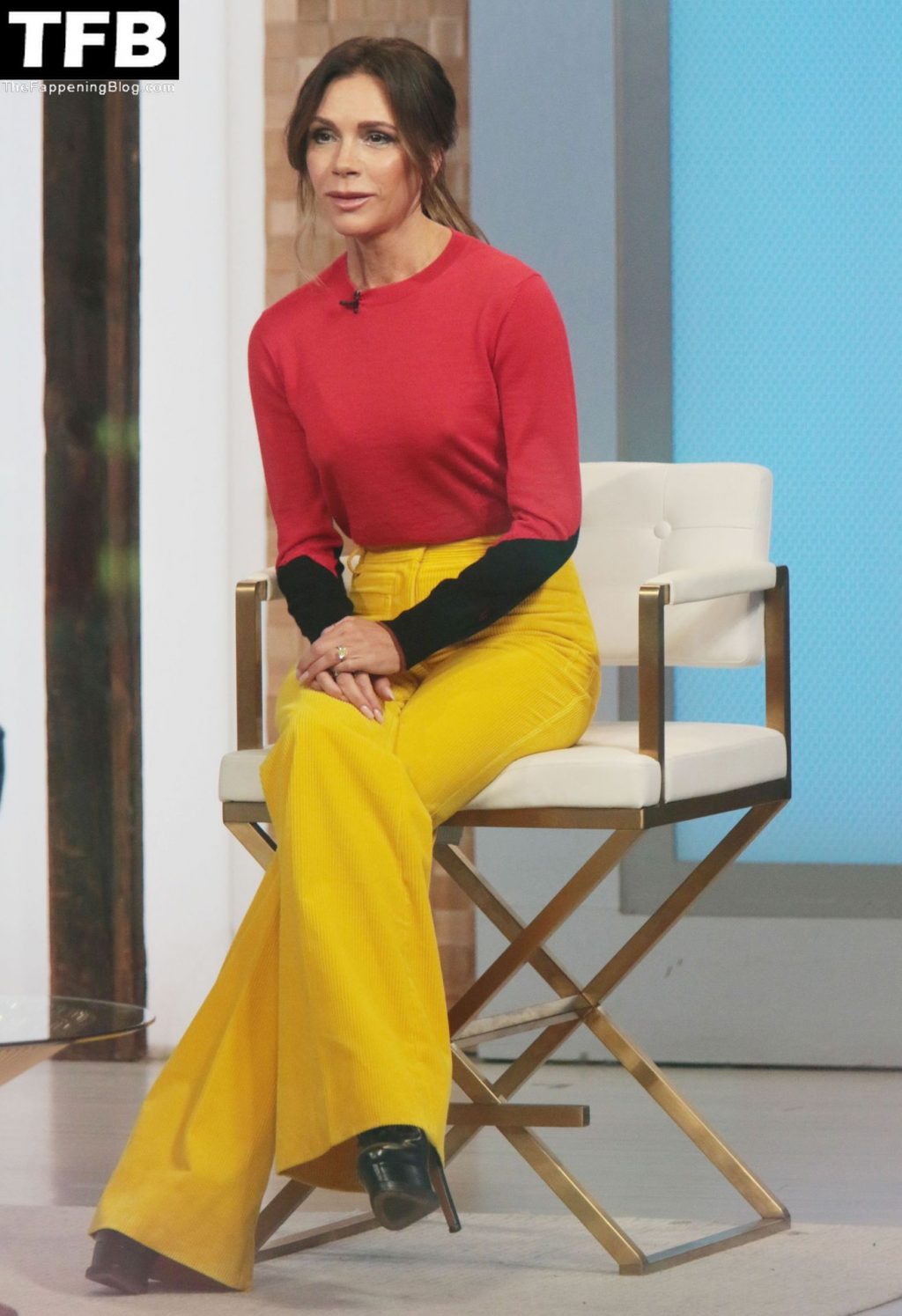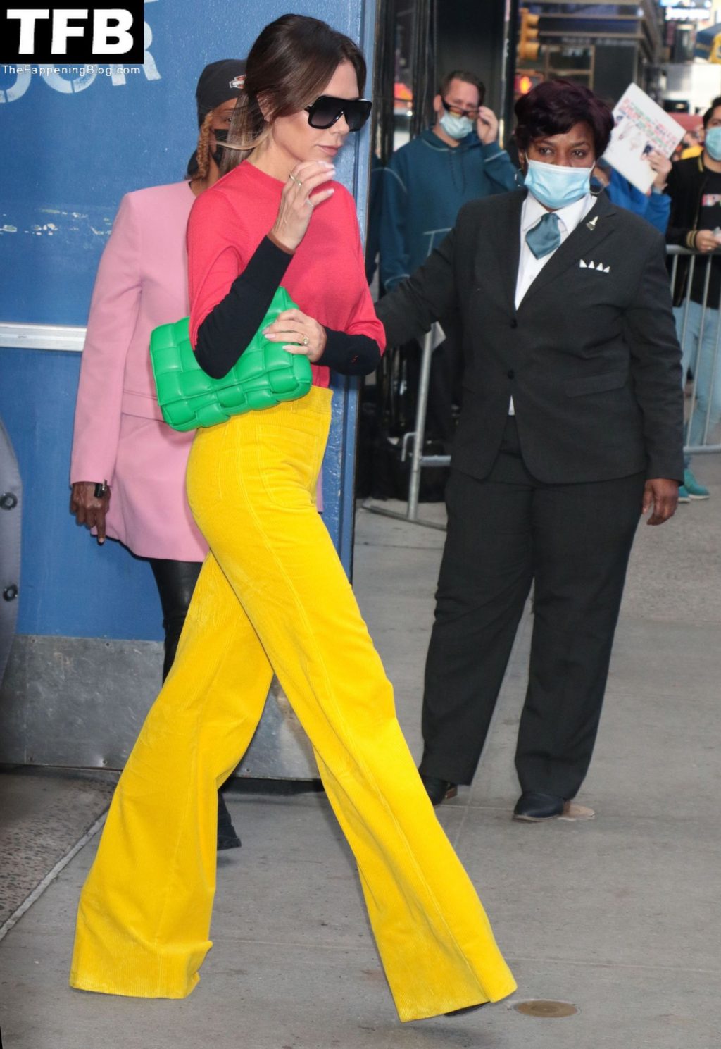 Victoria Beckham запечатлена в очень стильном образе по пути на шоу “Good Morning America”, где она продвигает свою новую линию одежды, обуви, сумок и косметики – Таймс-сквер, Манхэттен, 12.10.2021.