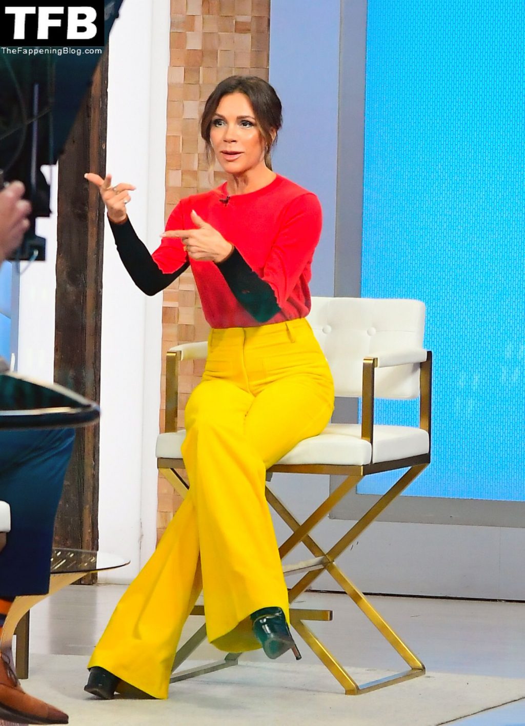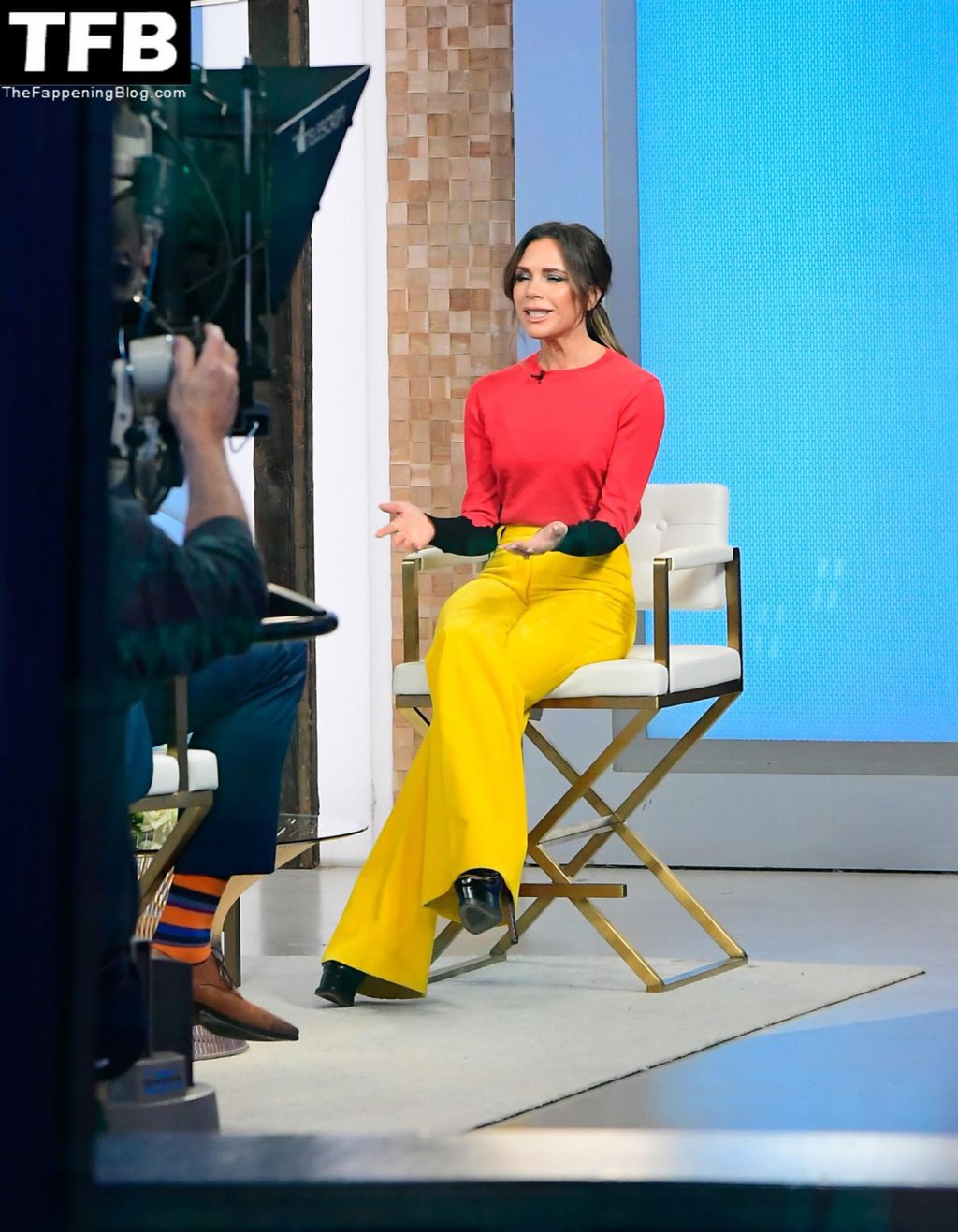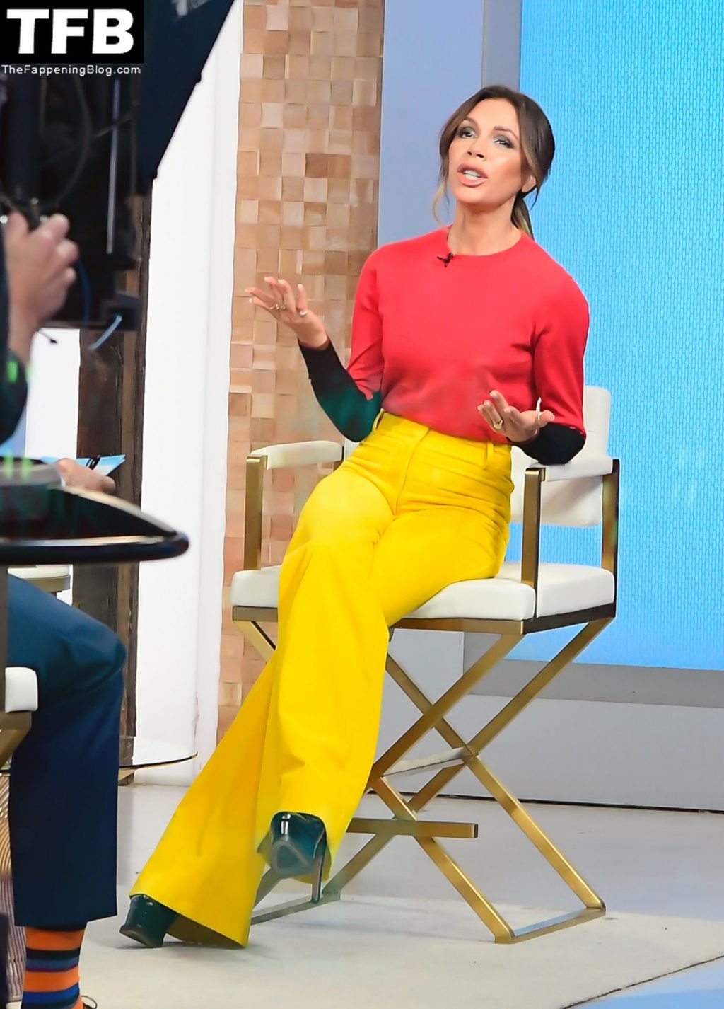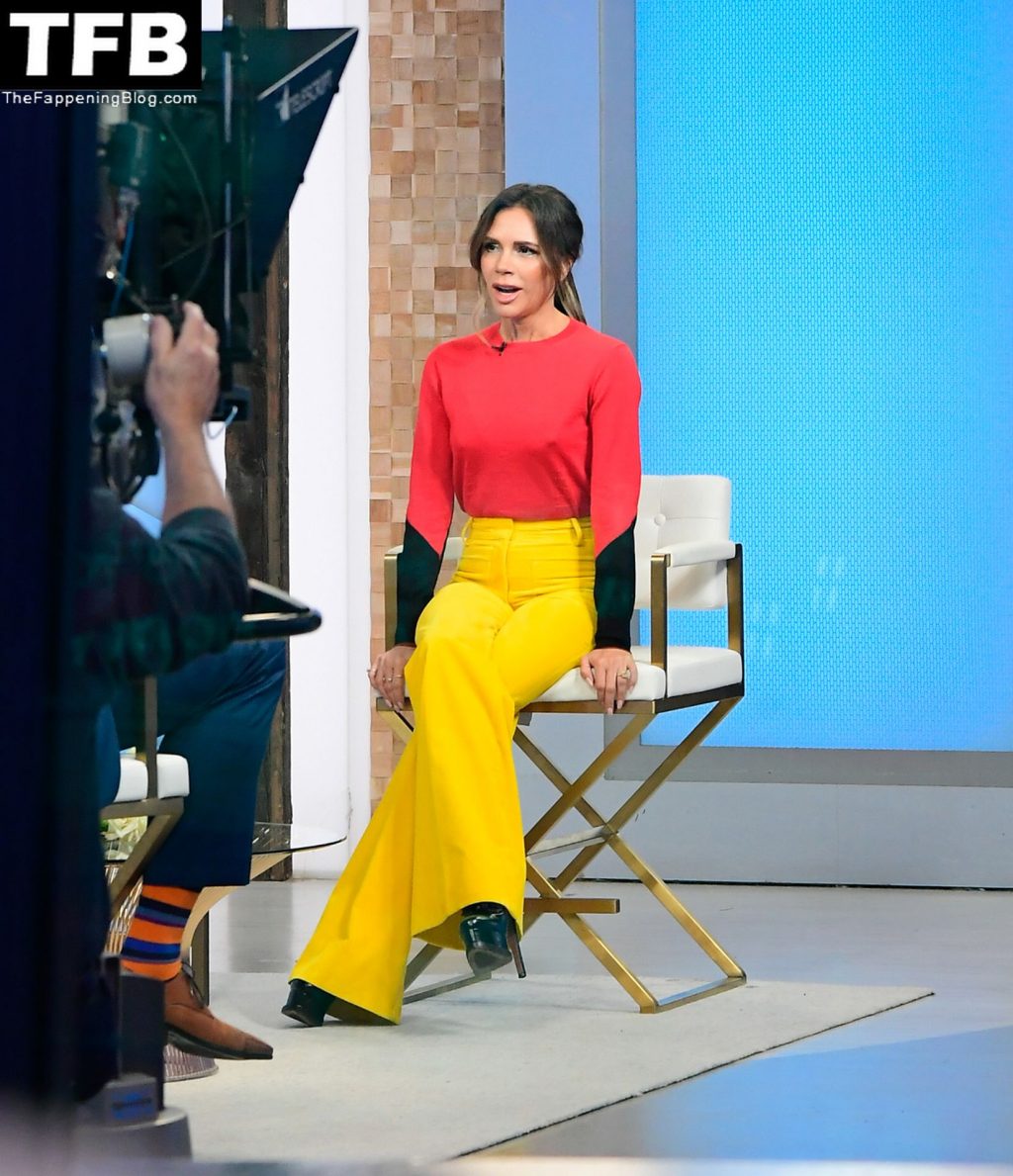 Victoria Beckham запечатлена в очень стильном образе по пути на шоу “Good Morning America”, где она продвигает свою новую линию одежды, обуви, сумок и косметики – Таймс-сквер, Манхэттен, 12.10.2021.