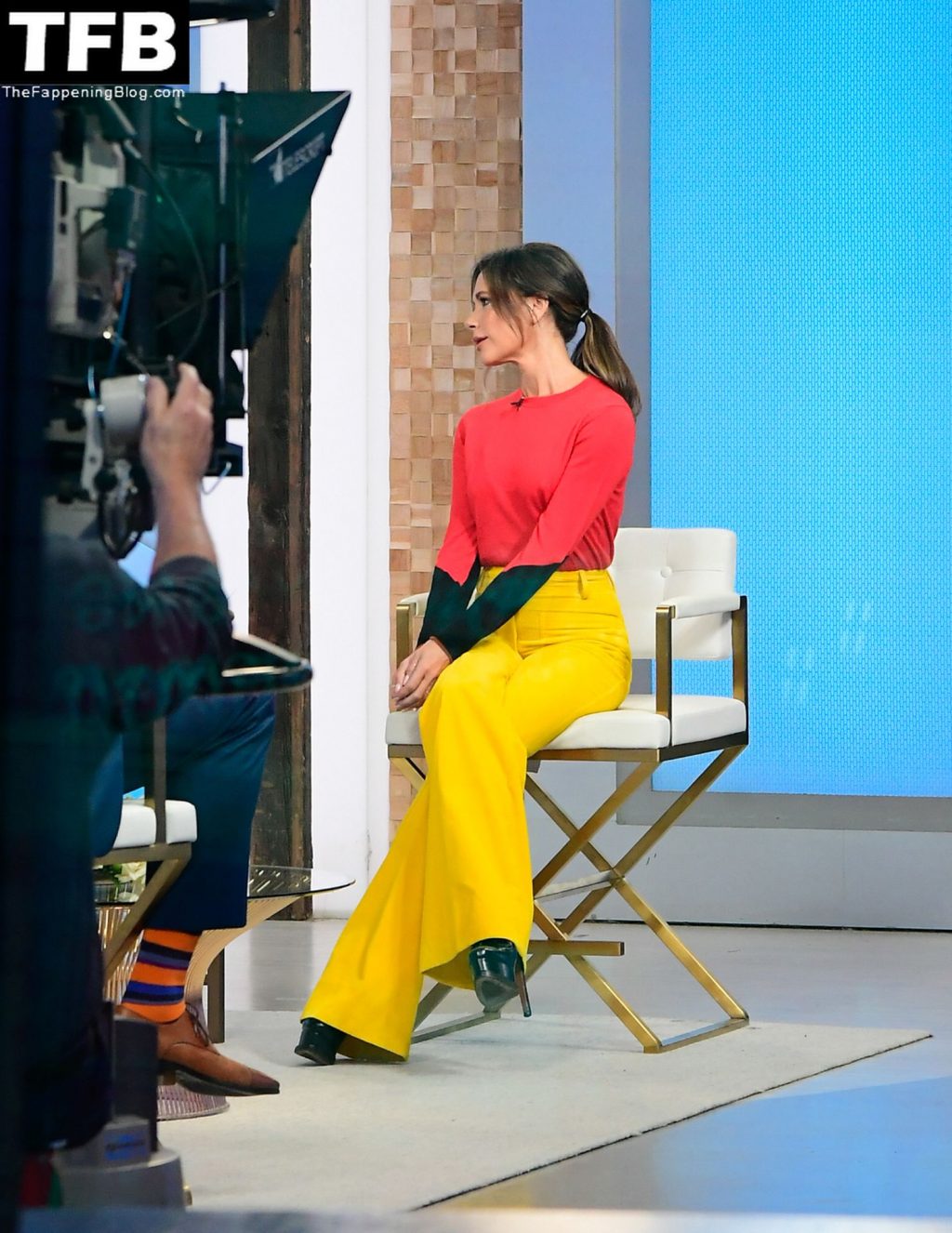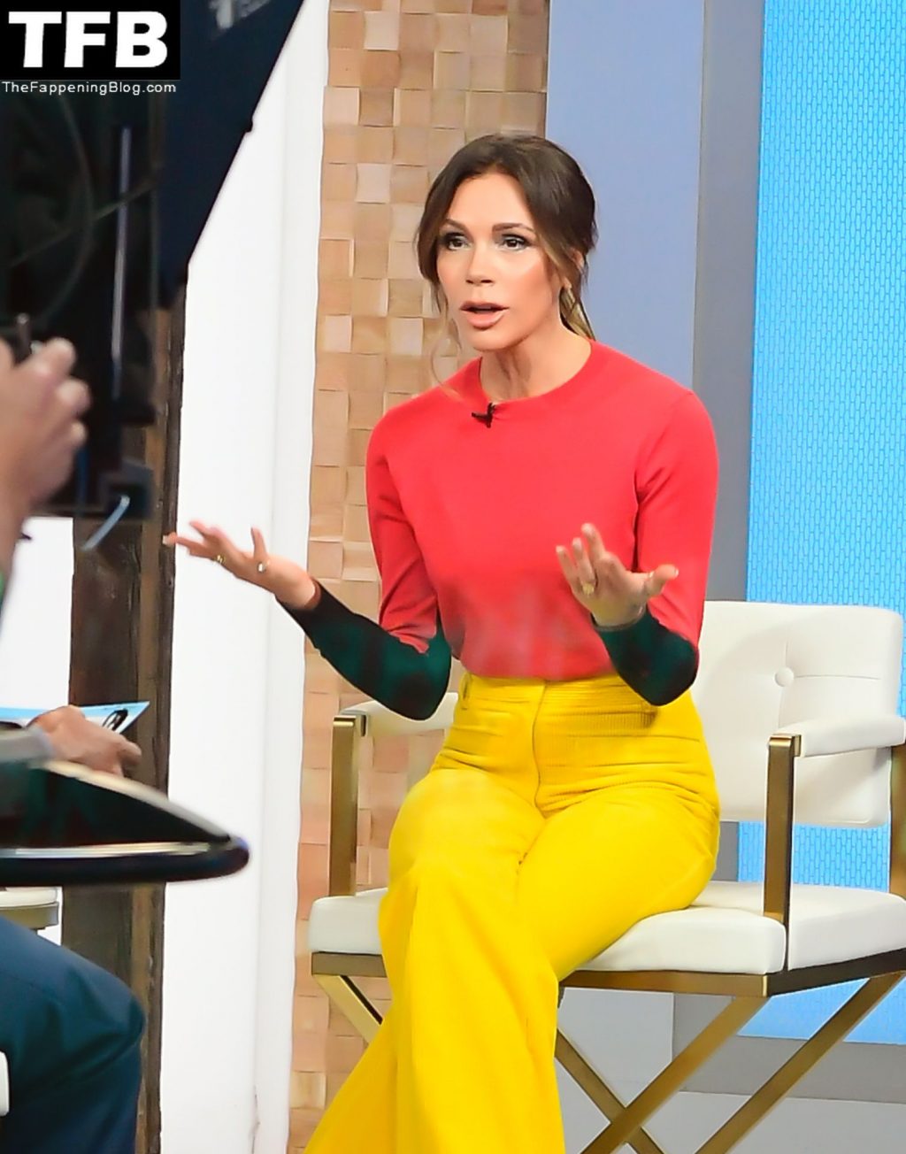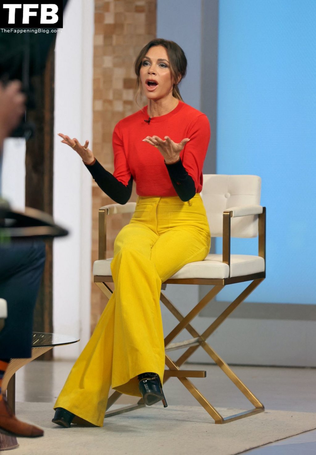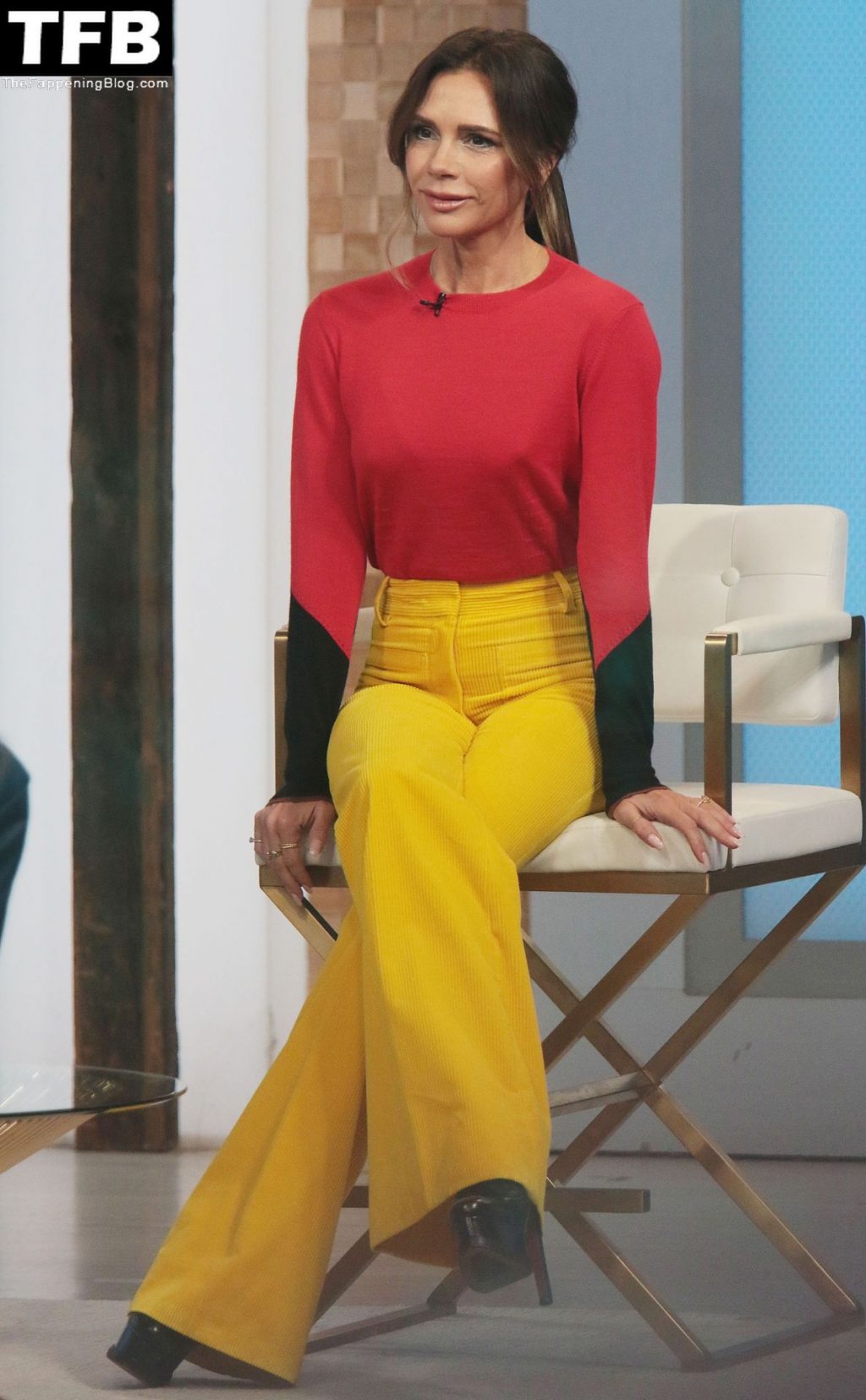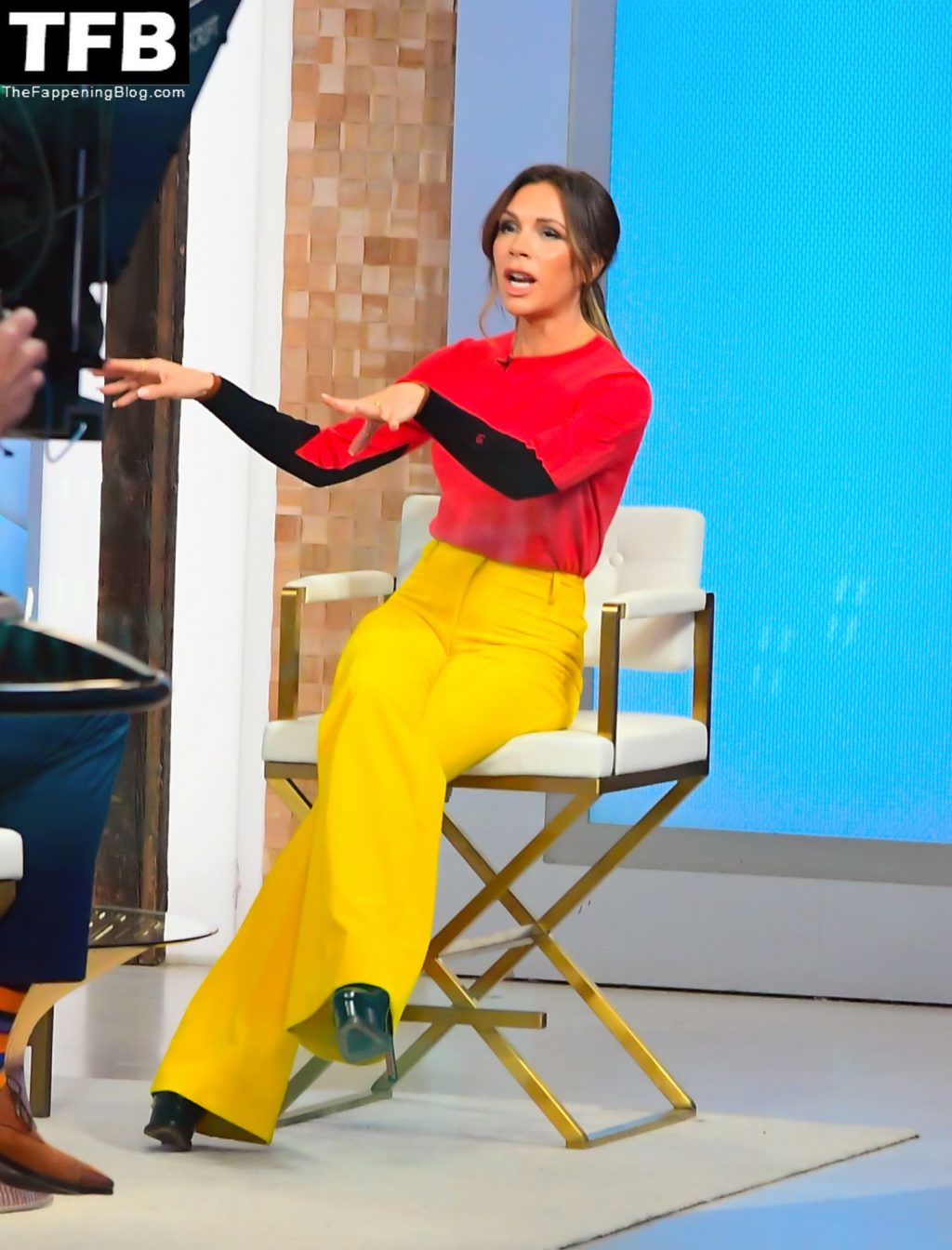 Victoria Beckham запечатлена в очень стильном образе по пути на шоу “Good Morning America”, где она продвигает свою новую линию одежды, обуви, сумок и косметики – Таймс-сквер, Манхэттен, 12.10.2021.