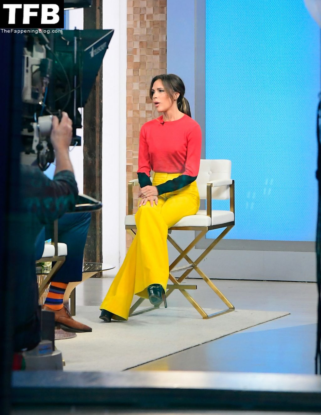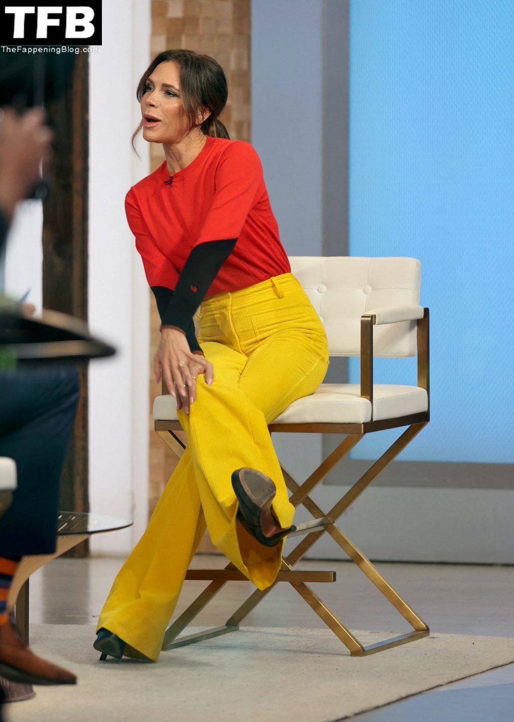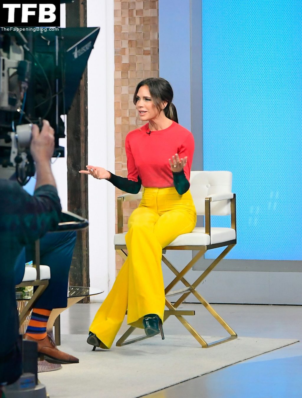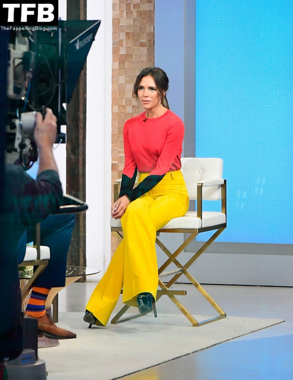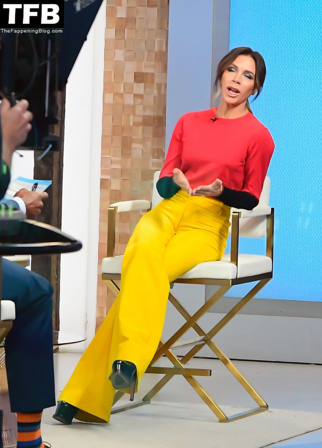 Victoria Beckham запечатлена в очень стильном образе по пути на шоу “Good Morning America”, где она продвигает свою новую линию одежды, обуви, сумок и косметики – Таймс-сквер, Манхэттен, 12.10.2021.