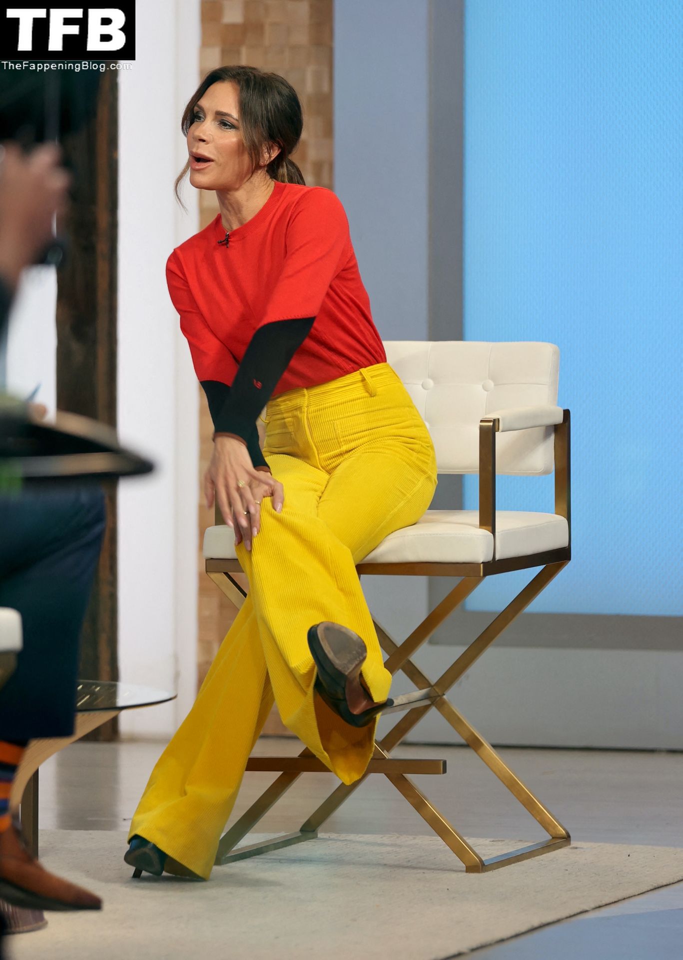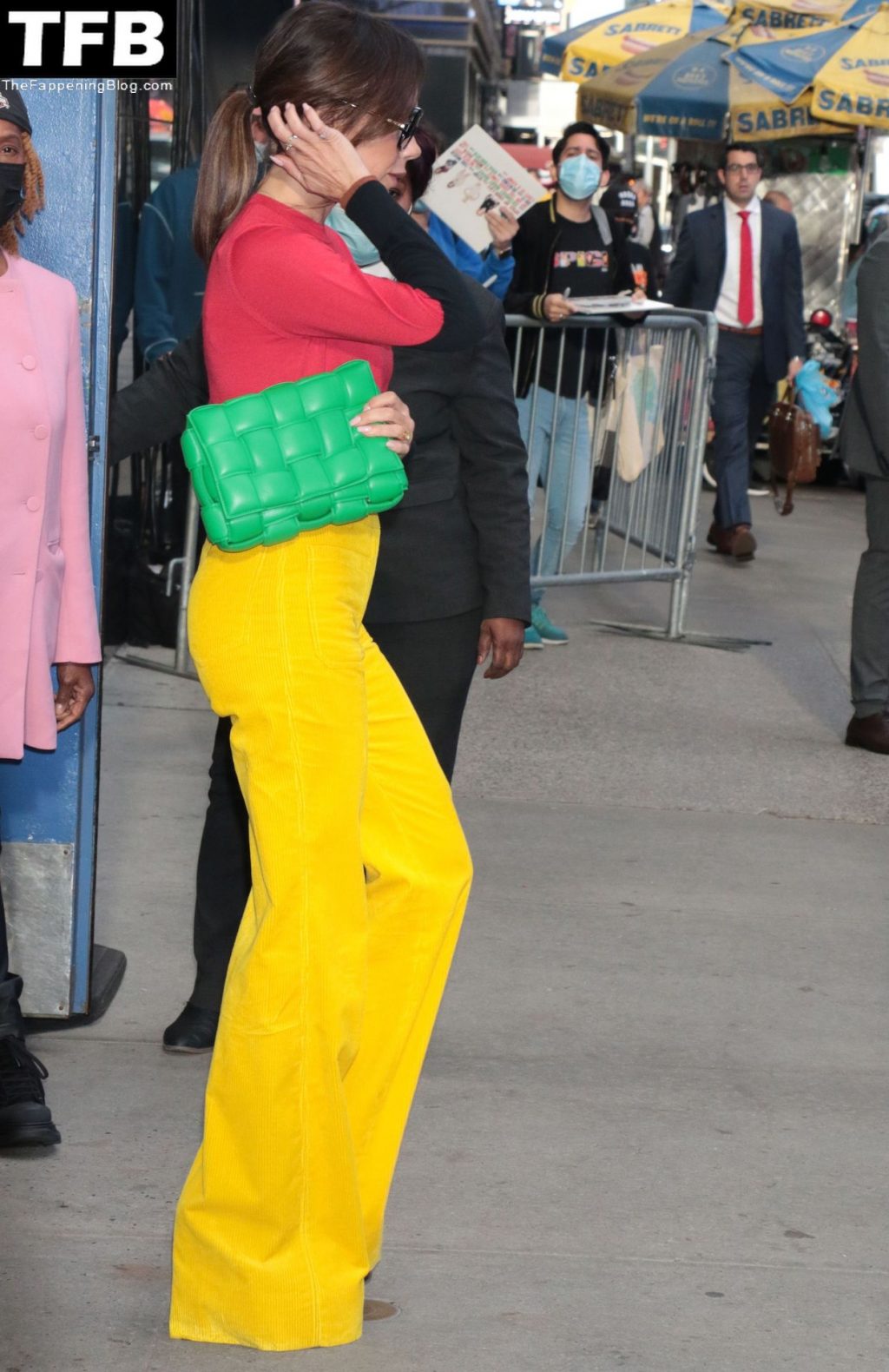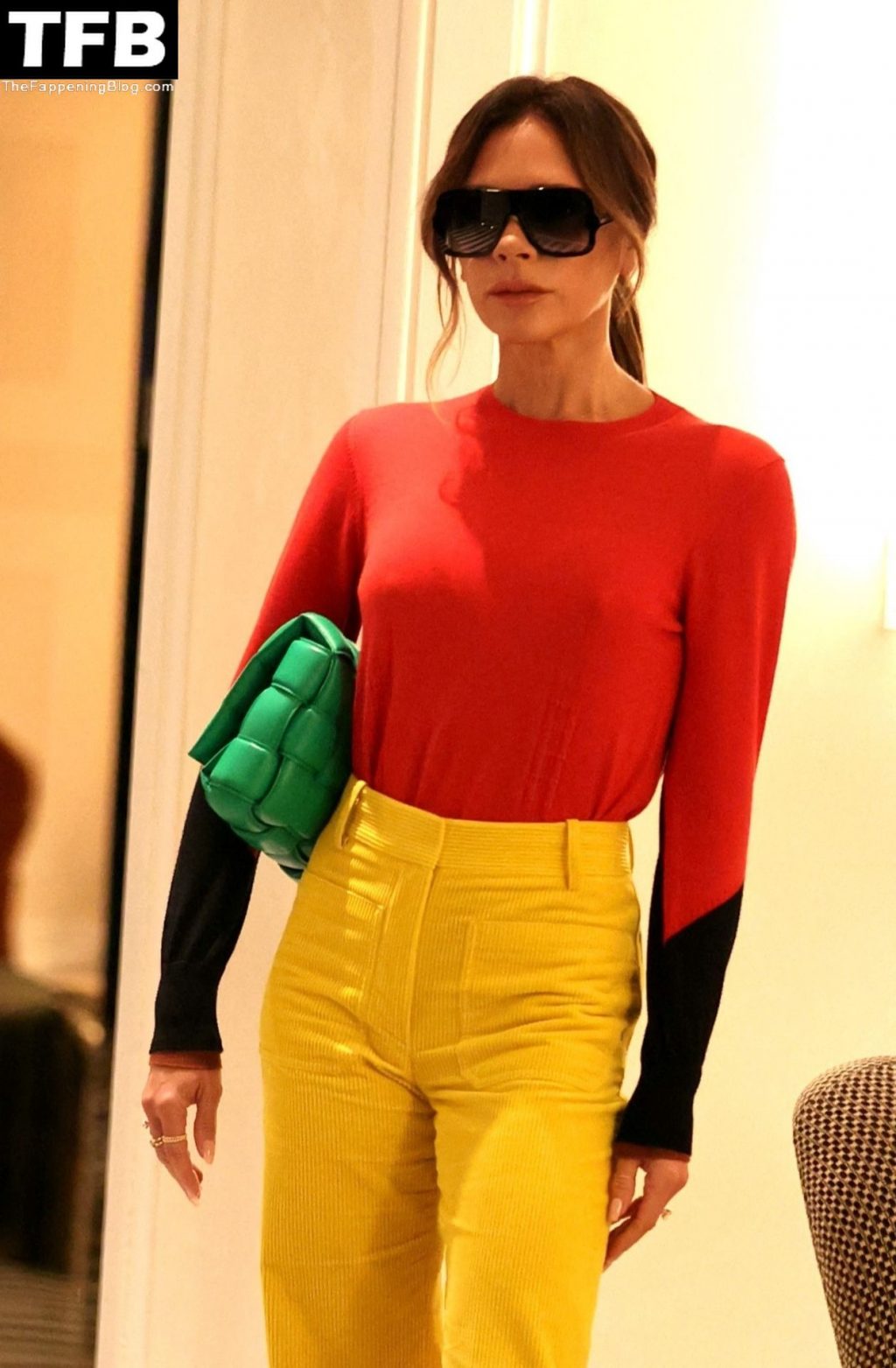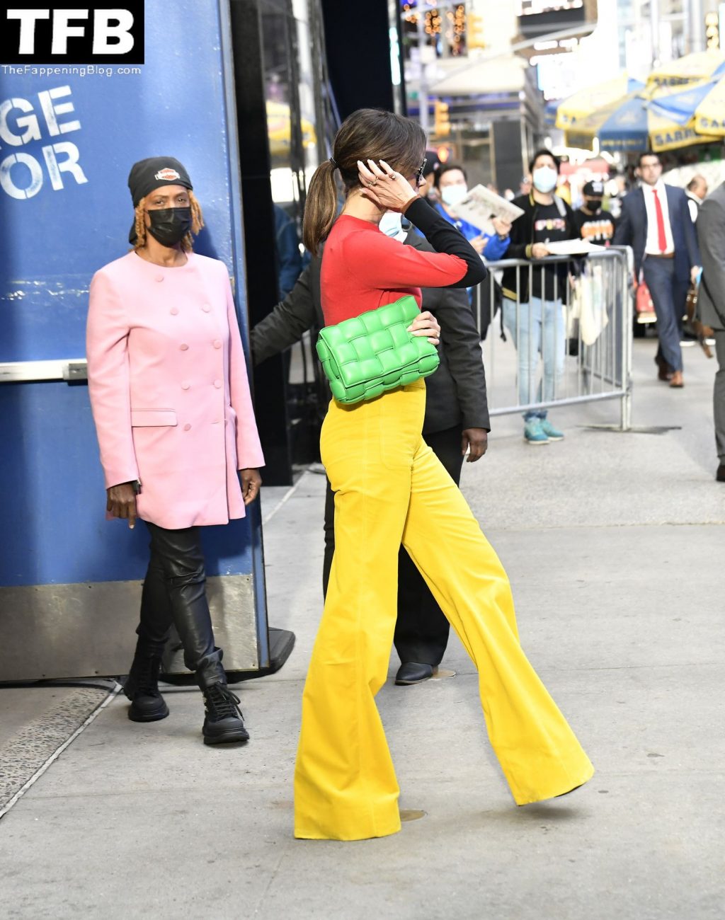 Victoria Beckham запечатлена в очень стильном образе по пути на шоу “Good Morning America”, где она продвигает свою новую линию одежды, обуви, сумок и косметики – Таймс-сквер, Манхэттен, 12.10.2021.