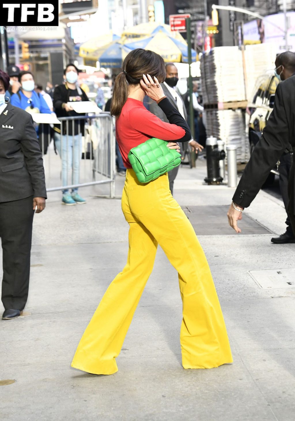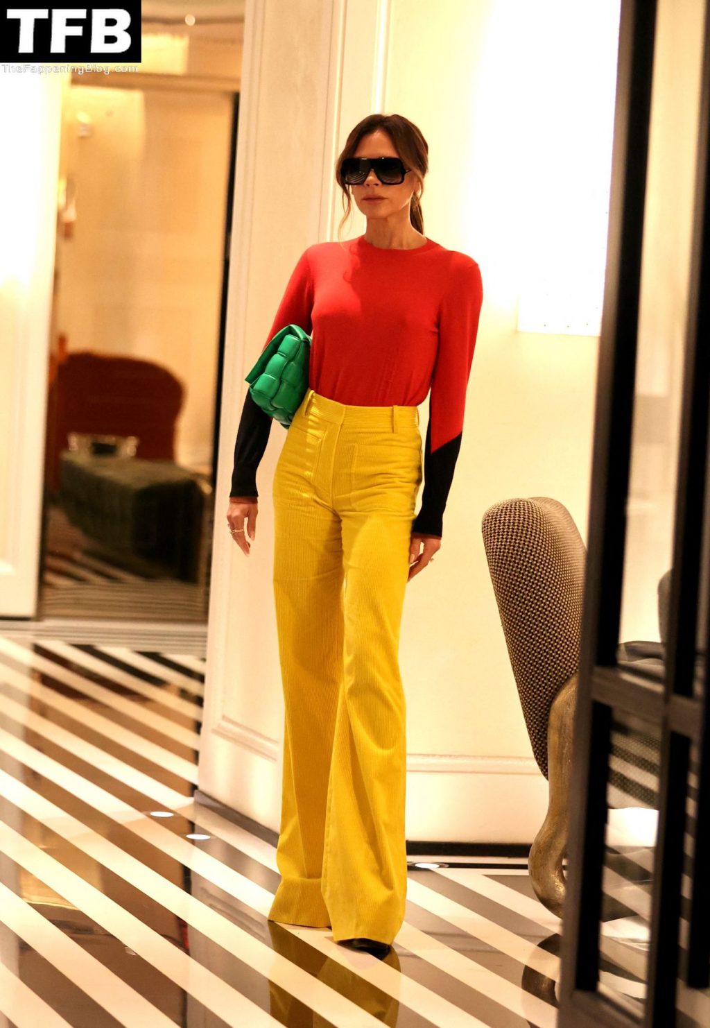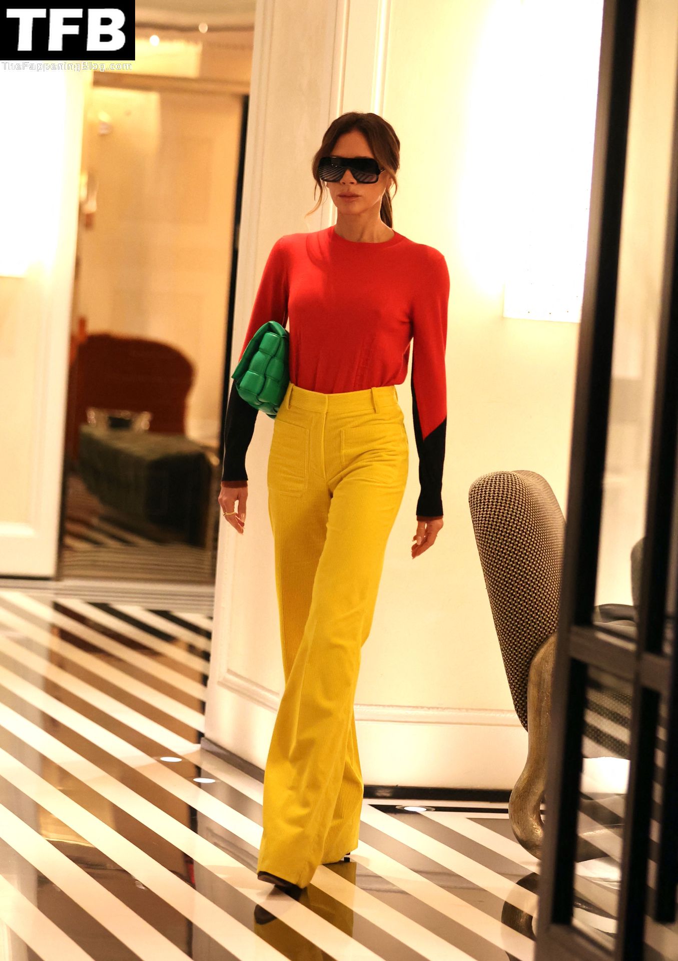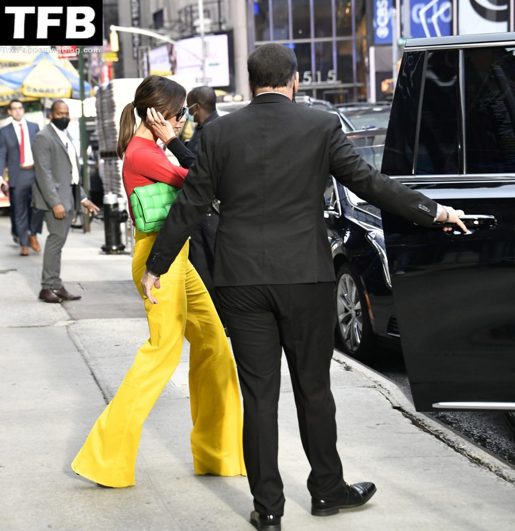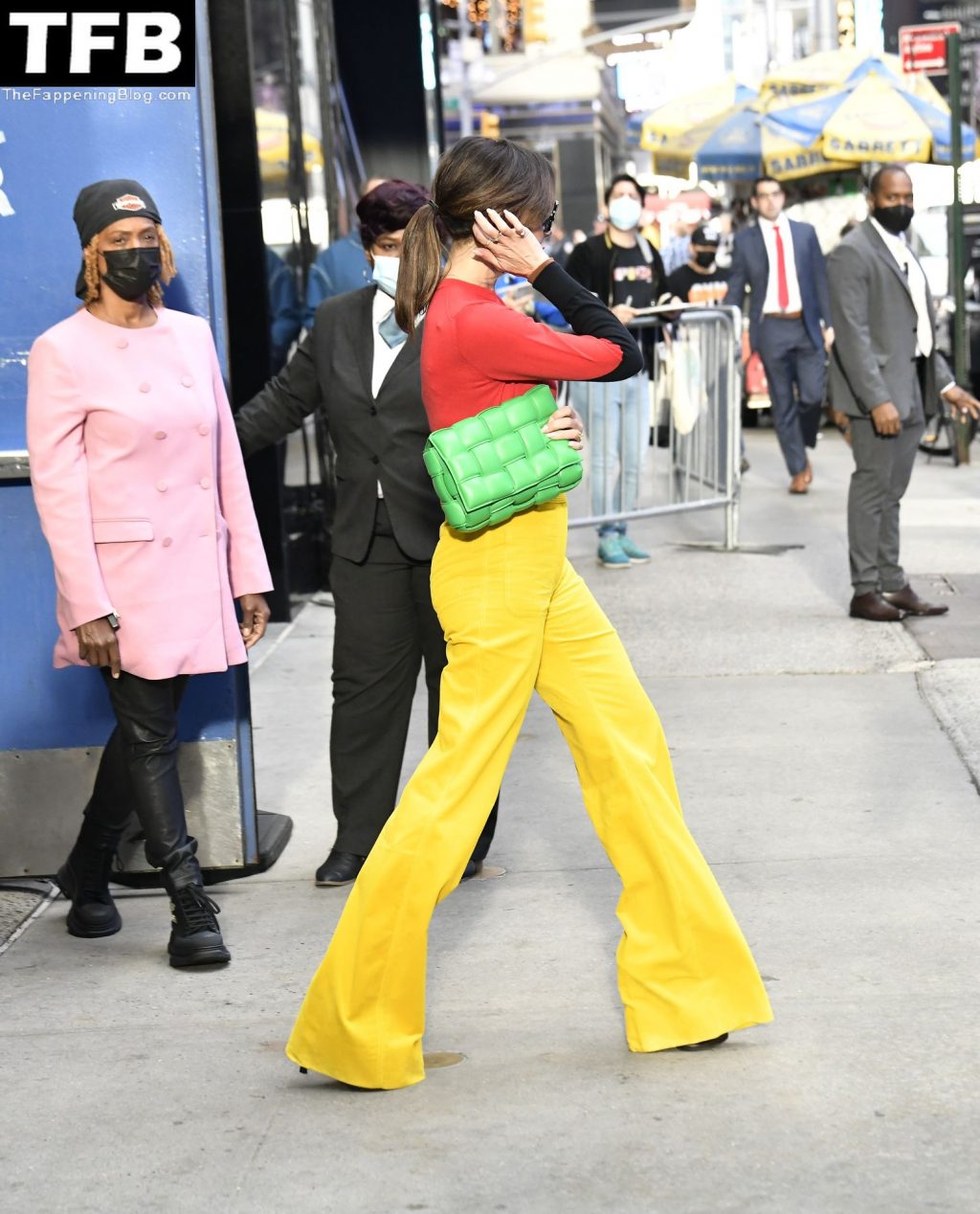 Victoria Beckham запечатлена в очень стильном образе по пути на шоу “Good Morning America”, где она продвигает свою новую линию одежды, обуви, сумок и косметики – Таймс-сквер, Манхэттен, 12.10.2021.