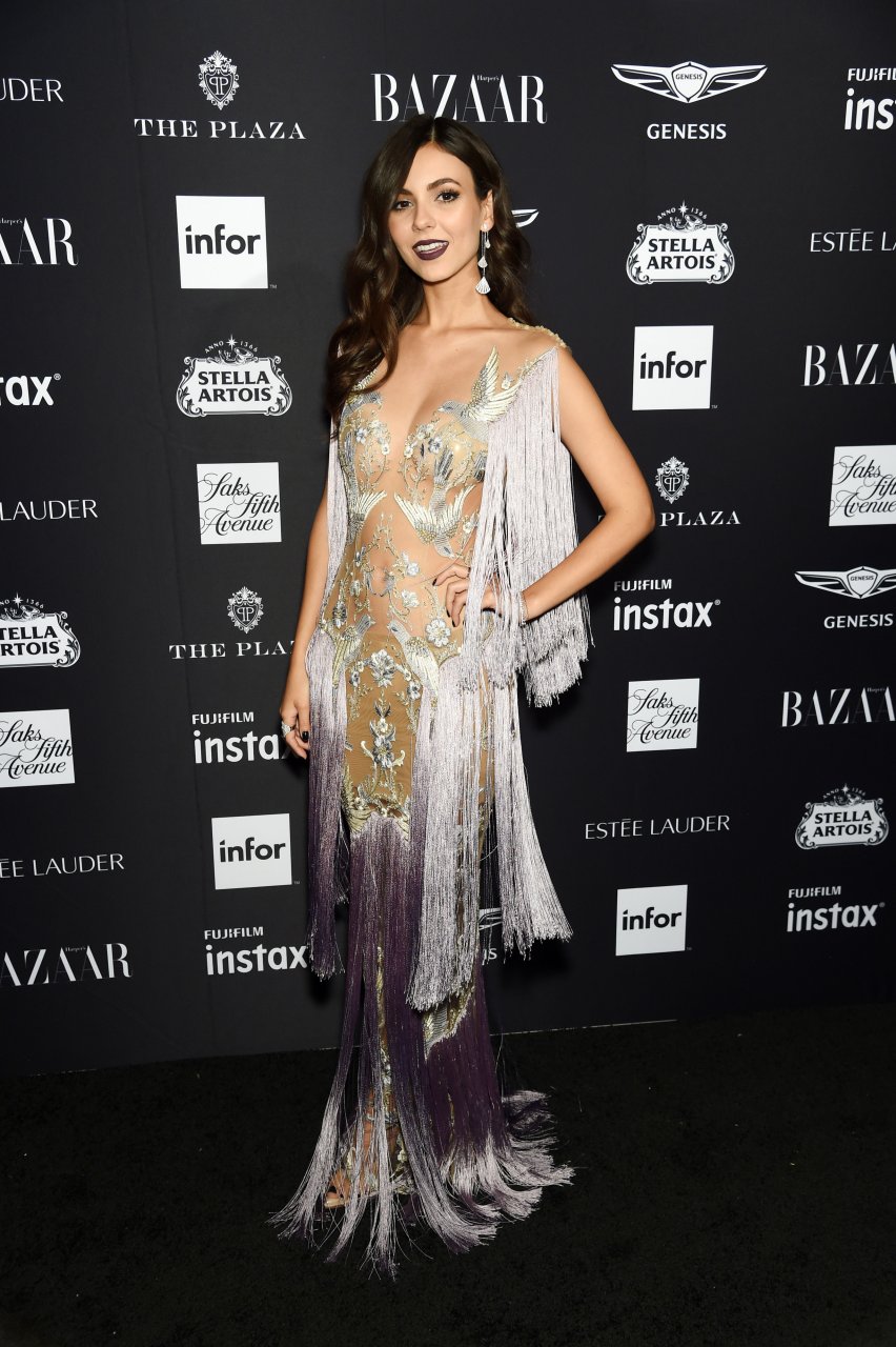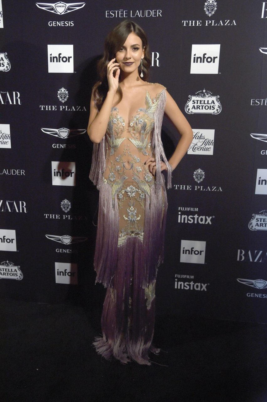 Виктория Джастис посещает вечеринку Harper’s Bazaar ICONS в Нью-Йорке, 07.09.2018. 25-летняя американская актриса и певица была в прозрачном платье от Паоло Себастиана.