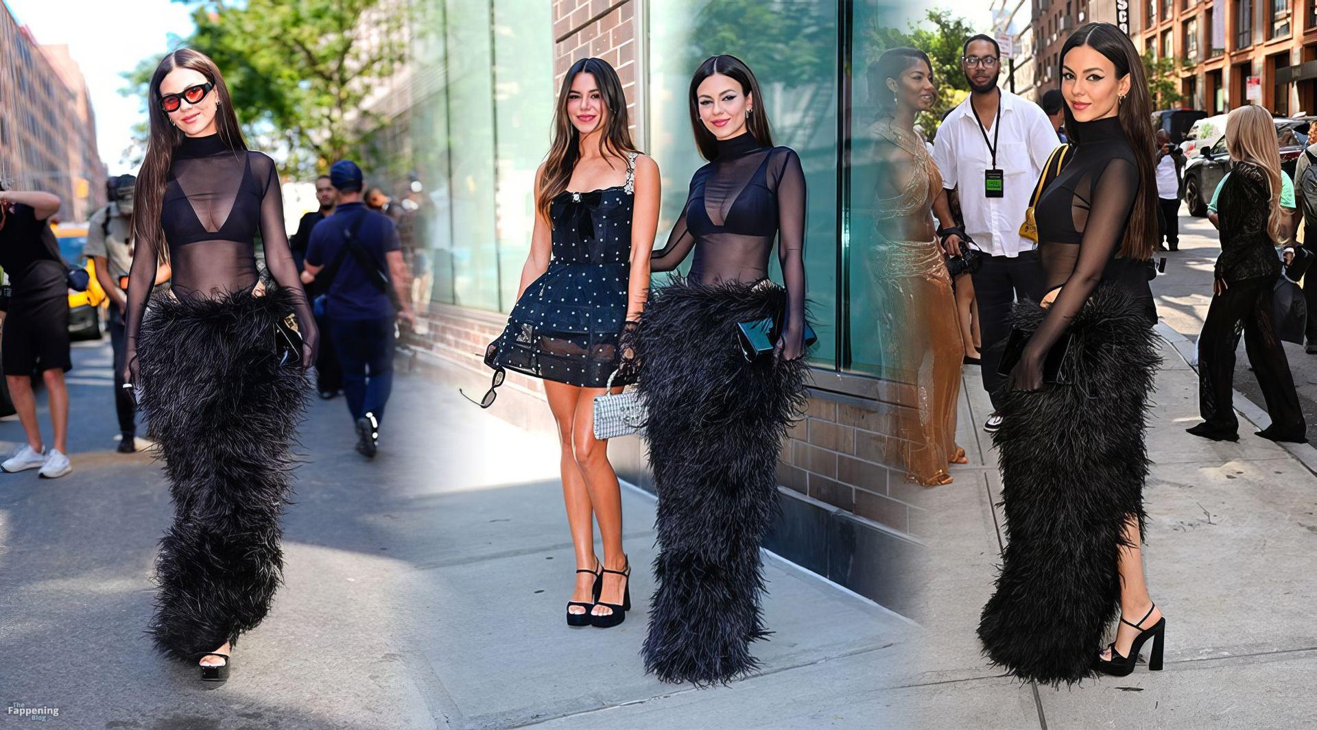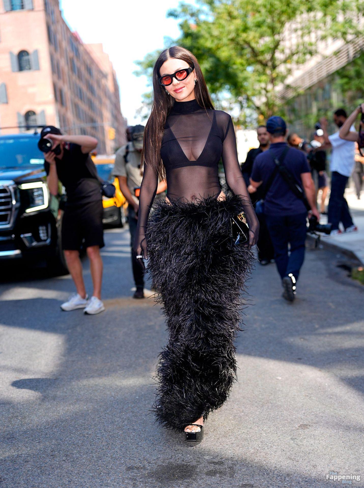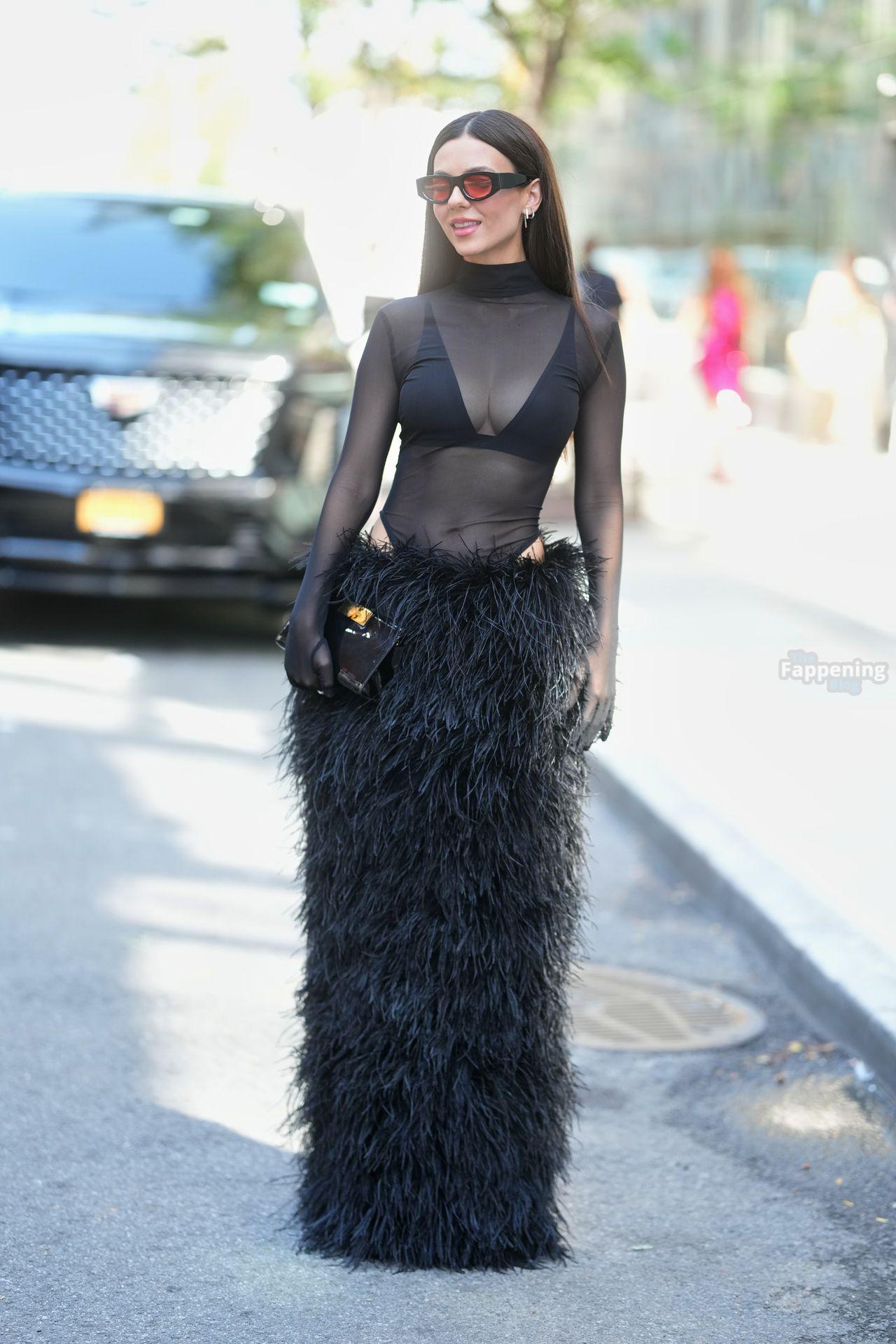 Виктория Джастис была на показе Bronx and Banco на NYFW, блистая в прозрачном черном сетчатом топе, черном бюстгальтере и пушистой черной макси-юбке. Она дополнила смелый образ высокой моды солнцезащитными очками и черной сумочкой, заметная вне шоу во время Недели моды в Нью-Йорке.