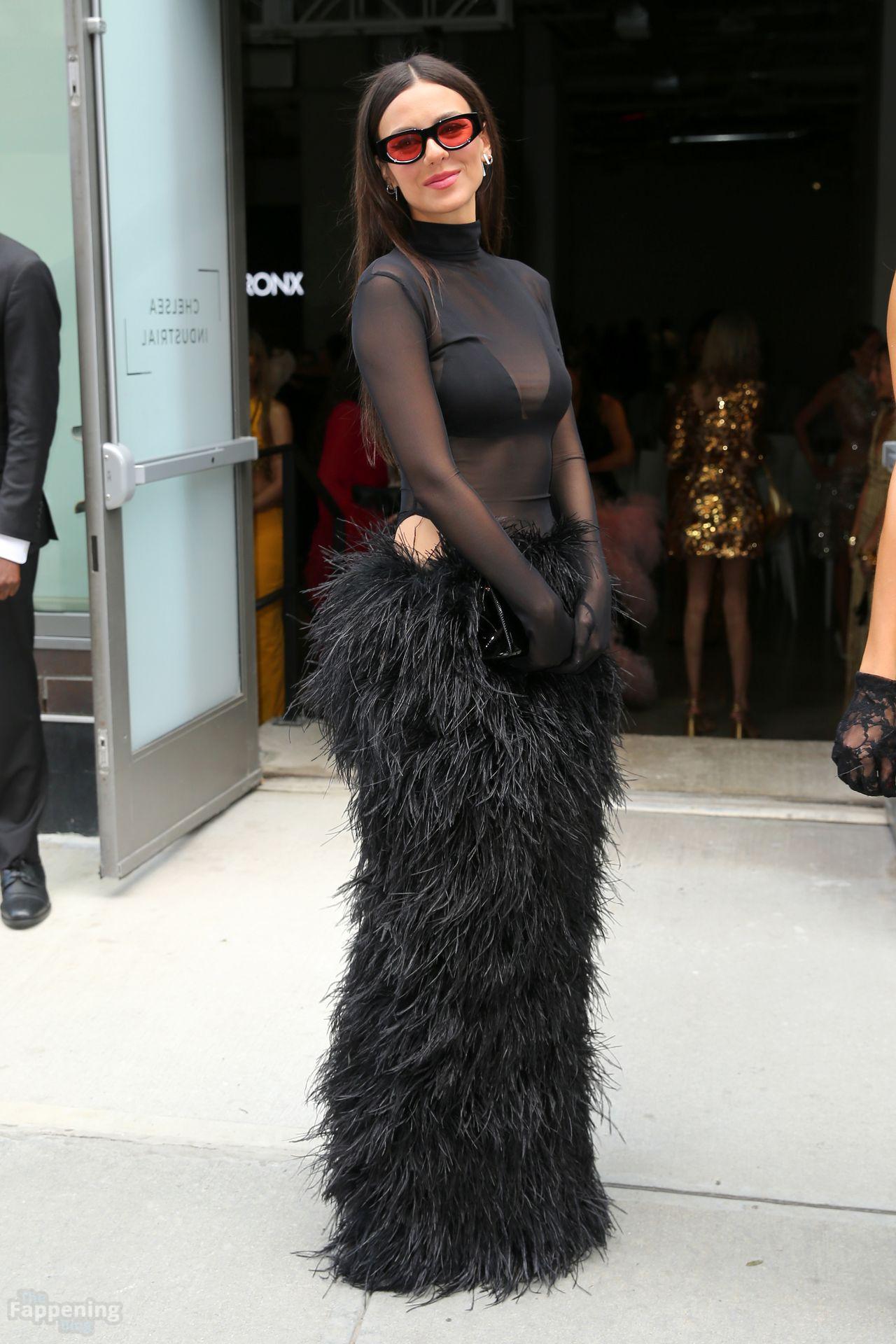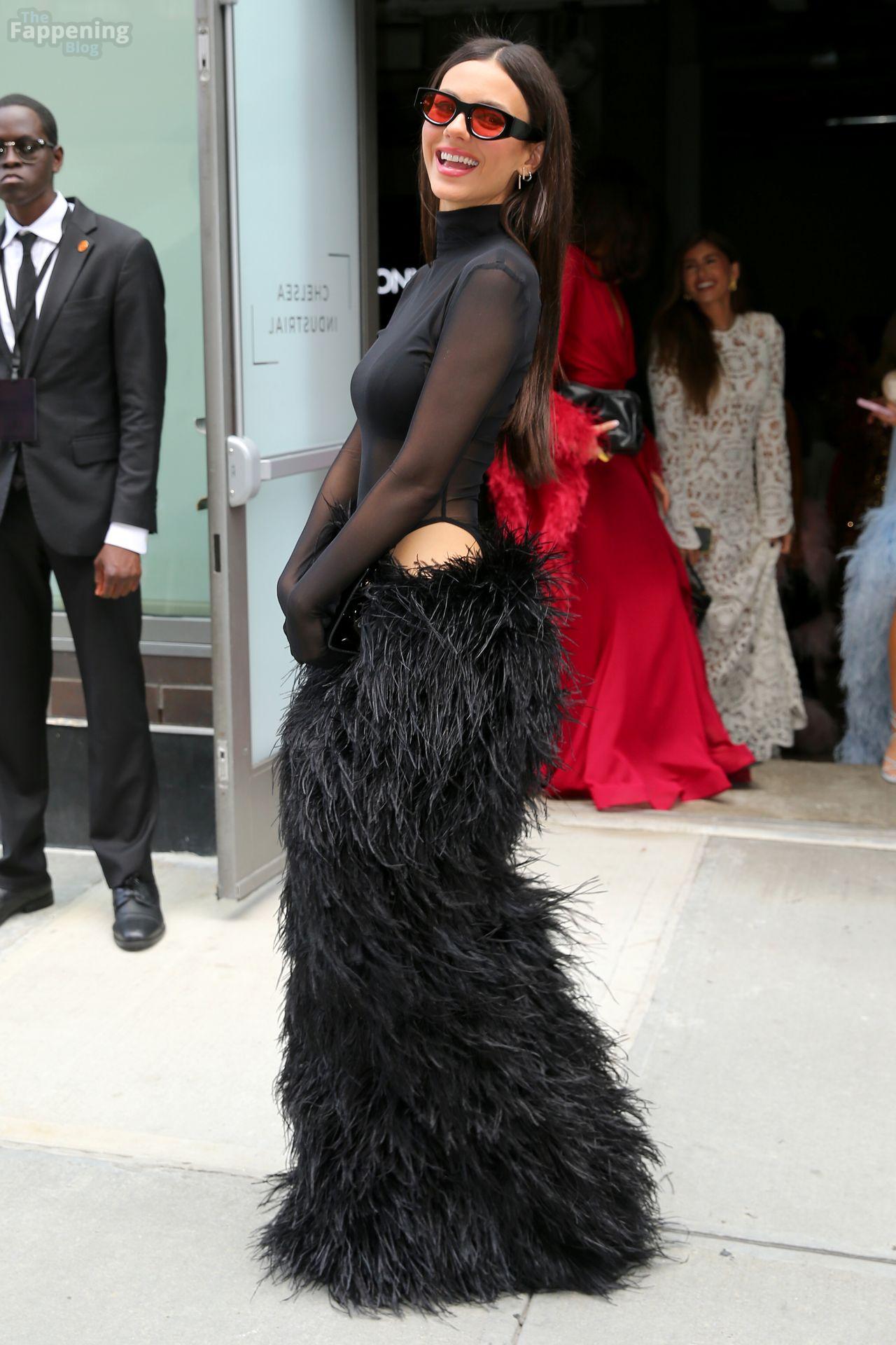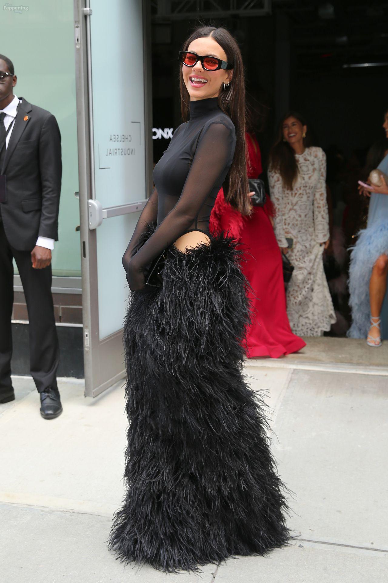 Виктория Джастис была на показе Bronx and Banco на NYFW, блистая в прозрачном черном сетчатом топе, черном бюстгальтере и пушистой черной макси-юбке. Она дополнила смелый образ высокой моды солнцезащитными очками и черной сумочкой, заметная вне шоу во время Недели моды в Нью-Йорке.
