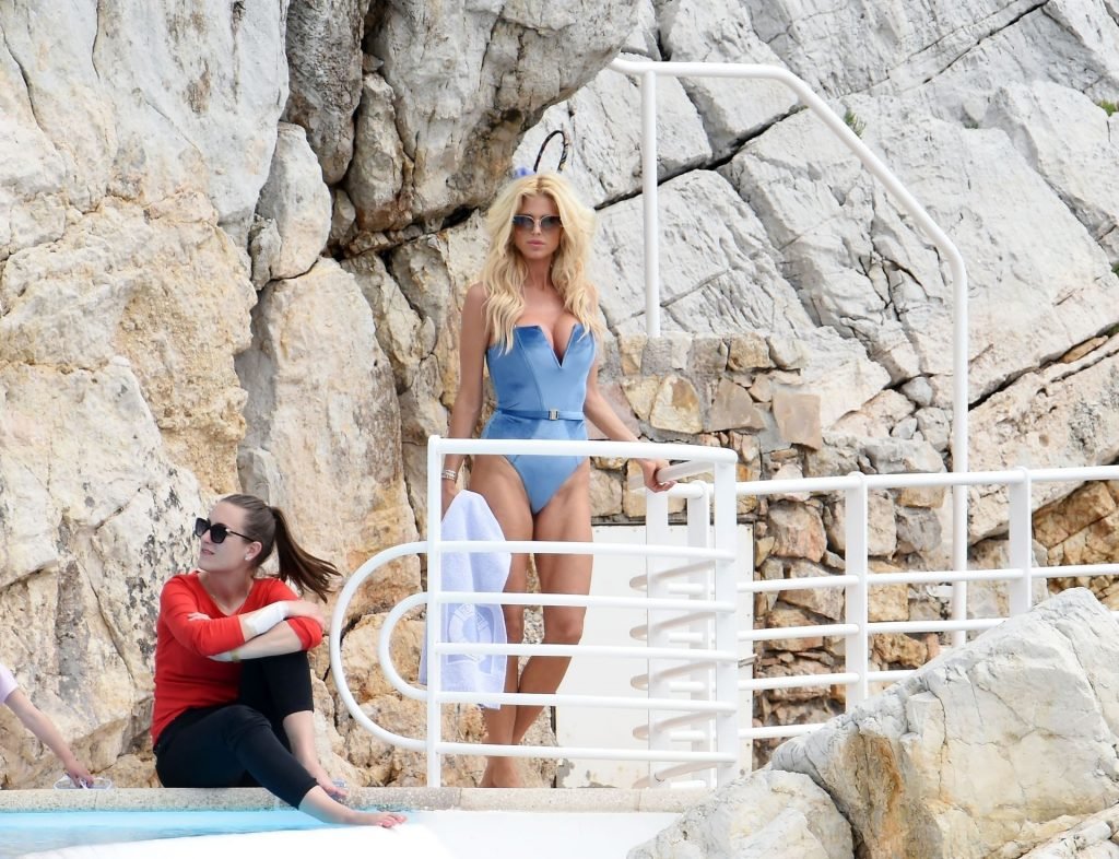 Шведская модель и актриса Виктория Сильвстедт была сфотографирована в синем купальнике, отдыхая у бассейна в отеле Hotel du Cap-Eden-Roc, 22.05.2019.
