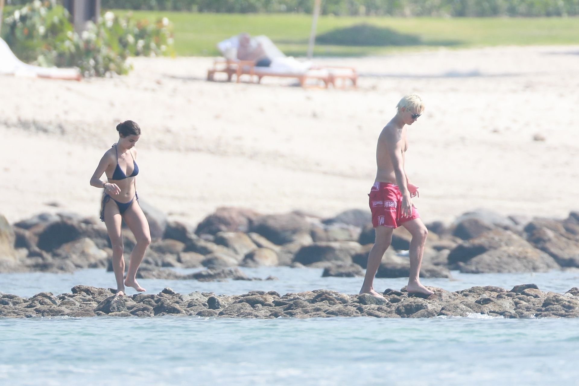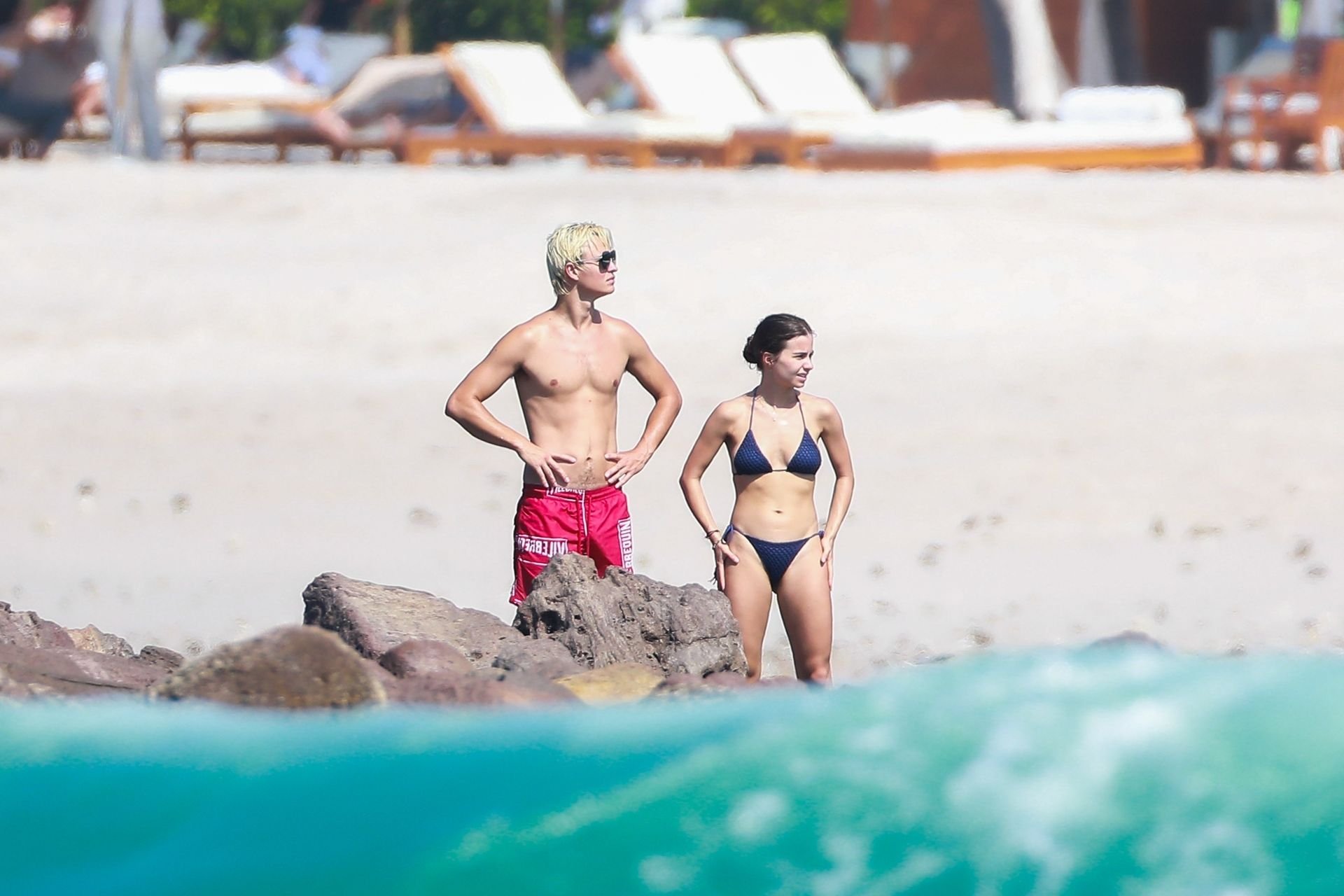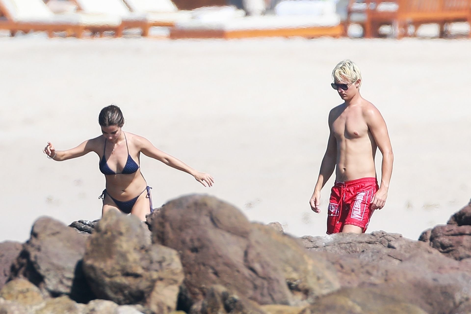 Ансел Элгорт привез Виолетту Комышан в Мексику, где пара демонстрировала свои чувства на пляже, 20.01.2019. Звезда “Baby Driver”, 24 года, который осветлил волосы, был в красных плавках, а балерина показала своё тело в двухцветном синем бикини.