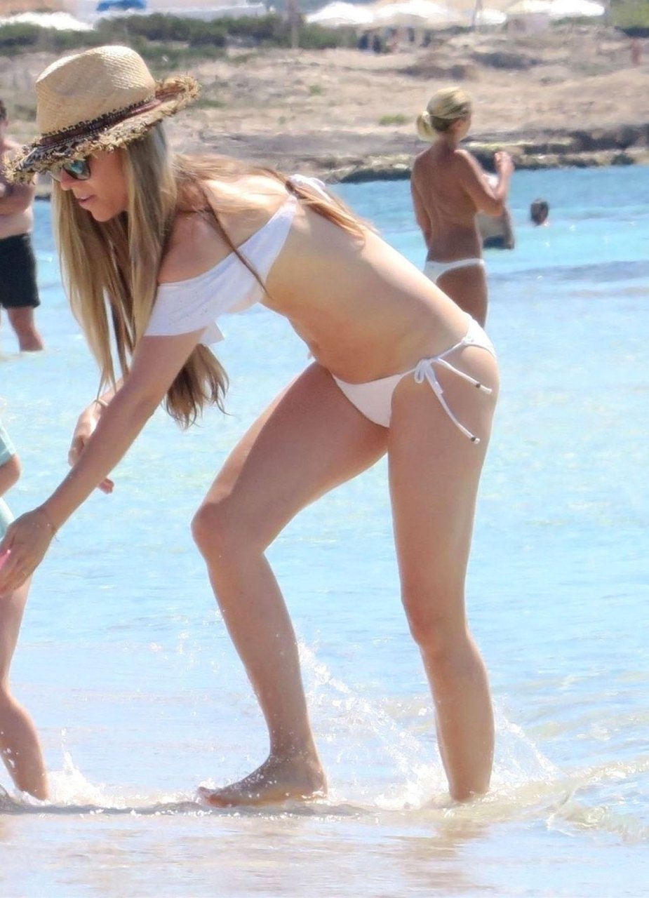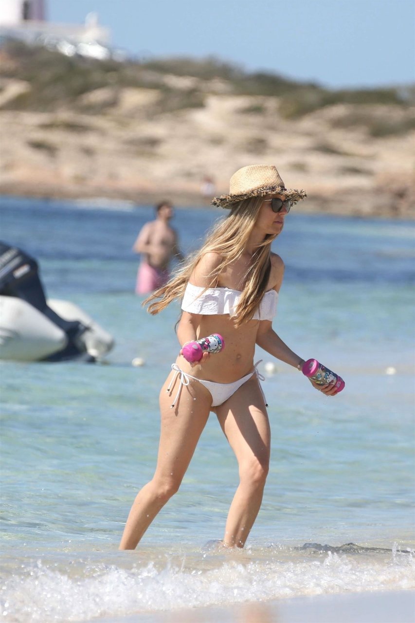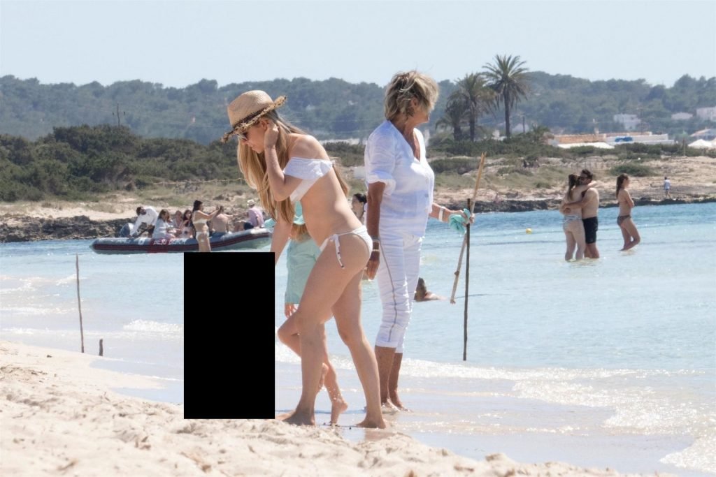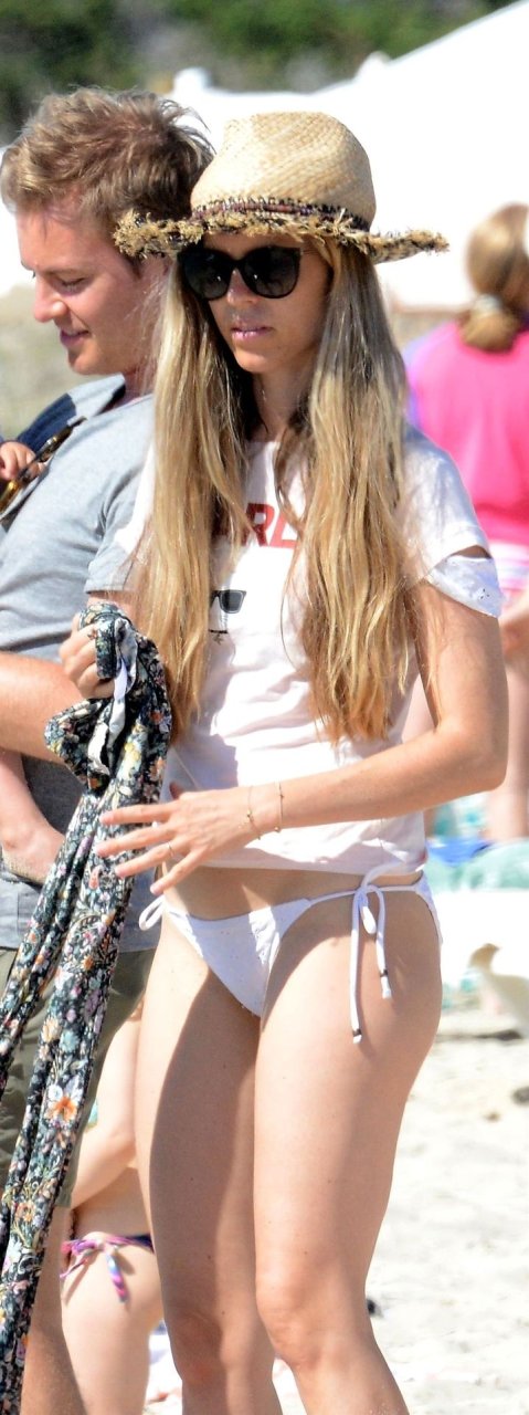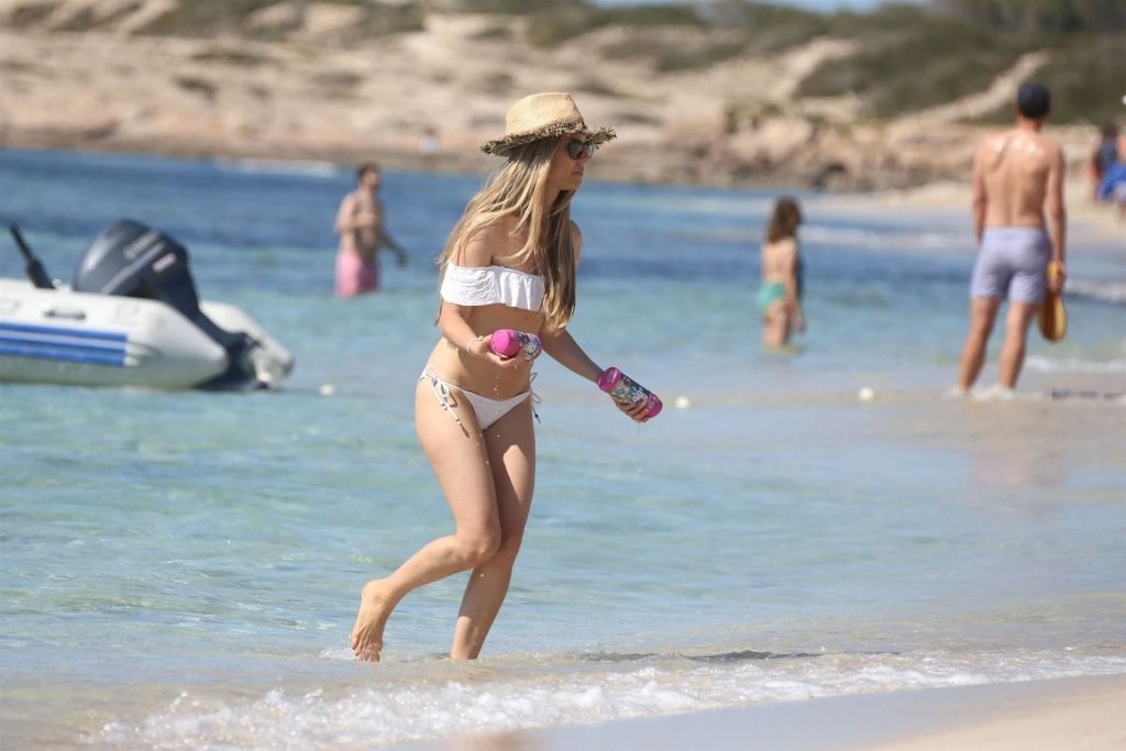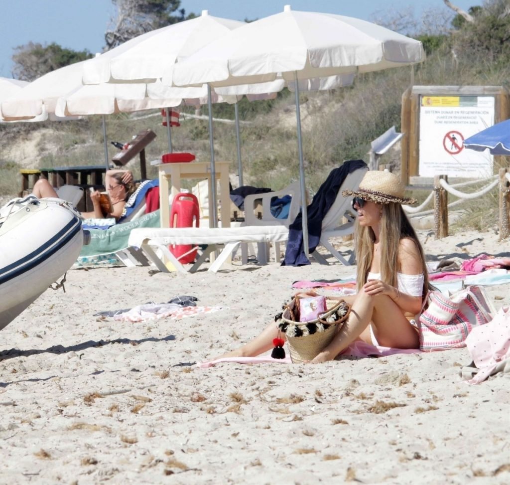 Бывшая гонщица Формулы-1 Нико Росберга Вивиан Сиболд демонстрирует своё пляжное тело в белом бикини, весело проводя время у моря на Форментере с семьёй, 31.05.2019.