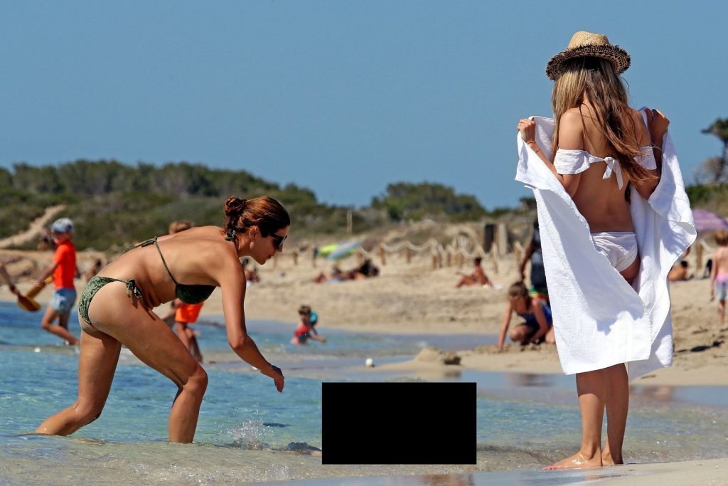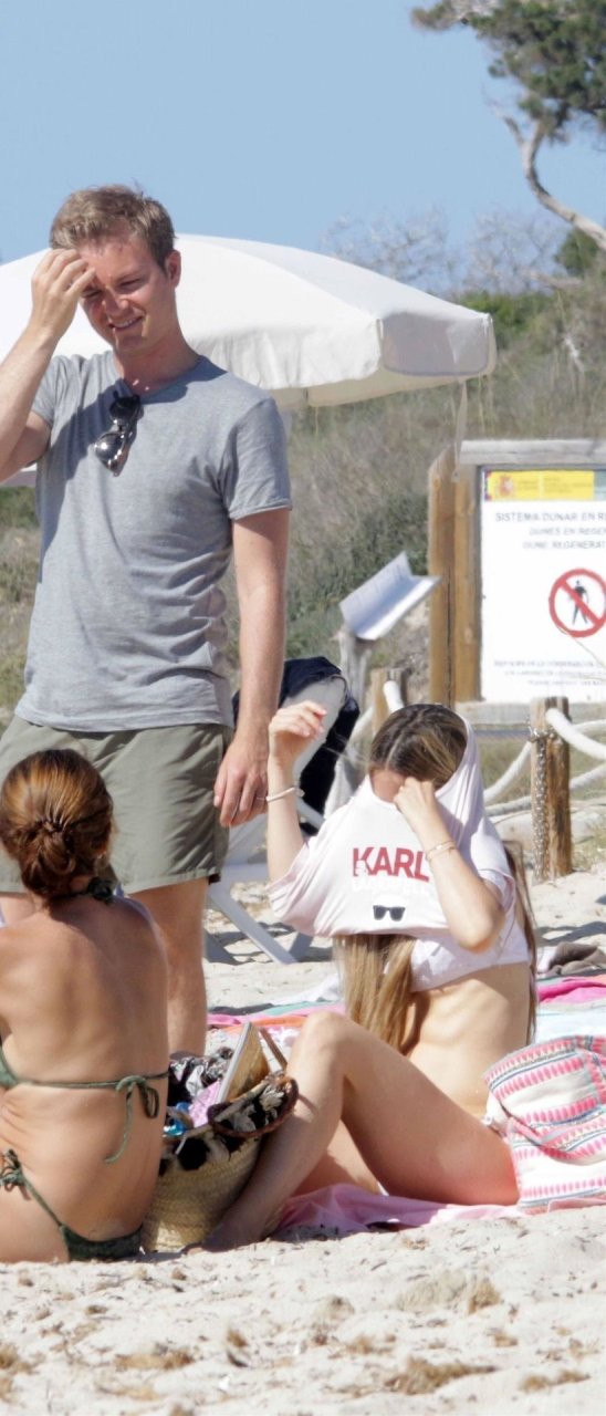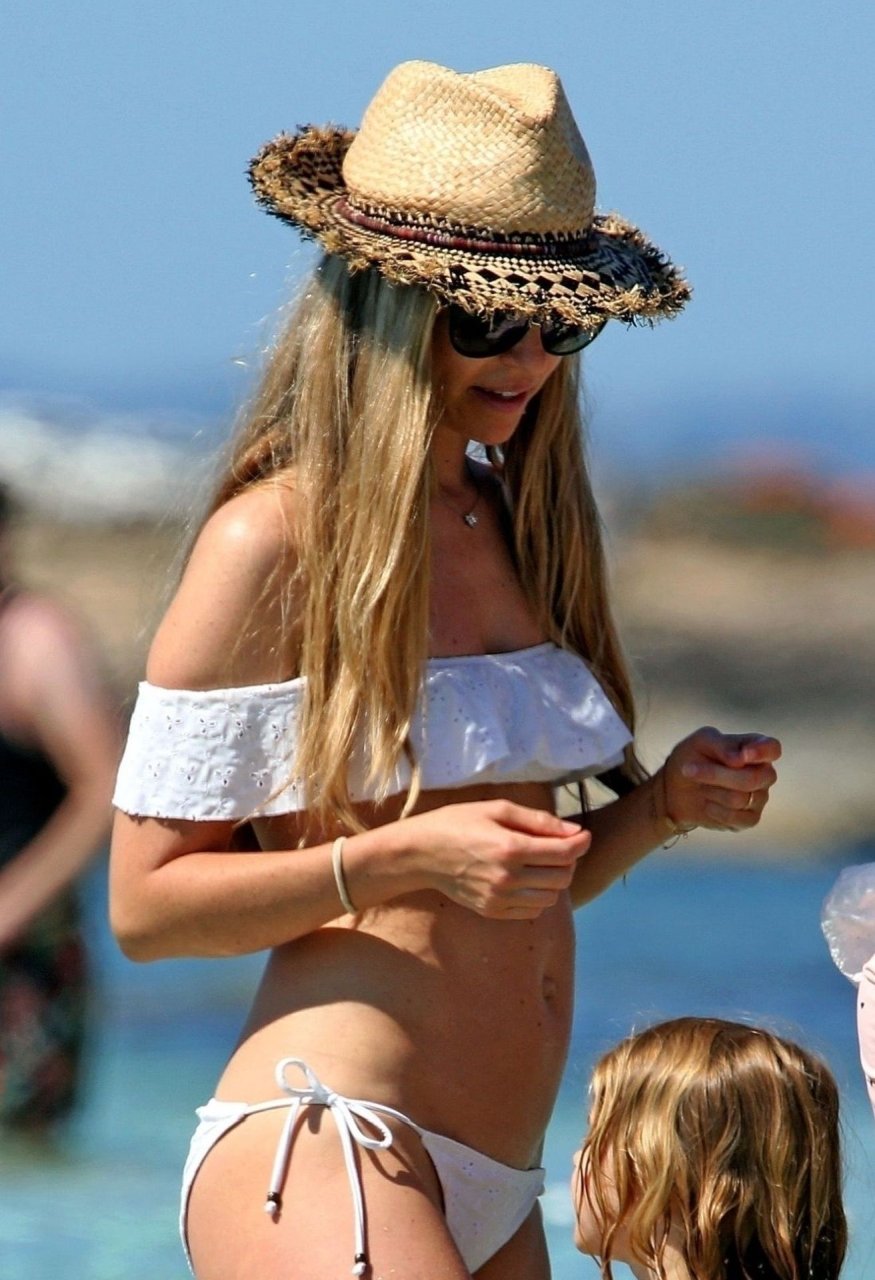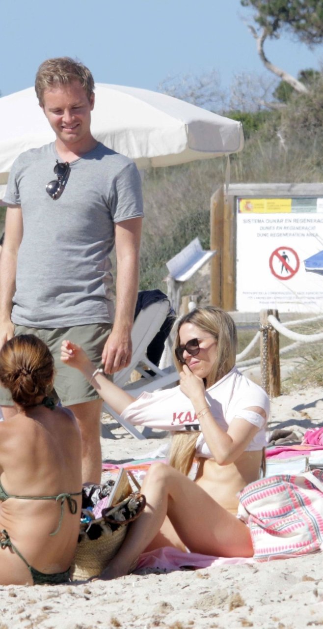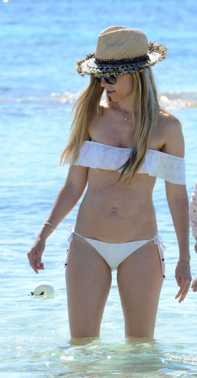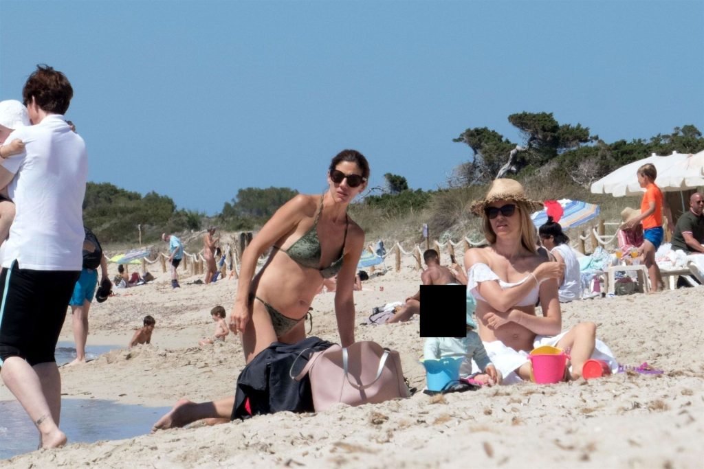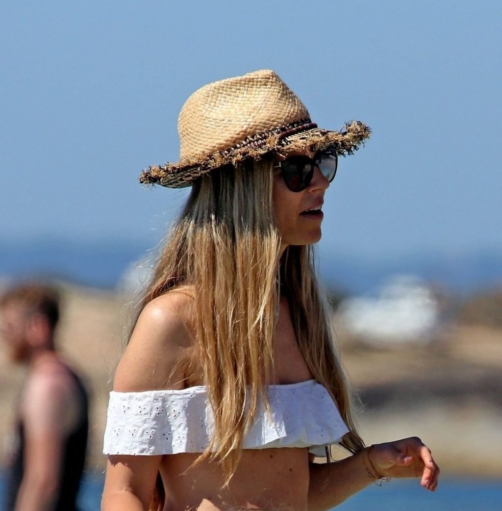 Бывшая гонщица Формулы-1 Нико Росберга Вивиан Сиболд демонстрирует своё пляжное тело в белом бикини, весело проводя время у моря на Форментере с семьёй, 31.05.2019.