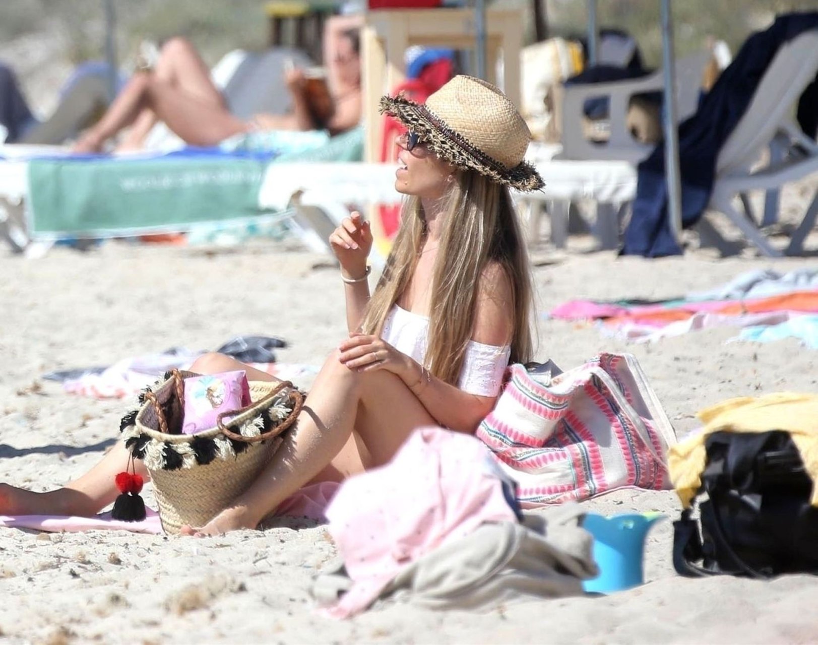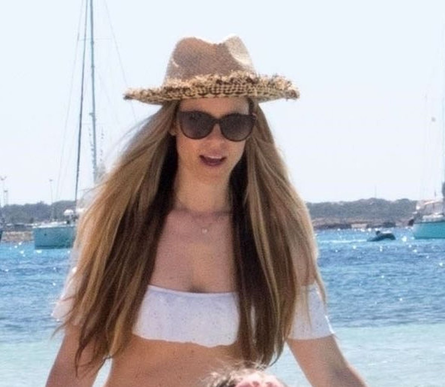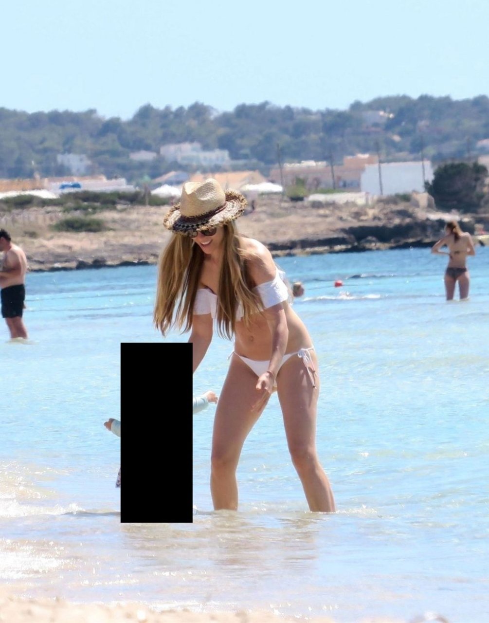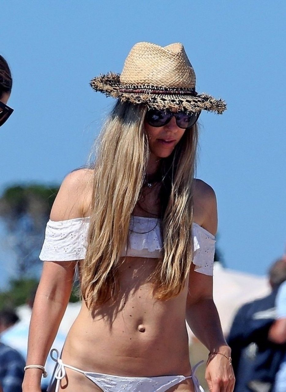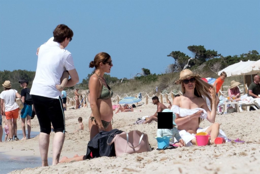 Бывшая гонщица Формулы-1 Нико Росберга Вивиан Сиболд демонстрирует своё пляжное тело в белом бикини, весело проводя время у моря на Форментере с семьёй, 31.05.2019.