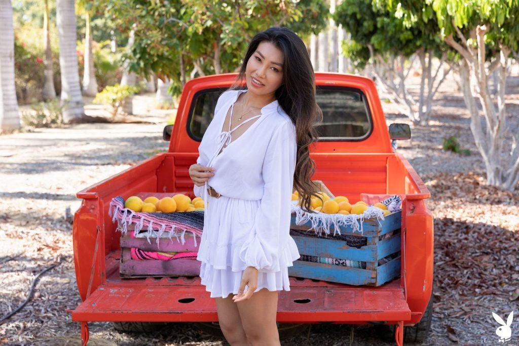Азиатская брюнетка Вивьен Ли позирует голой в новой фотосессии под названием «Свежевыжатая» для Playboy Plus (2019). Модель решила раздеться перед оранжевым пикапом. Многие поклонники с удовольствием купили бы у этой девушки пару килограммов фруктов!