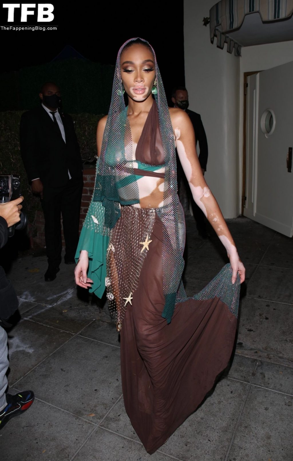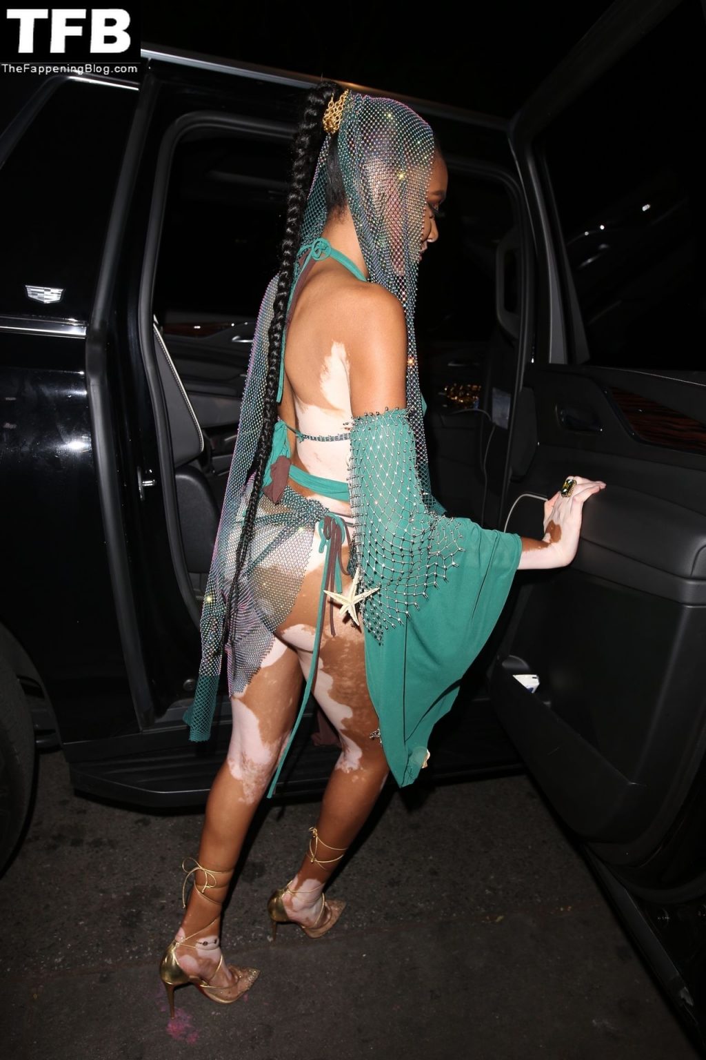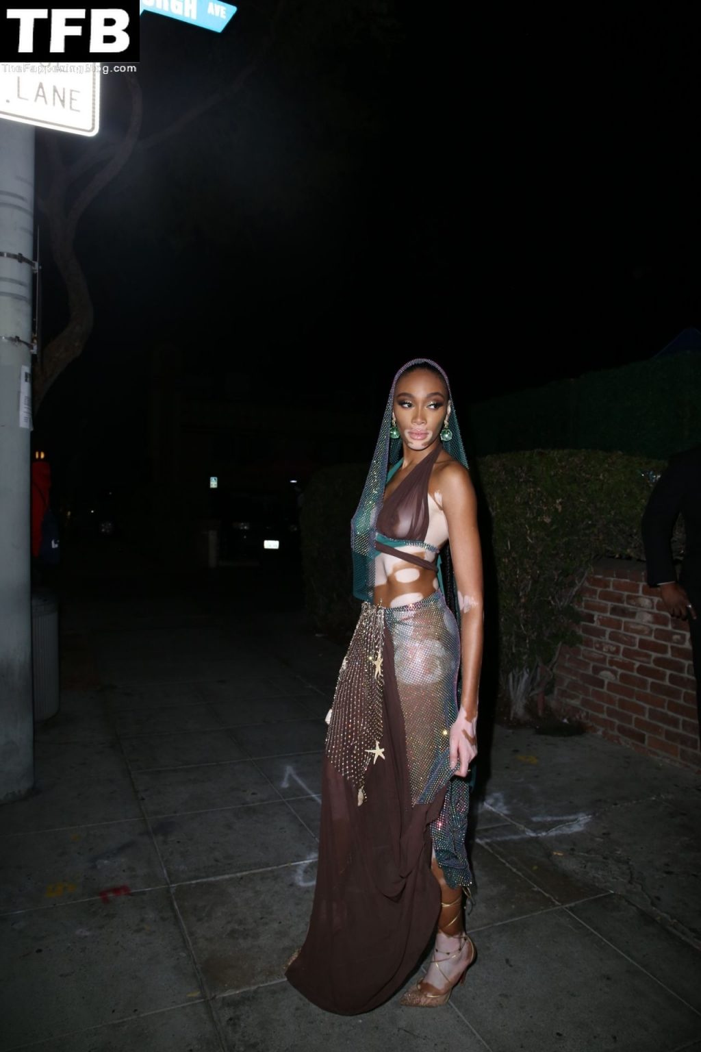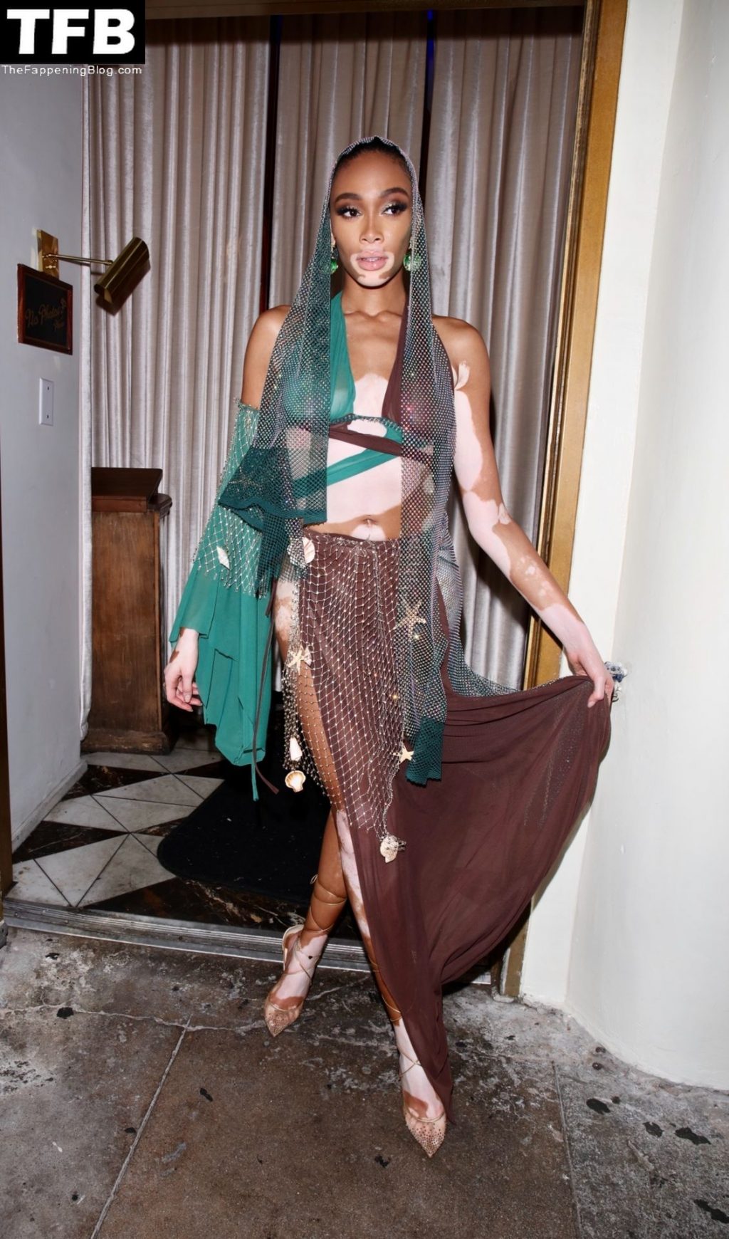 Винни Харлоу поражает в костюме на Хэллоуин на вечеринке по случаю дня рождения Doja Cat в Вест-Голливуде, 21.10.2021. Модель без бюстгальтера в прозрачном топе и юбке из сетки, оголяющей нижнюю часть, эффектно появляется на мероприятии.