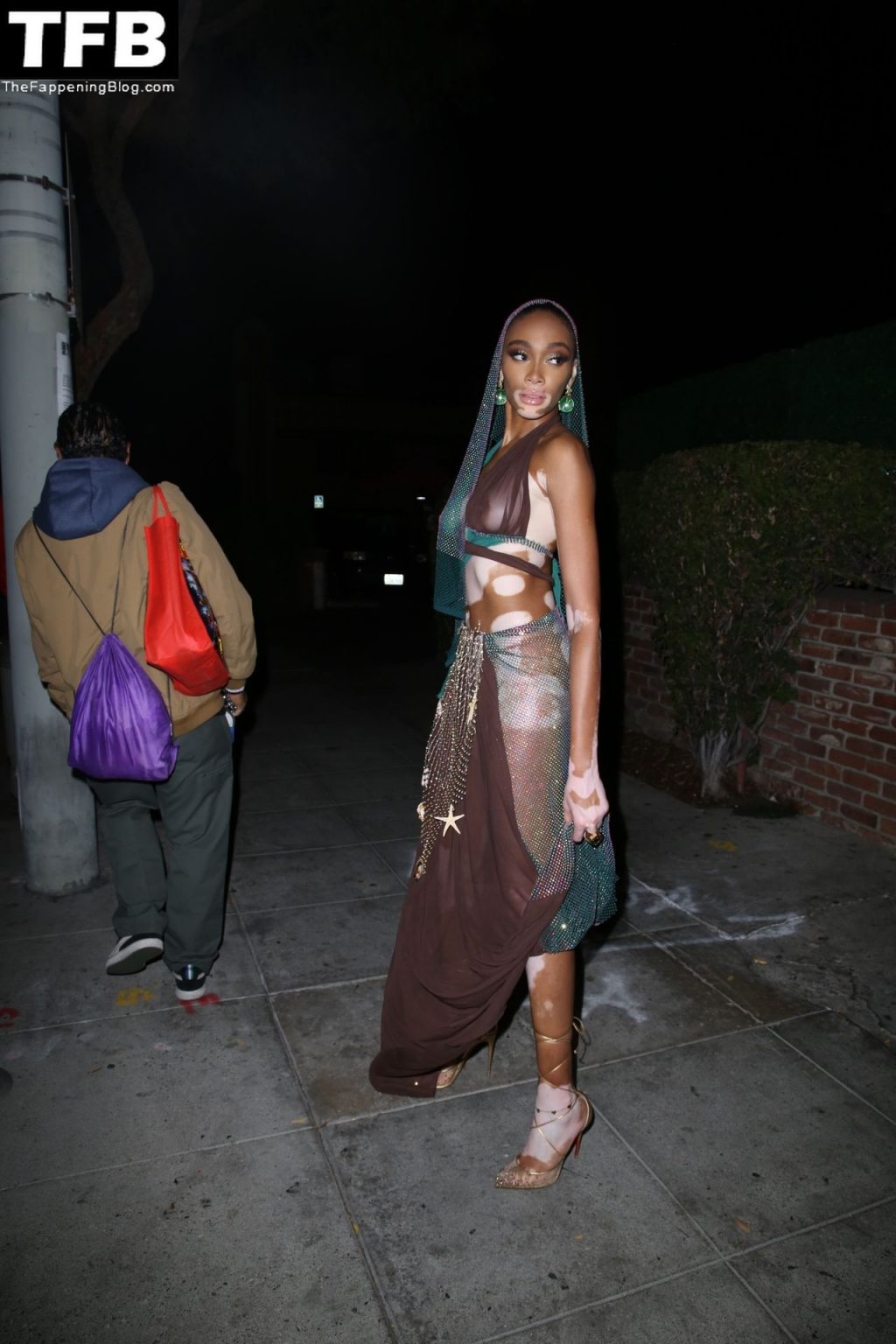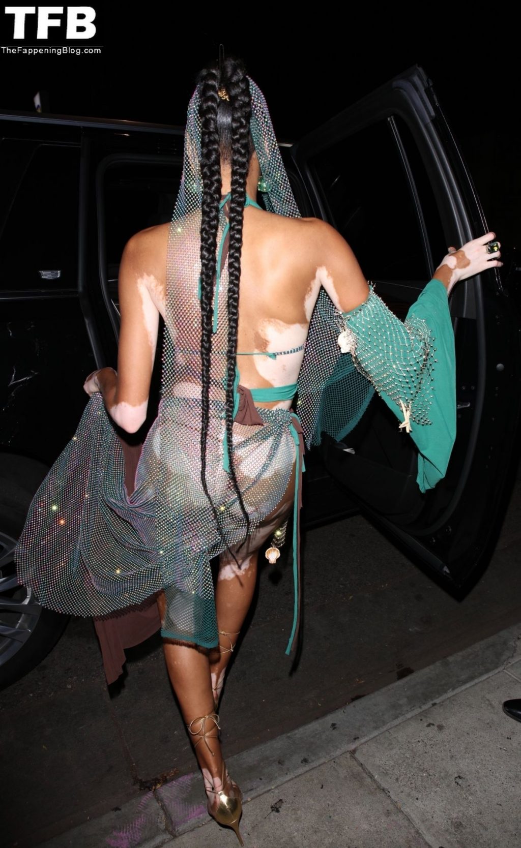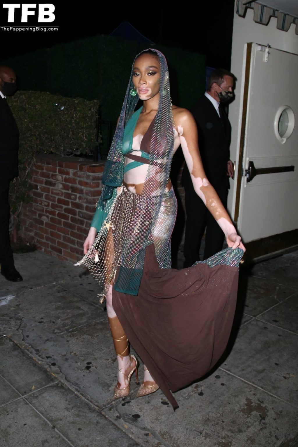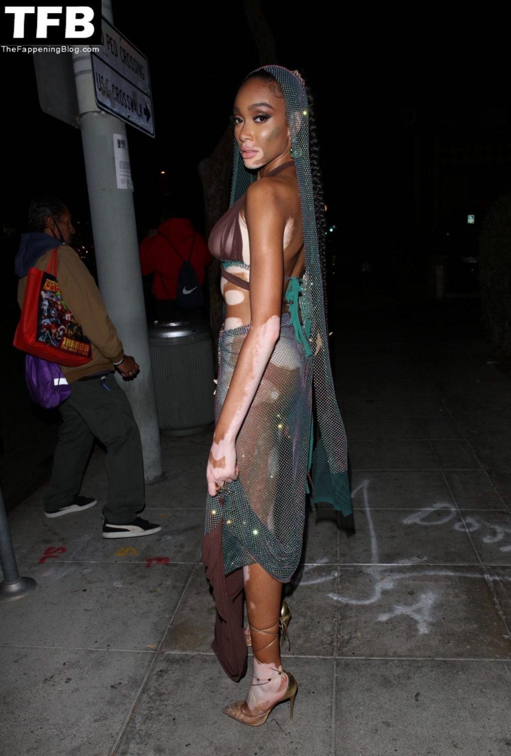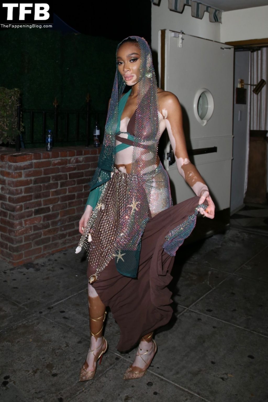 Винни Харлоу поражает в костюме на Хэллоуин на вечеринке по случаю дня рождения Doja Cat в Вест-Голливуде, 21.10.2021. Модель без бюстгальтера в прозрачном топе и юбке из сетки, оголяющей нижнюю часть, эффектно появляется на мероприятии.