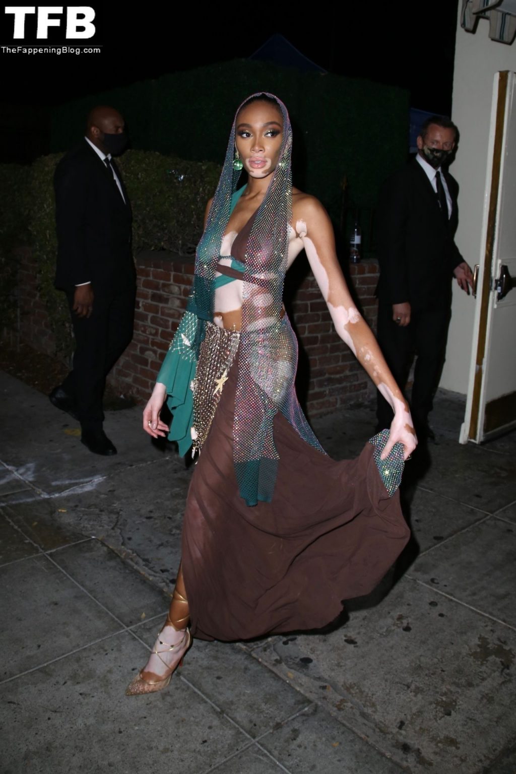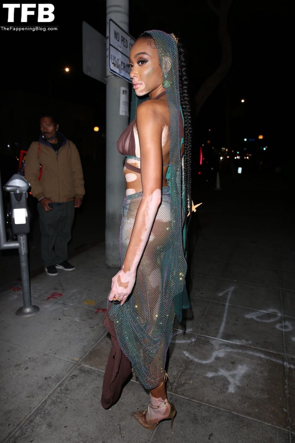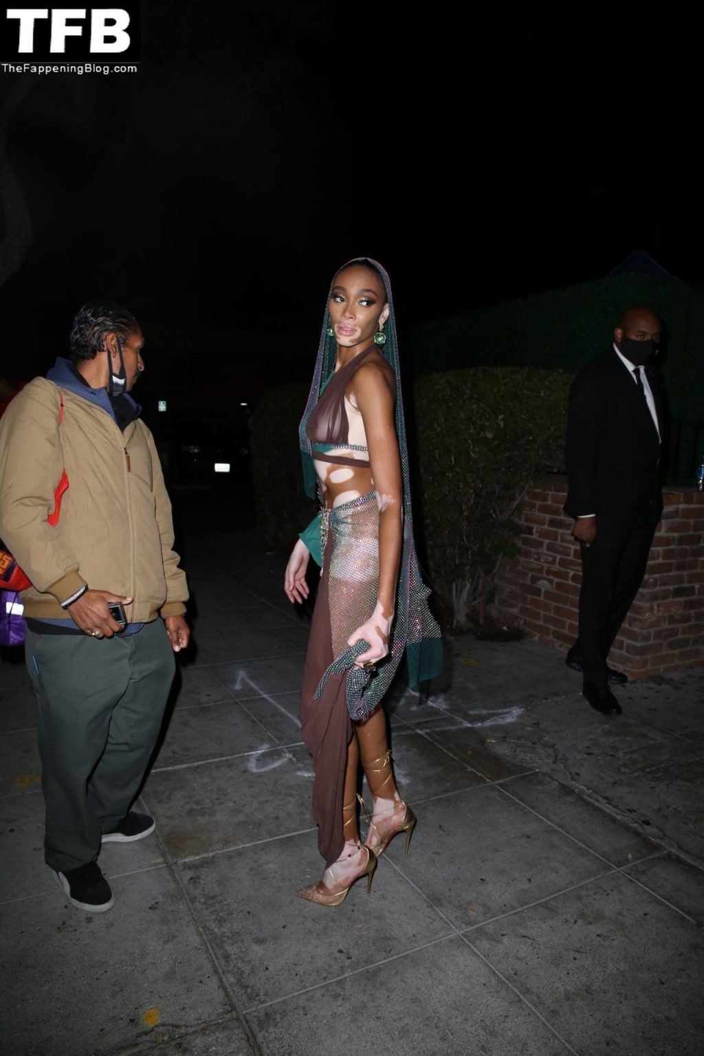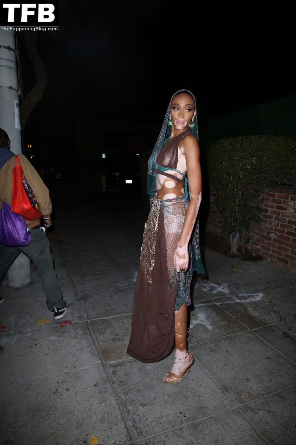 Винни Харлоу поражает в костюме на Хэллоуин на вечеринке по случаю дня рождения Doja Cat в Вест-Голливуде, 21.10.2021. Модель без бюстгальтера в прозрачном топе и юбке из сетки, оголяющей нижнюю часть, эффектно появляется на мероприятии.