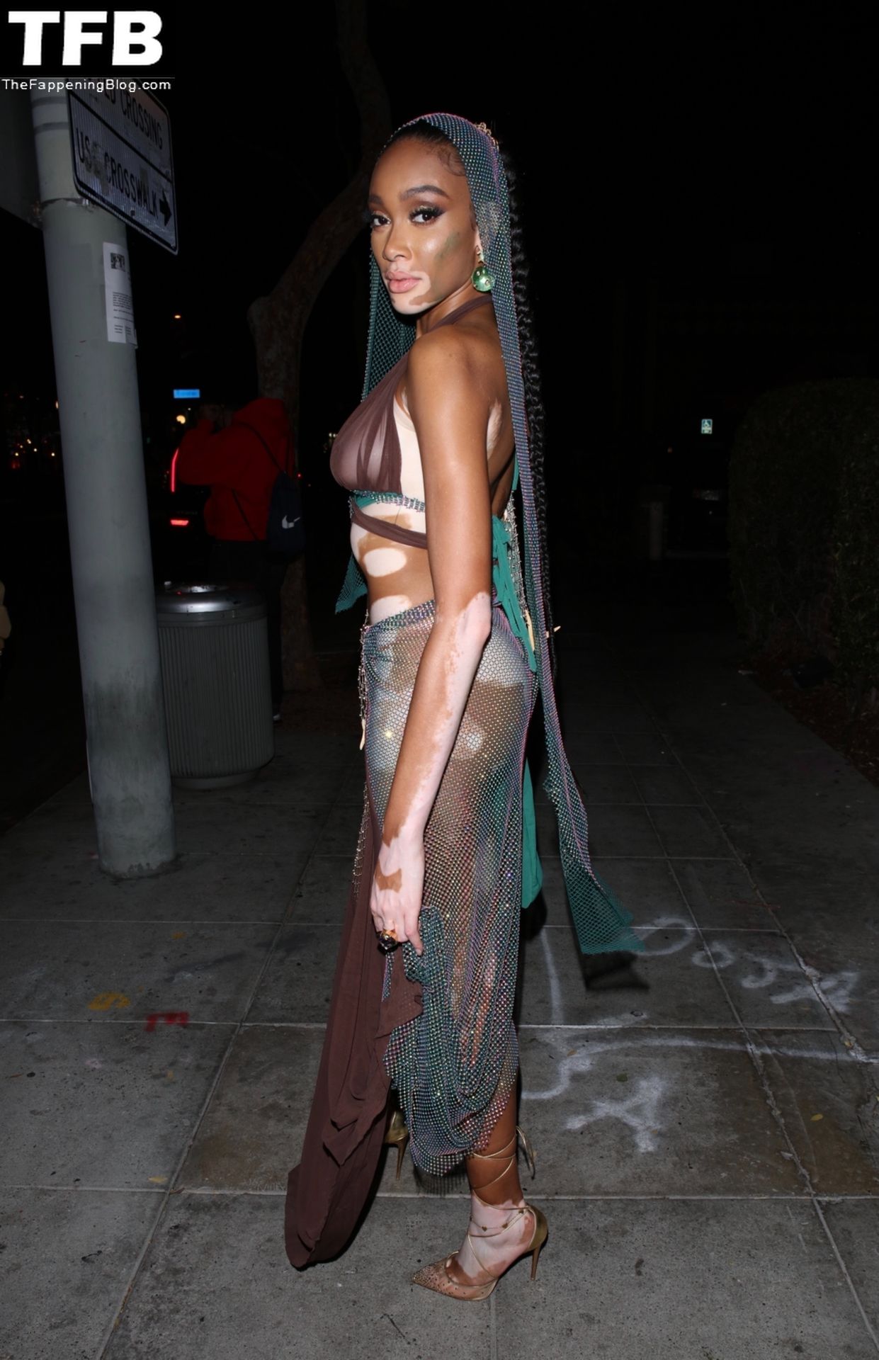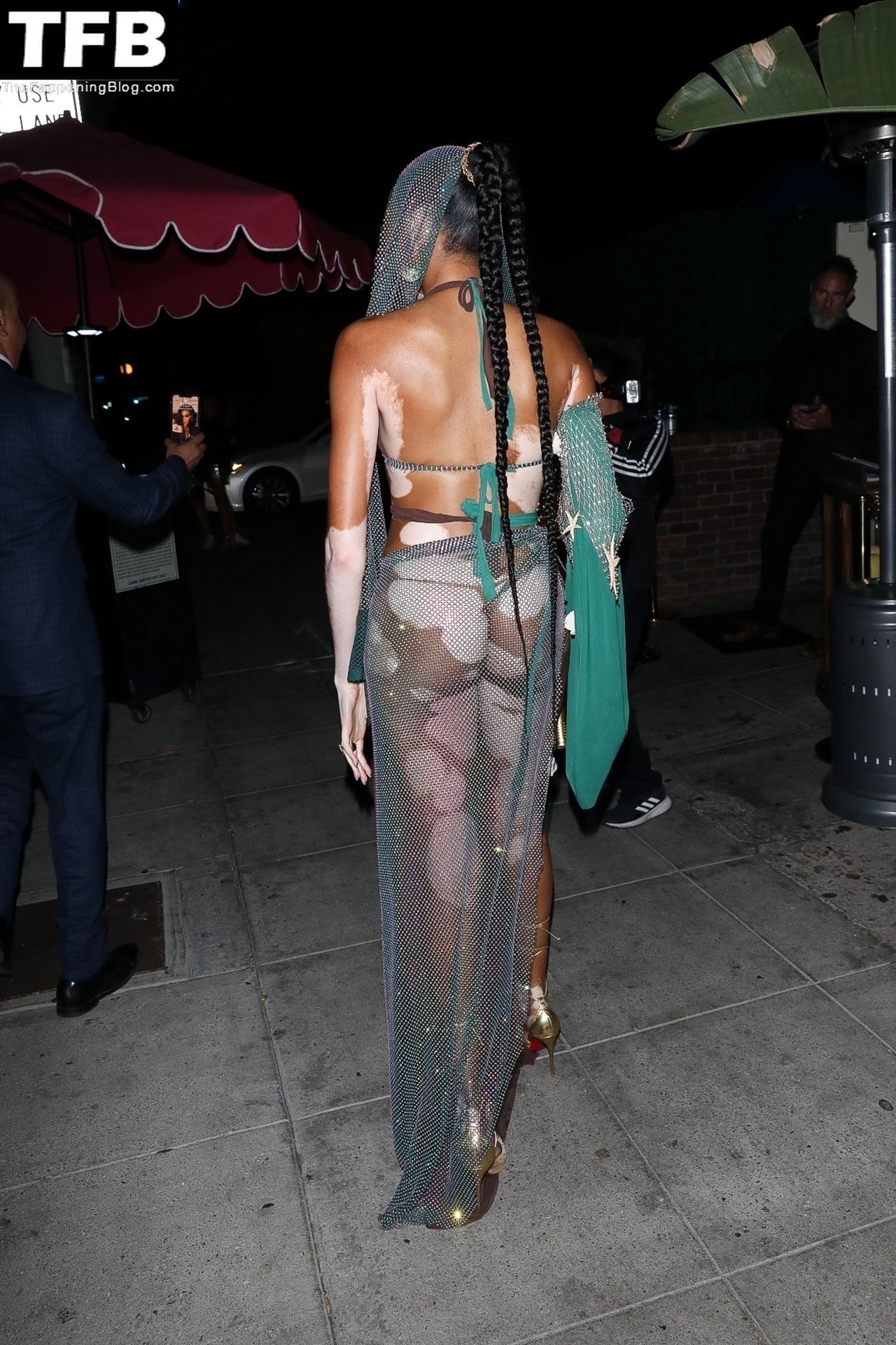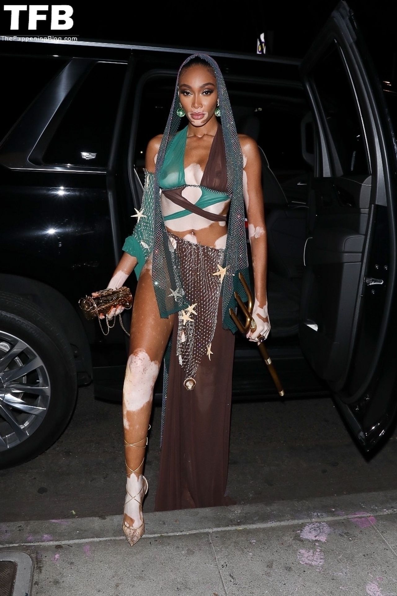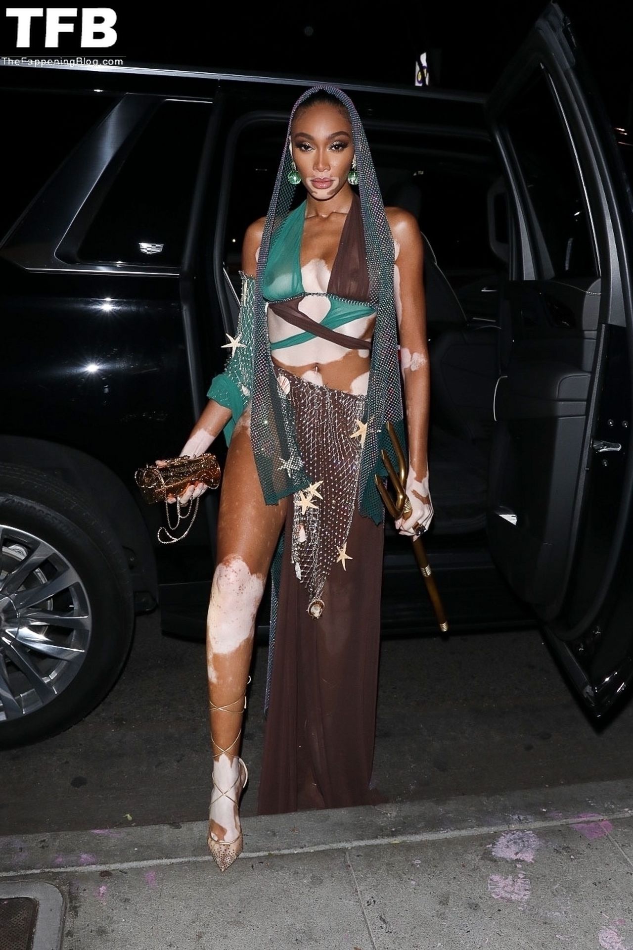 Винни Харлоу поражает в костюме на Хэллоуин на вечеринке по случаю дня рождения Doja Cat в Вест-Голливуде, 21.10.2021. Модель без бюстгальтера в прозрачном топе и юбке из сетки, оголяющей нижнюю часть, эффектно появляется на мероприятии.