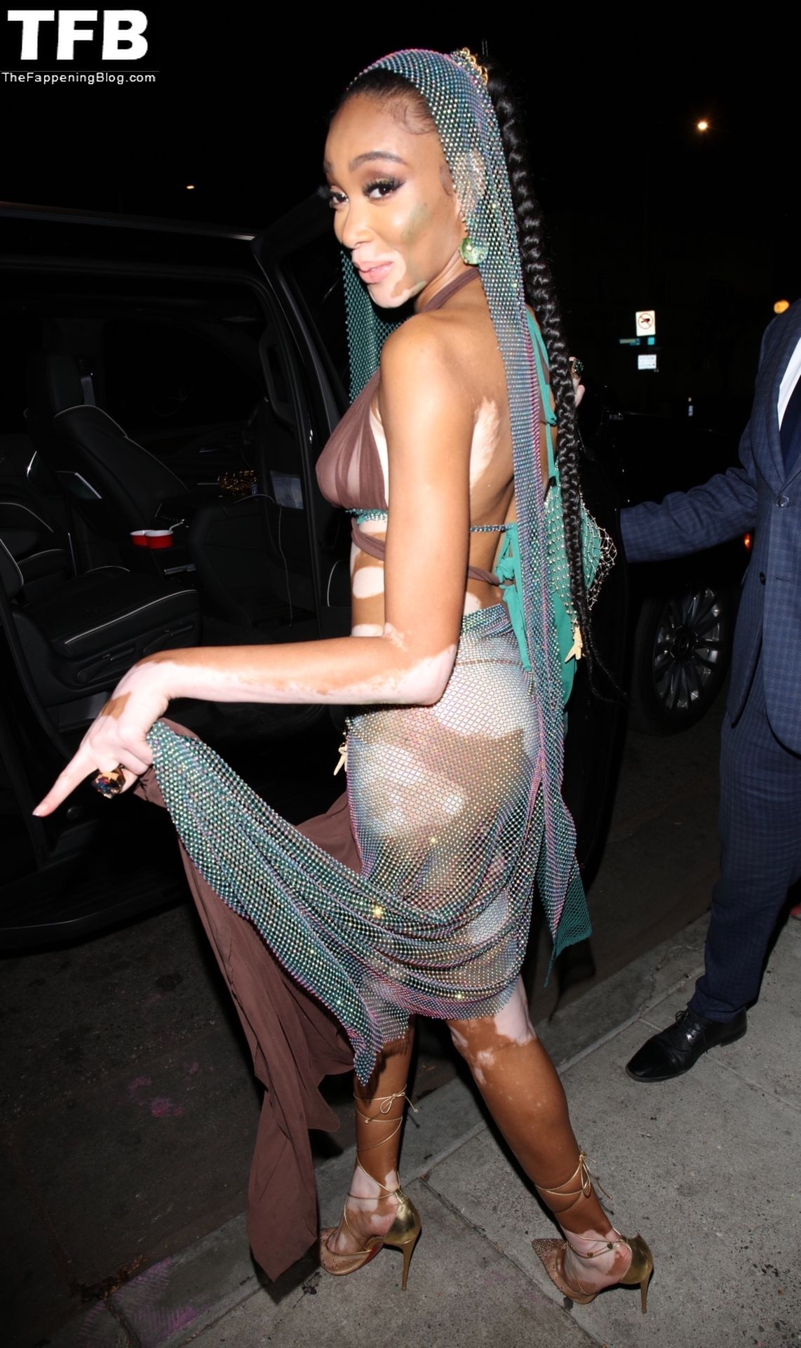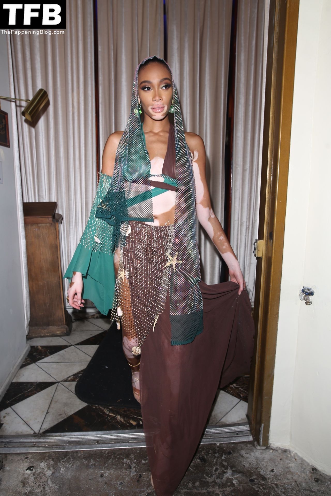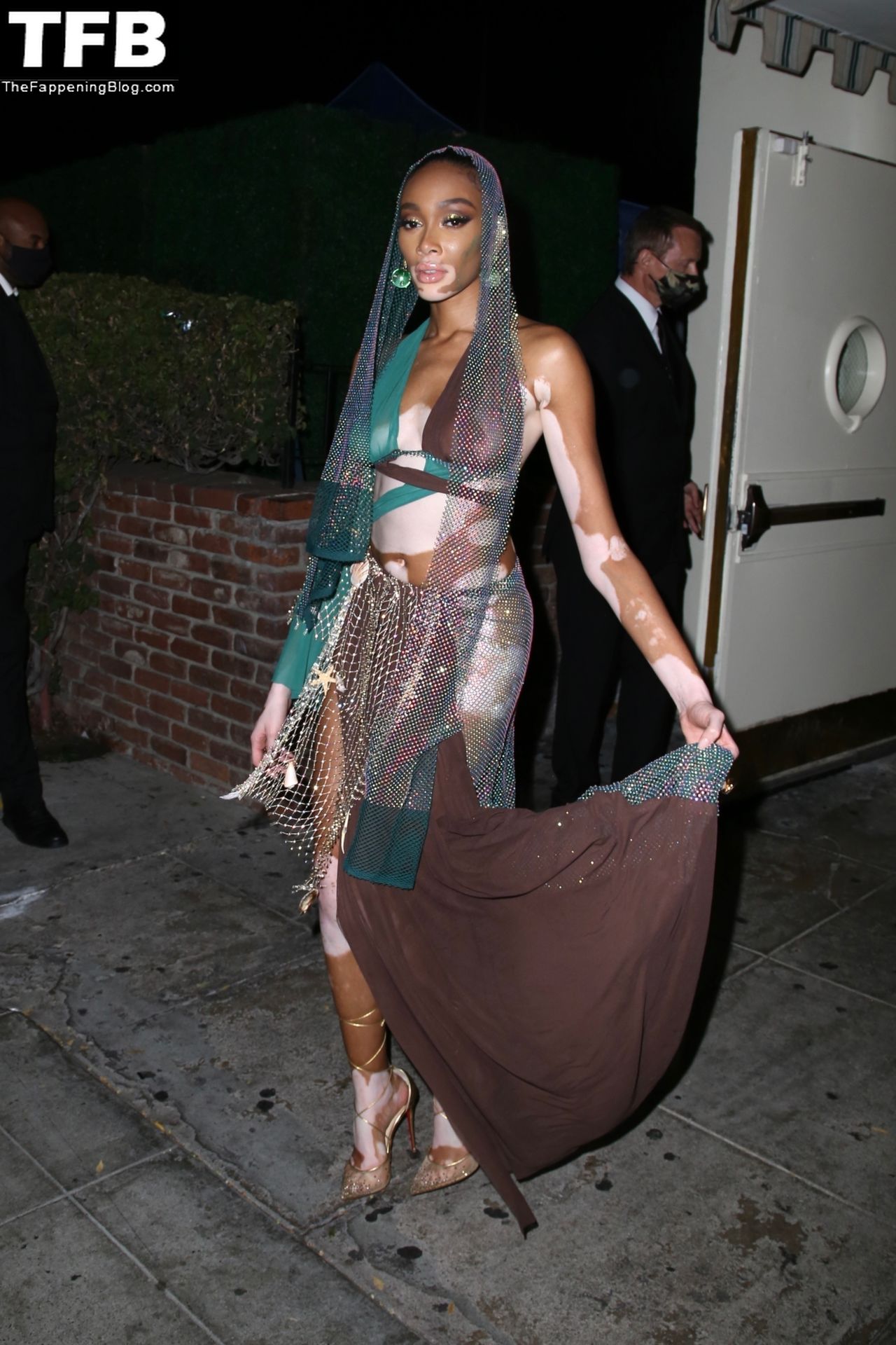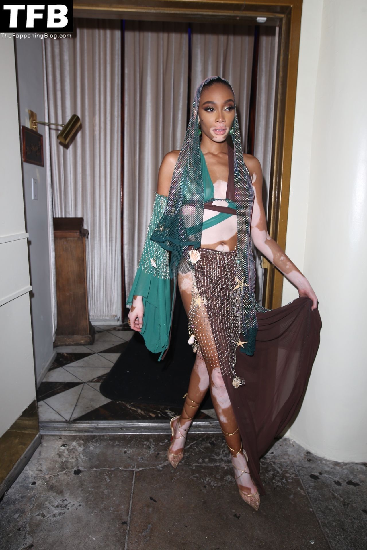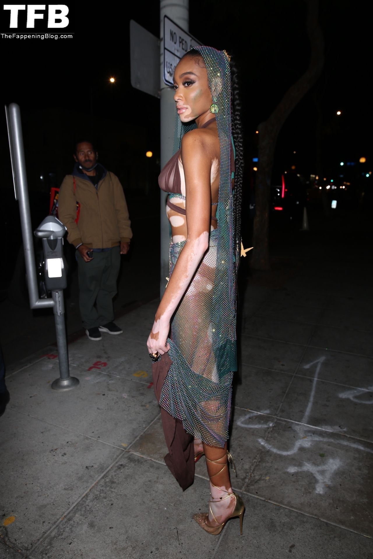Винни Харлоу поражает в костюме на Хэллоуин на вечеринке по случаю дня рождения Doja Cat в Вест-Голливуде, 21.10.2021. Модель без бюстгальтера в прозрачном топе и юбке из сетки, оголяющей нижнюю часть, эффектно появляется на мероприятии.