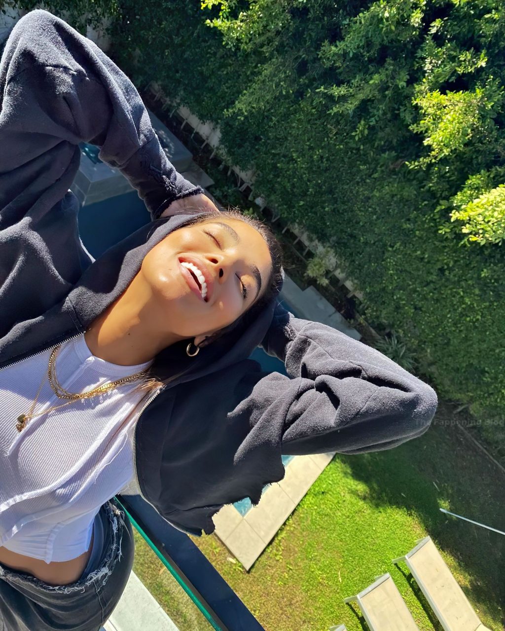 Модель Йованна Вентура демонстрирует свою сексуальную фигуру, грудь и стройные ноги, позируя для FWRD в белой футболке без бюстгальтера – Instagram, 11/05/2020.