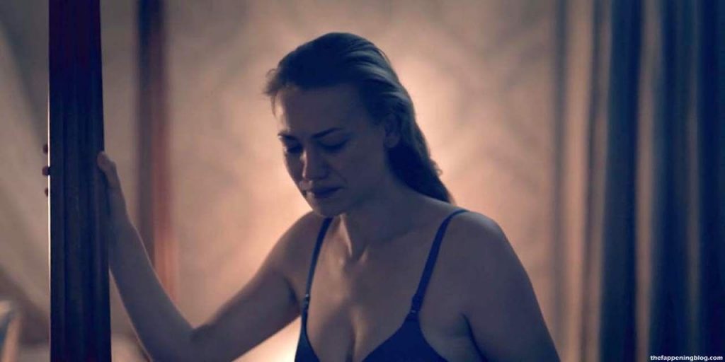 Sexy actress Yvonne Strahovski’s ass, was seen in her new scene from the popular series ‘The Handmaid’s Tale’, where she showed her butt bruises made by her aggressive husband in Gilead. Yvonne is crying and stripping down her wife’s gown, revealing her sexy body in lingerie!