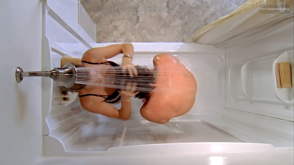 Yvonne Strahovski is in a wet sexy scene that shows her perfect body. She was in the shower with her boyfriend, her black bra was soaking wet, and her boobs stand out nicely. Buttocks are outlined in wet black lingerie. So we have a nice view of her sexy body. Watch Yvonne Strahovski in a scene under the shower.