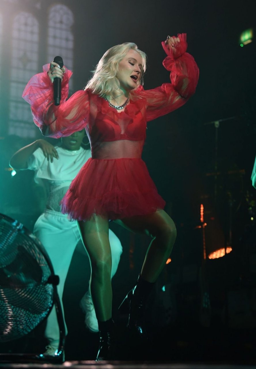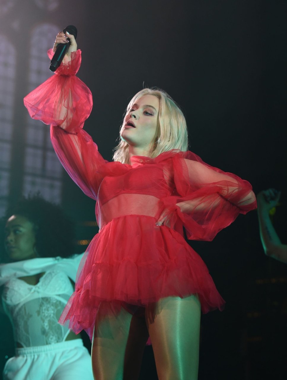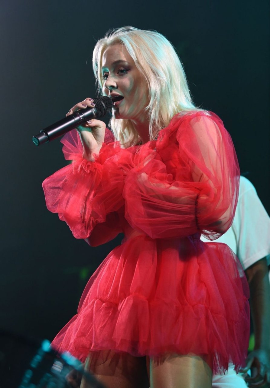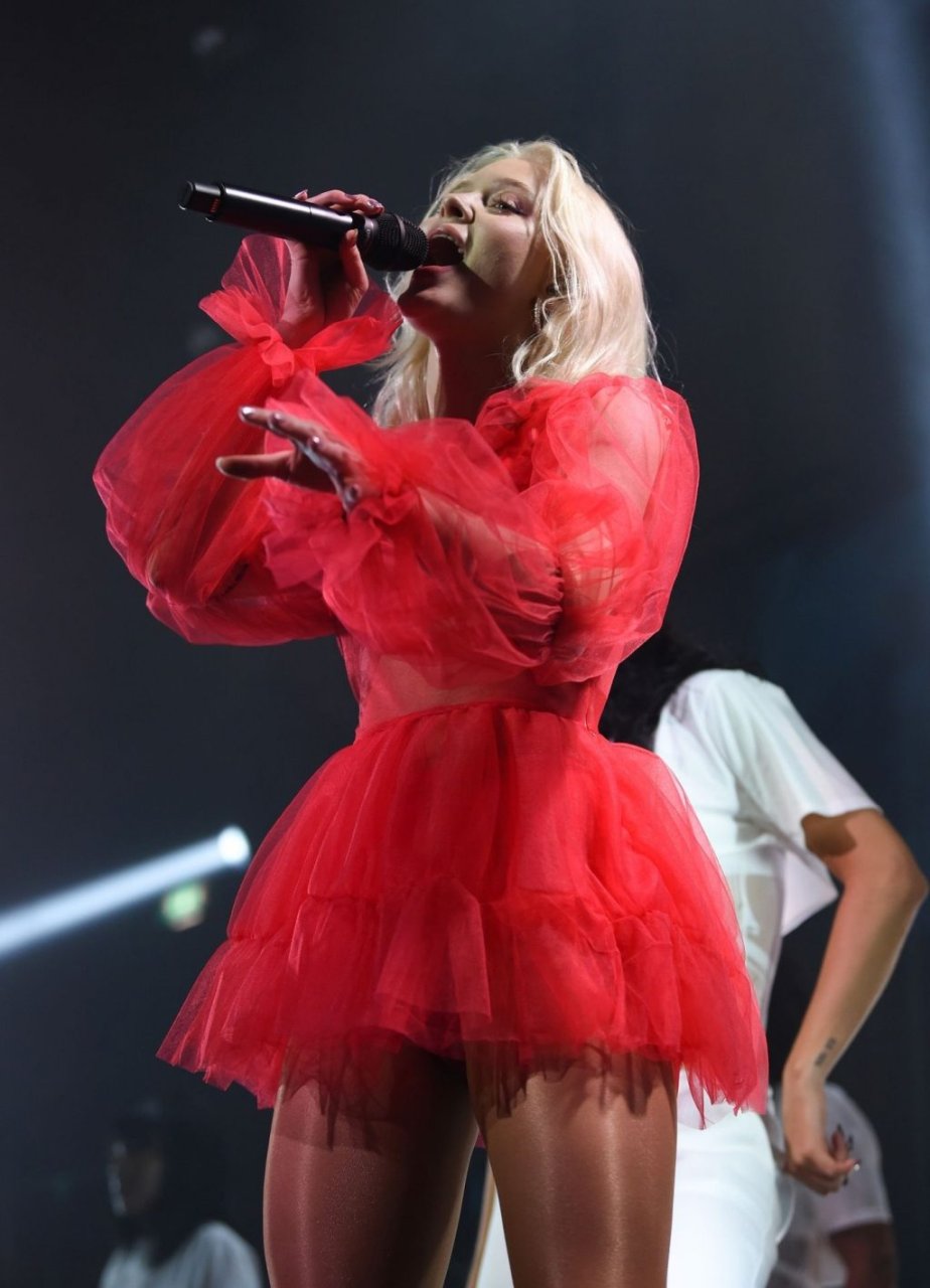 Шведская певица Зара Ларссон выступила в красном платье на концерте в The Albert Halls в Манчестере, 21.05.2019.