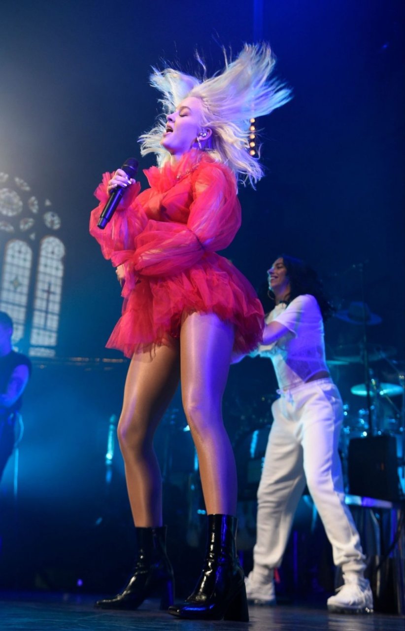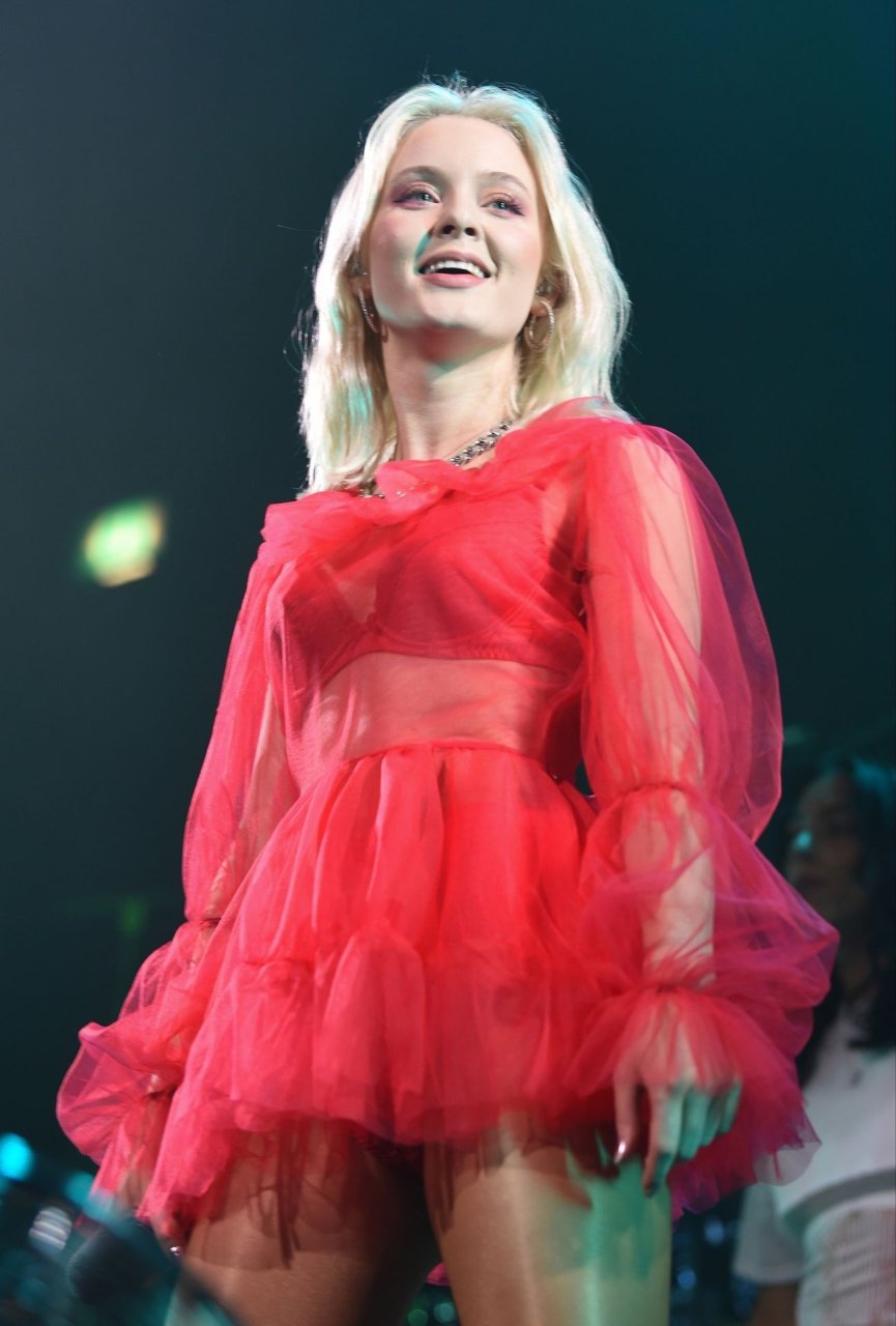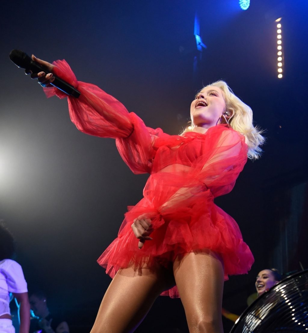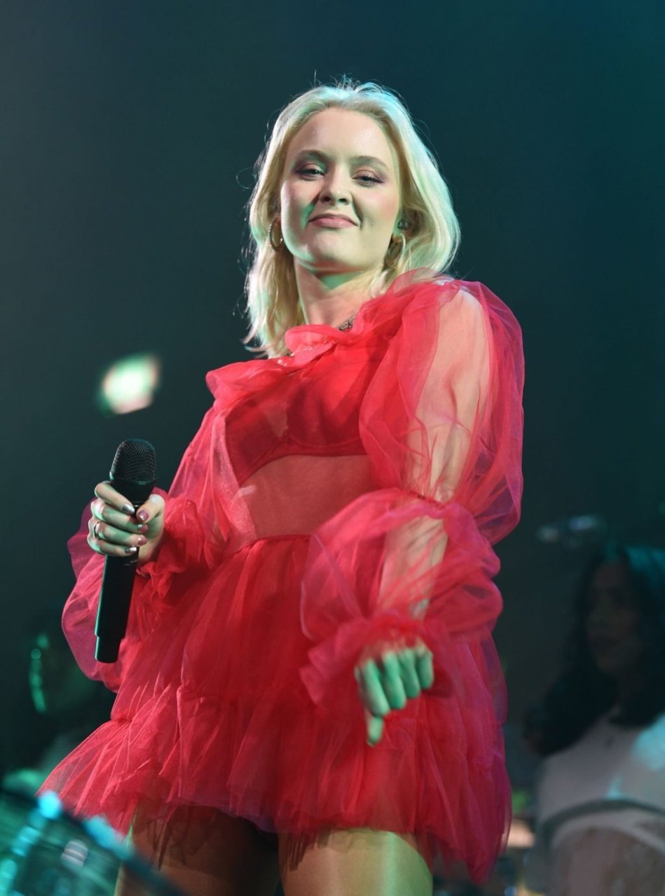 Шведская певица Зара Ларссон выступила в красном платье на концерте в The Albert Halls в Манчестере, 21.05.2019.