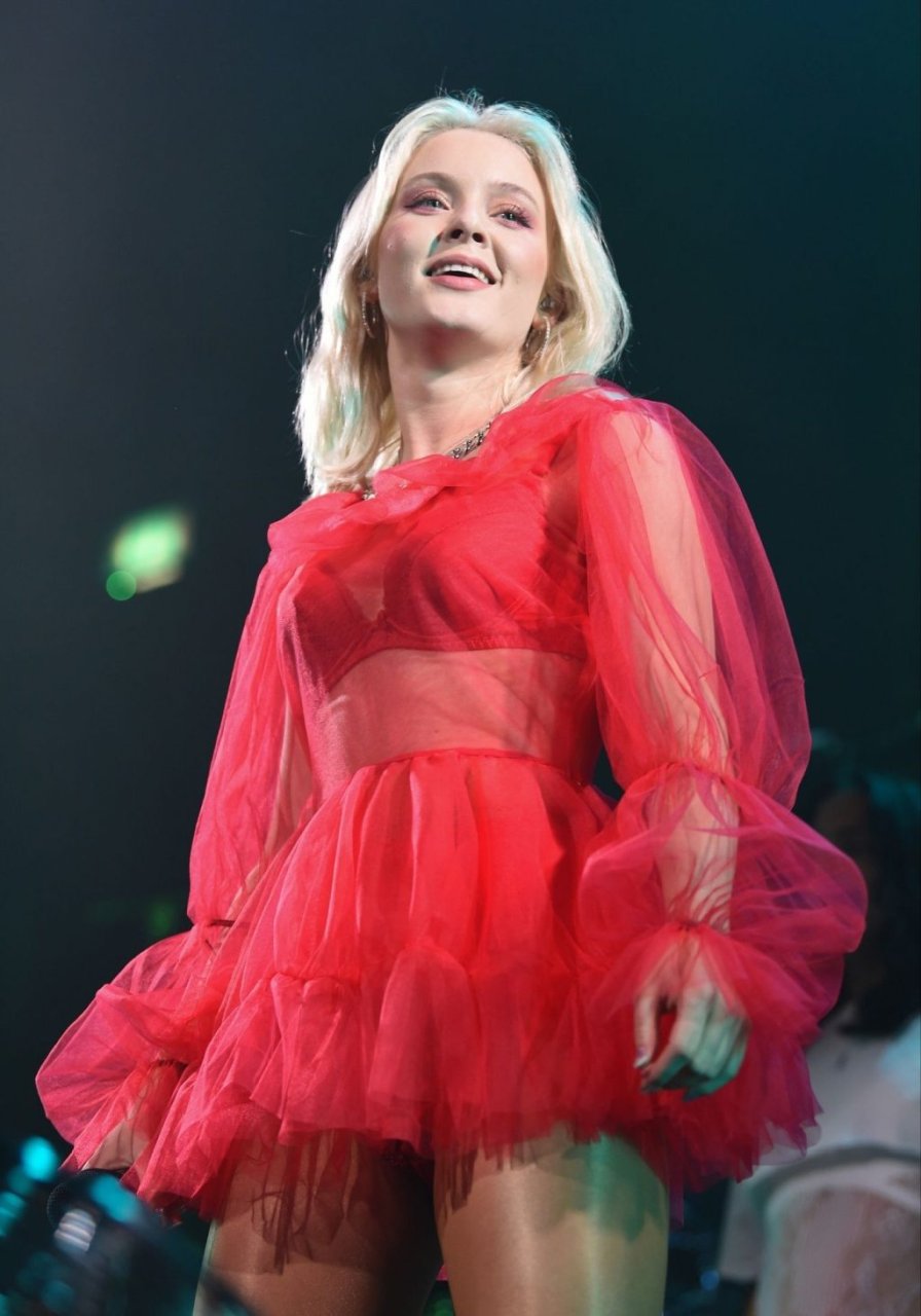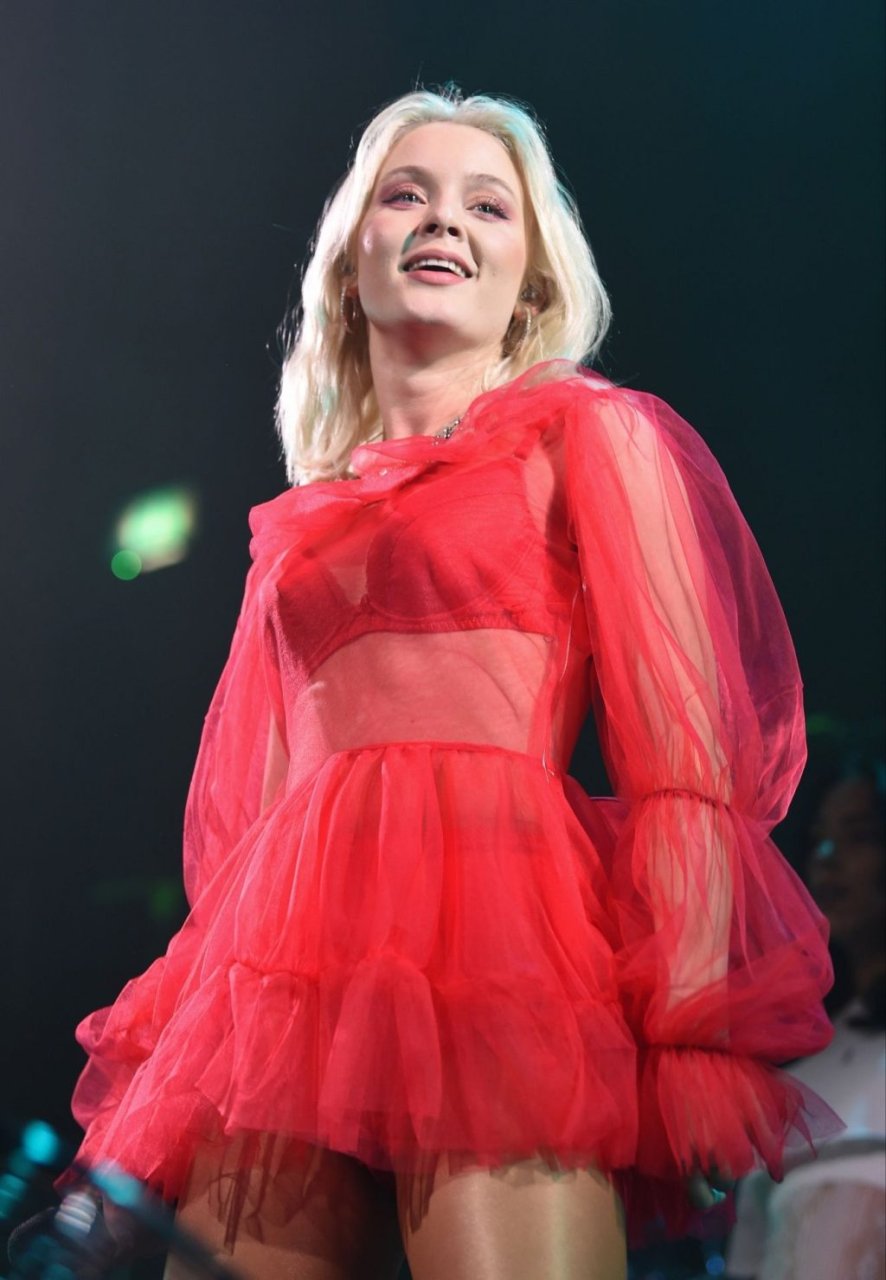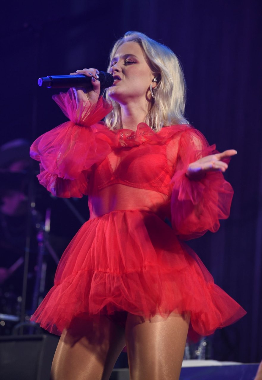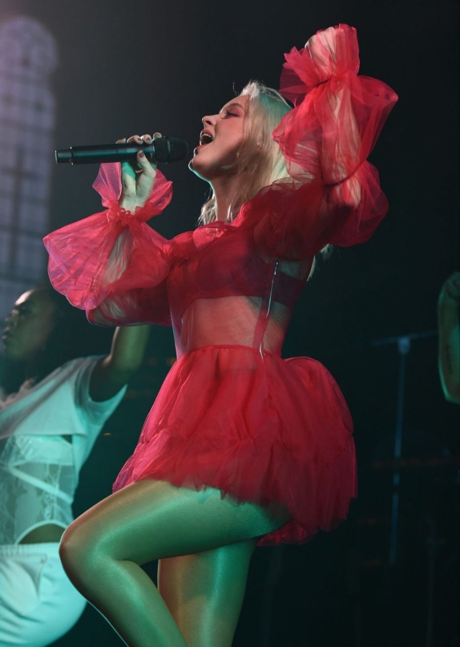 Шведская певица Зара Ларссон выступила в красном платье на концерте в The Albert Halls в Манчестере, 21.05.2019.