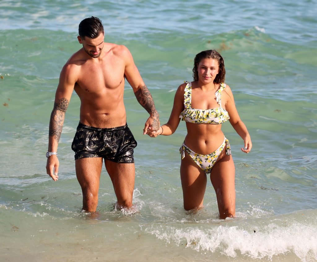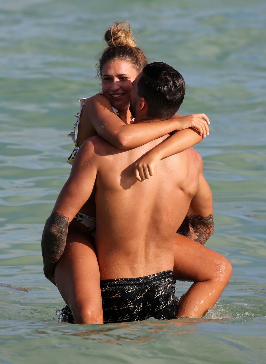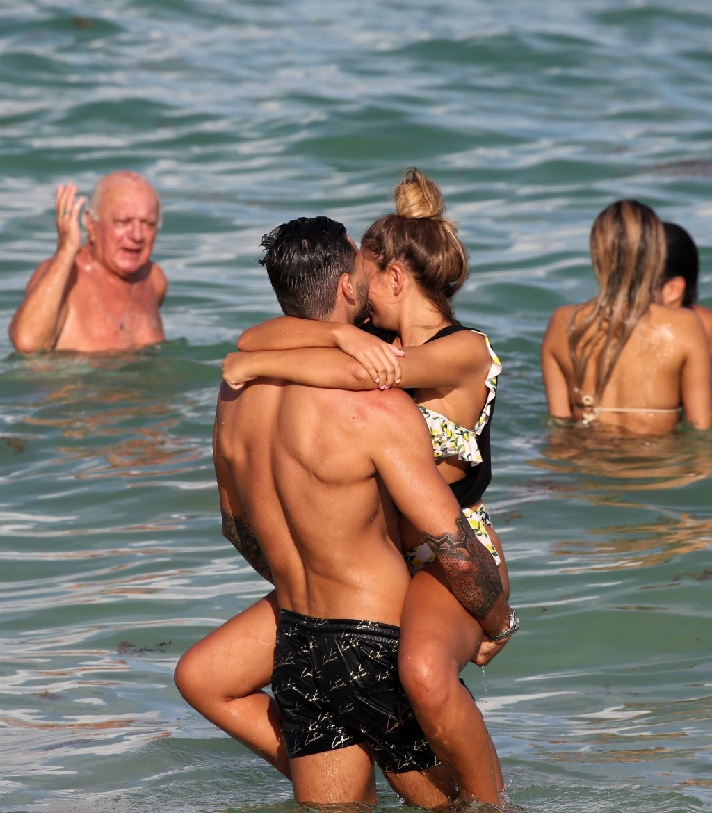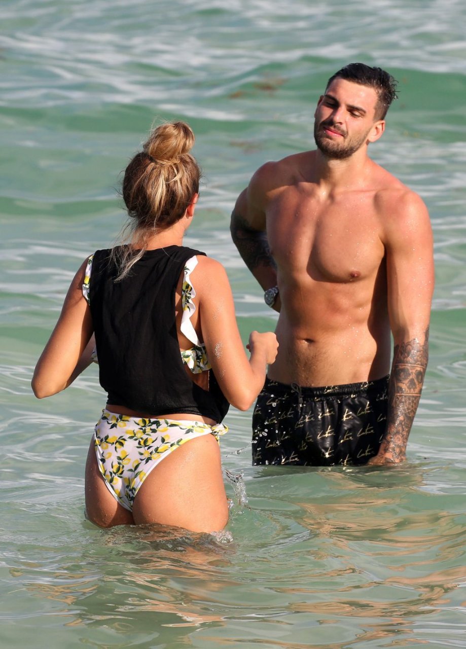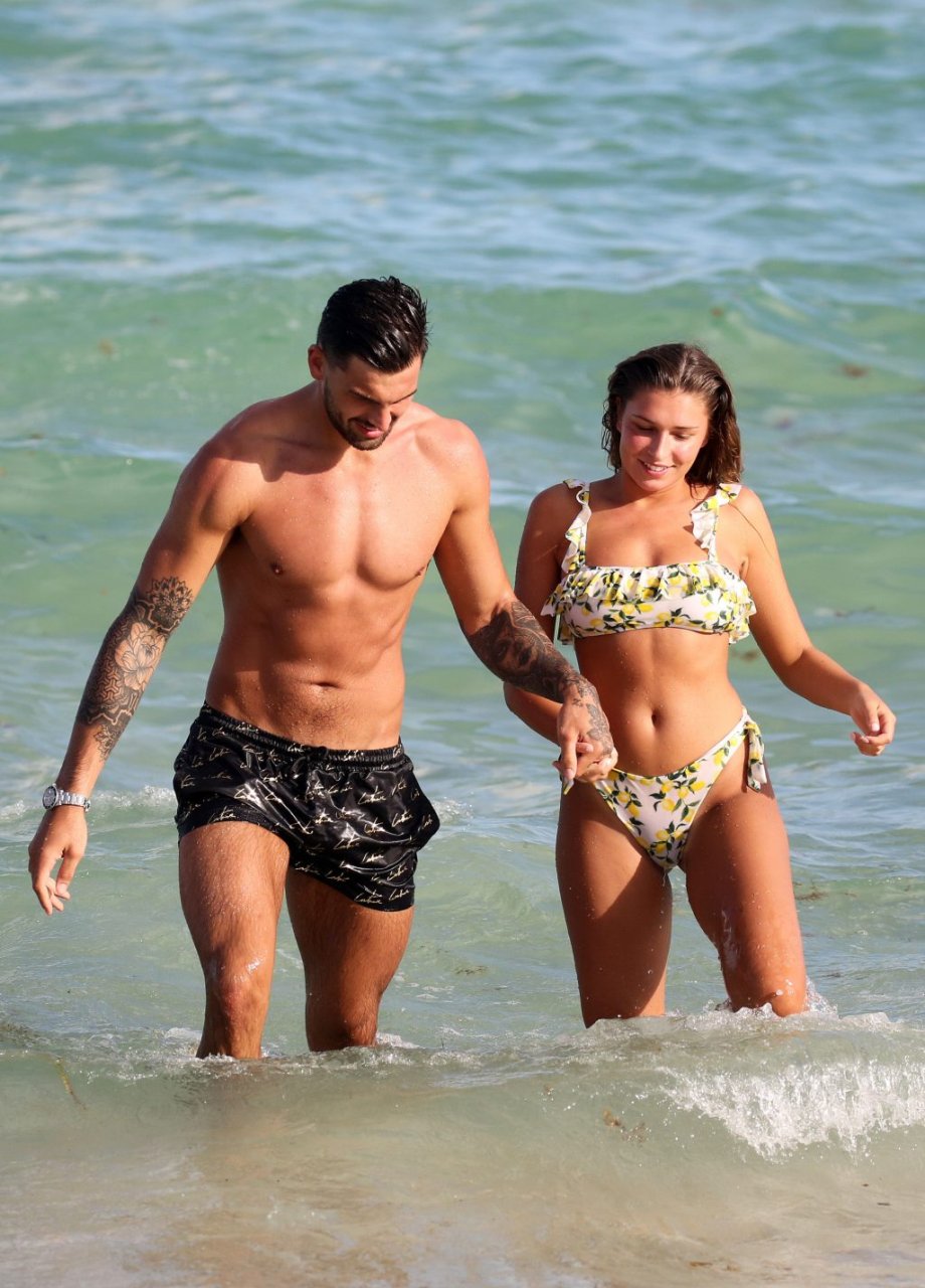 Зара Макдермотт (21) из шоу Love Island и Адам Коллард демонстрируют свои пляжные тела и проявляют больше публичных проявлений чувств на пляже в Майами-Бич, 11/08/2018.