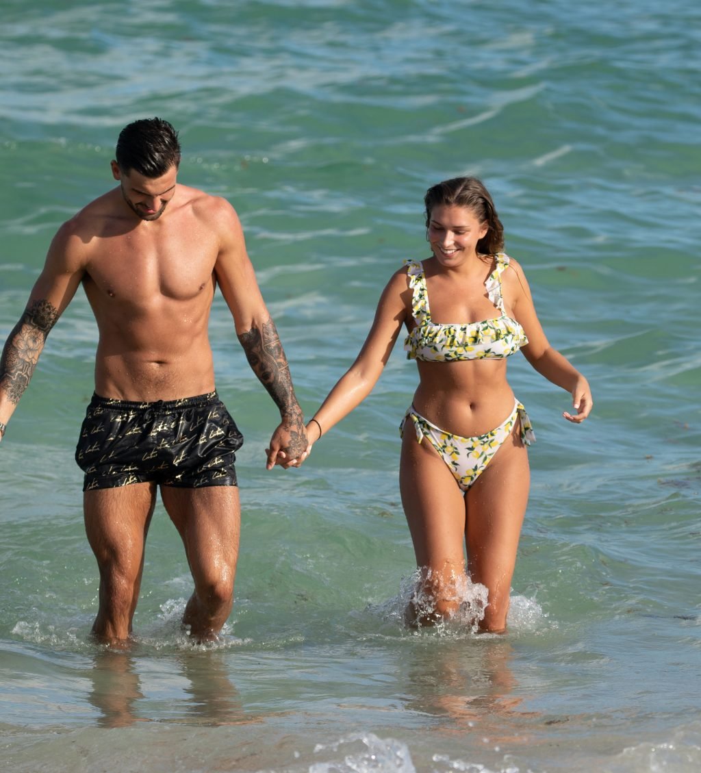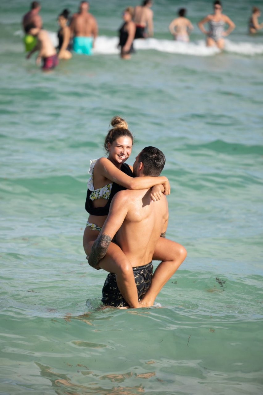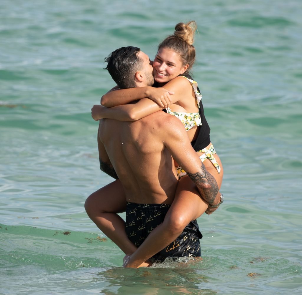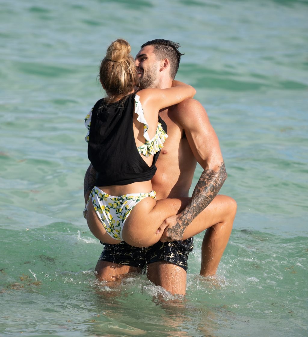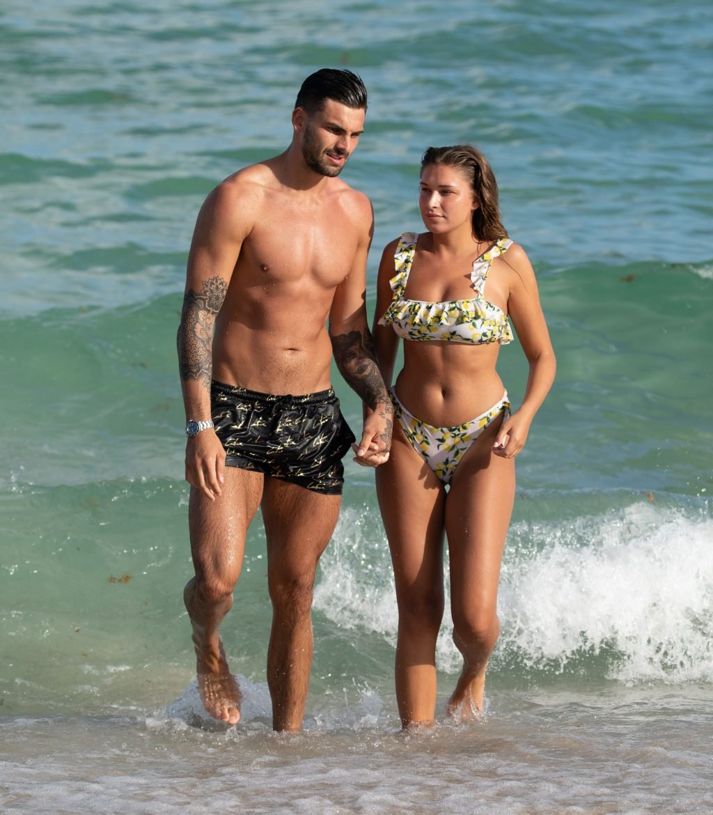 Зара Макдермотт (21) из шоу Love Island и Адам Коллард демонстрируют свои пляжные тела и проявляют больше публичных проявлений чувств на пляже в Майами-Бич, 11/08/2018.