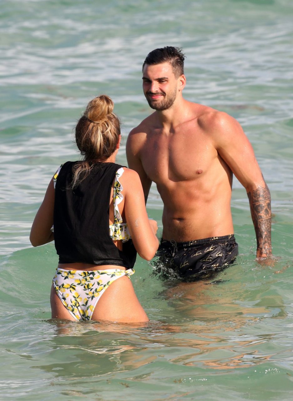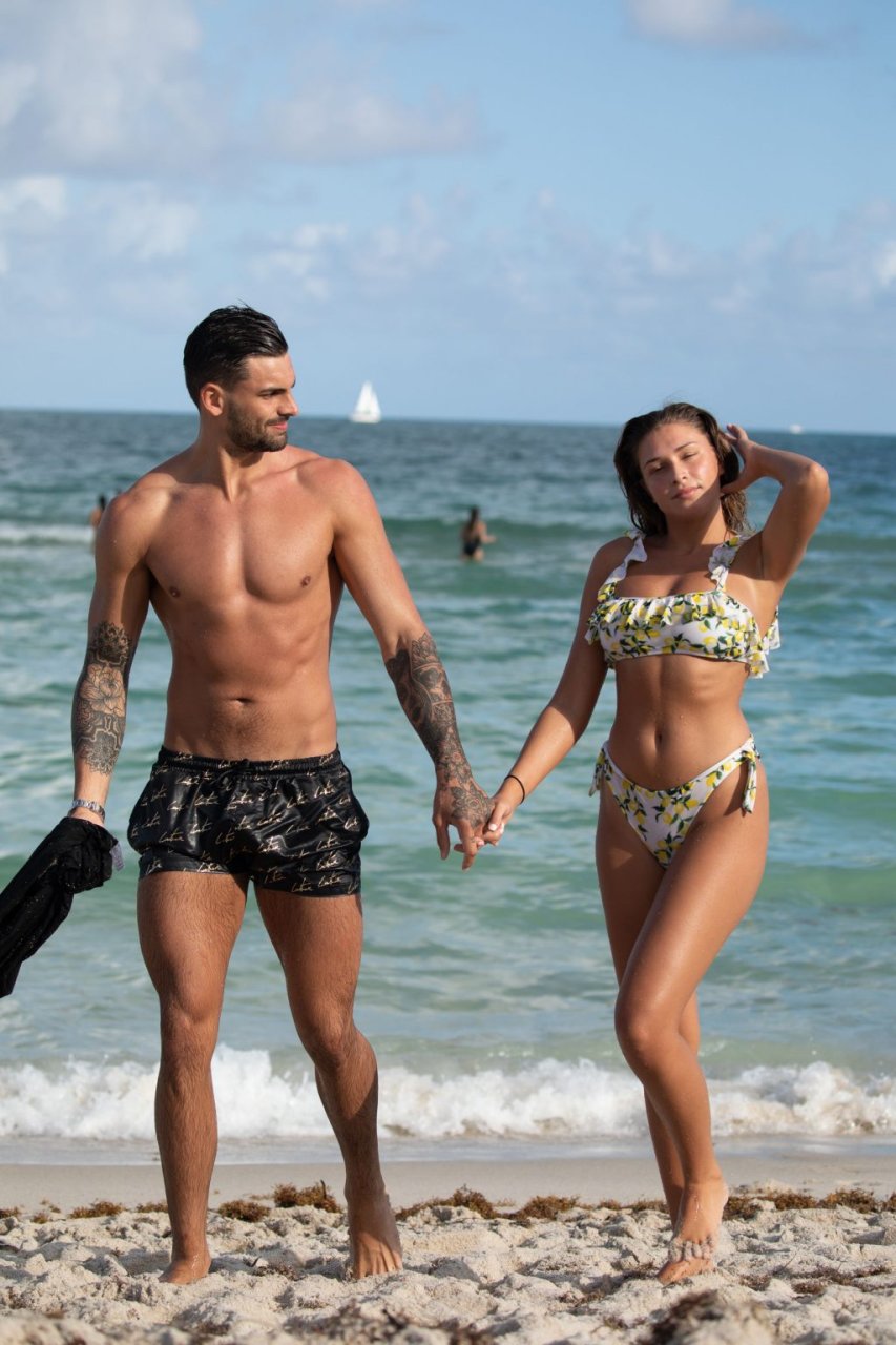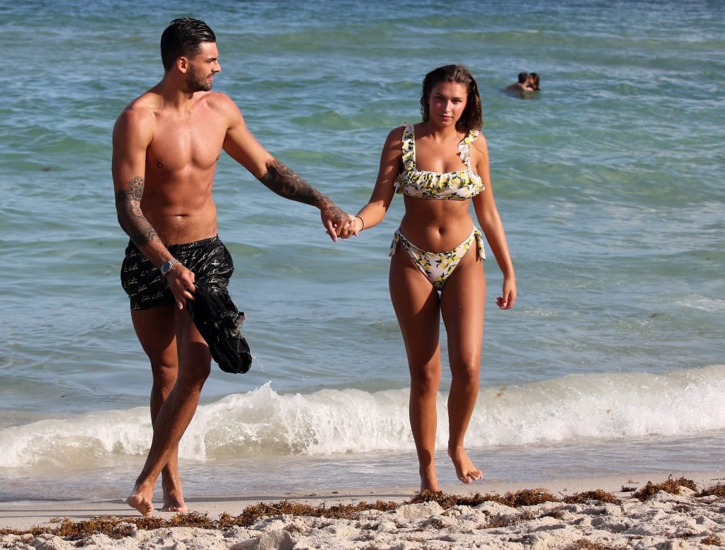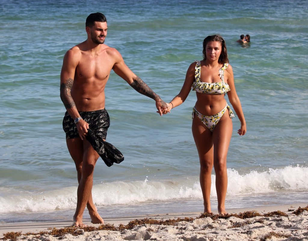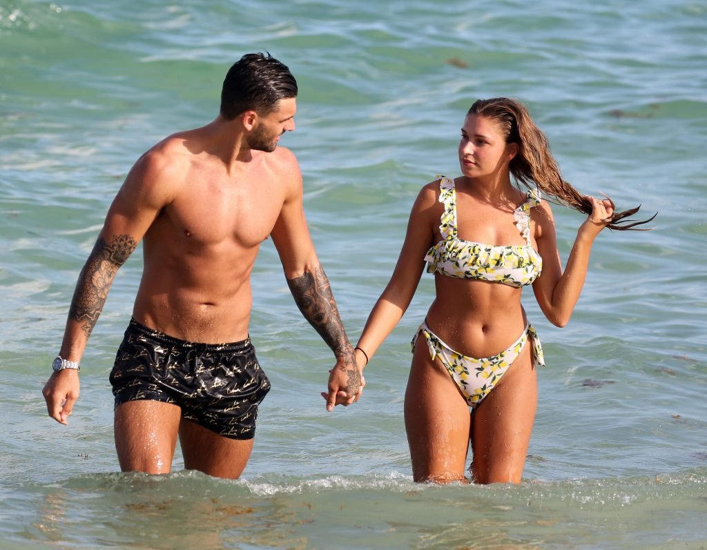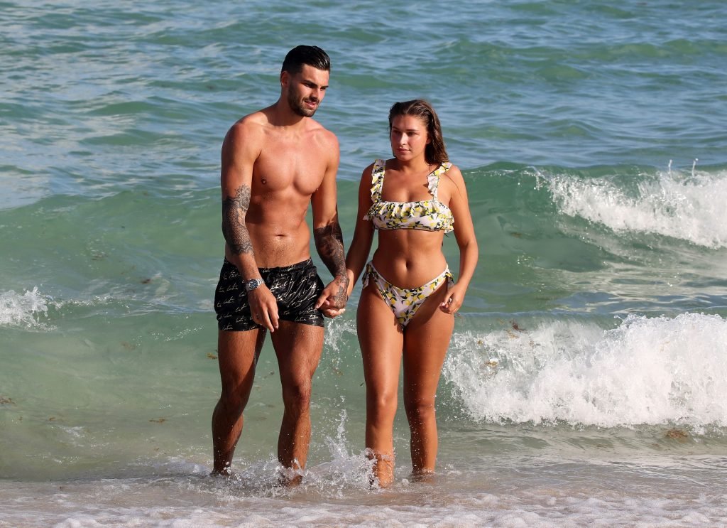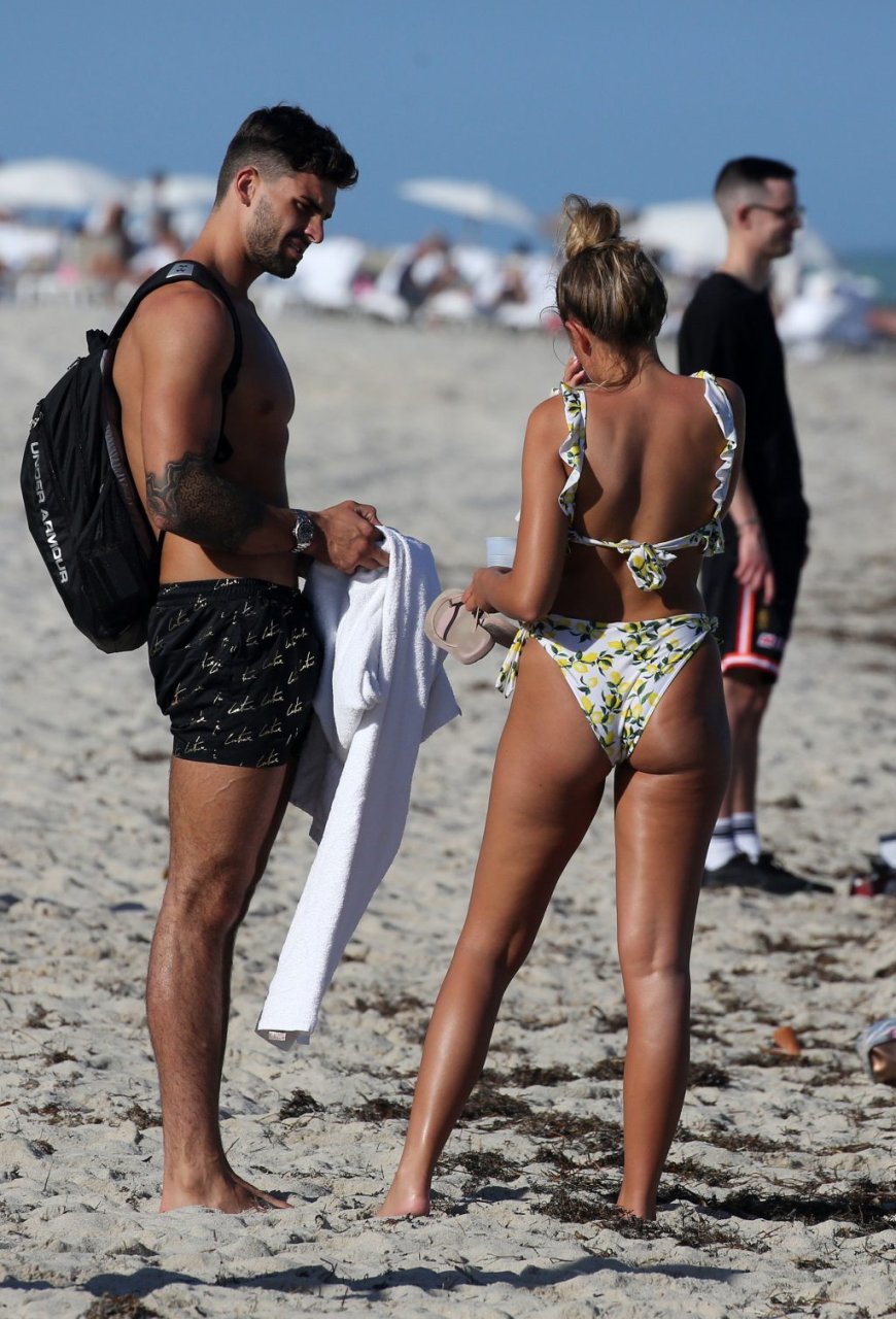 Зара Макдермотт (21) из шоу Love Island и Адам Коллард демонстрируют свои пляжные тела и проявляют больше публичных проявлений чувств на пляже в Майами-Бич, 11/08/2018.