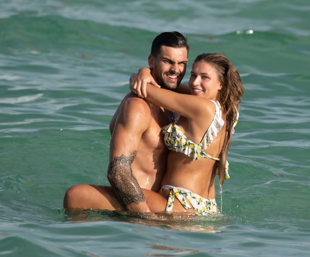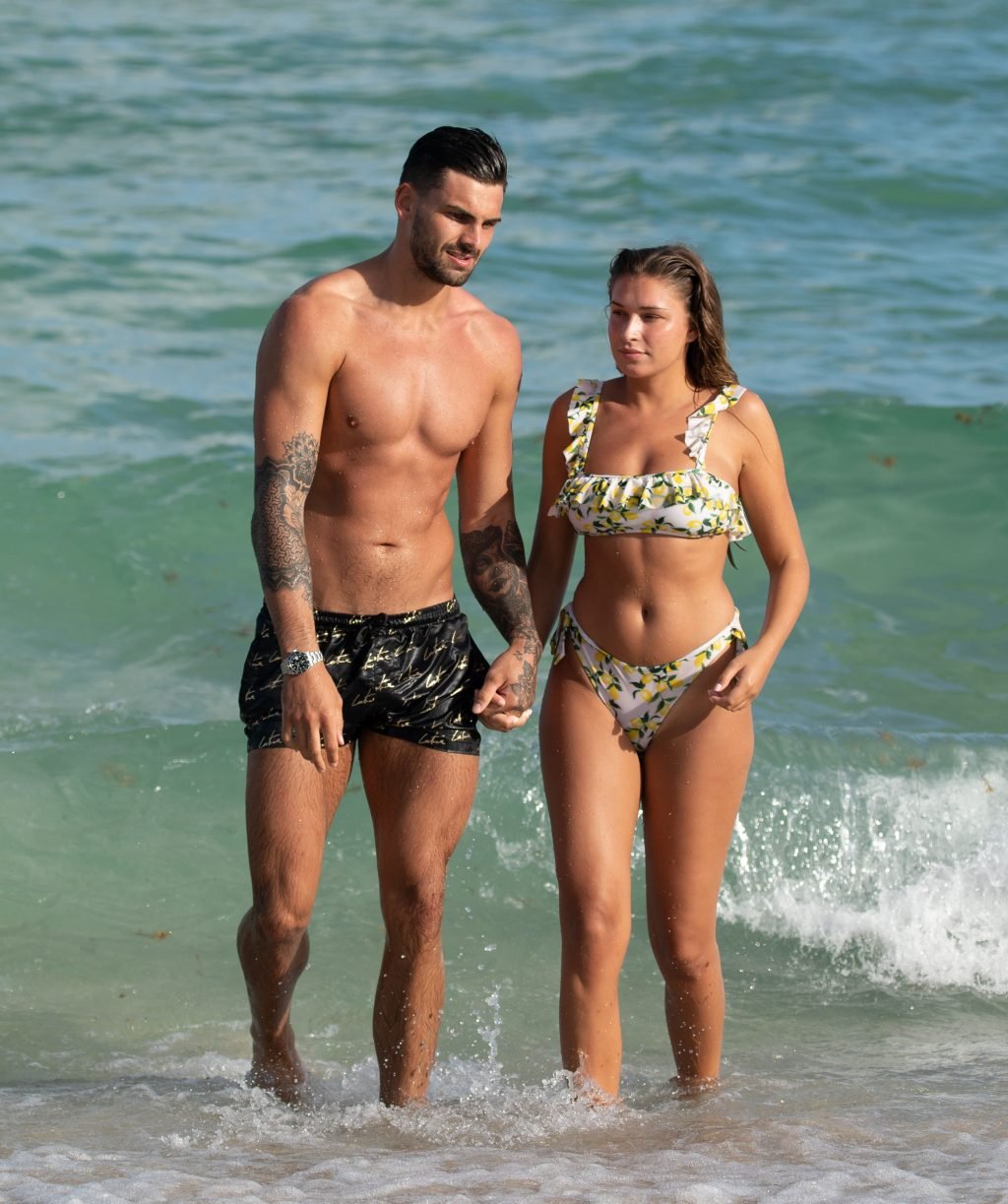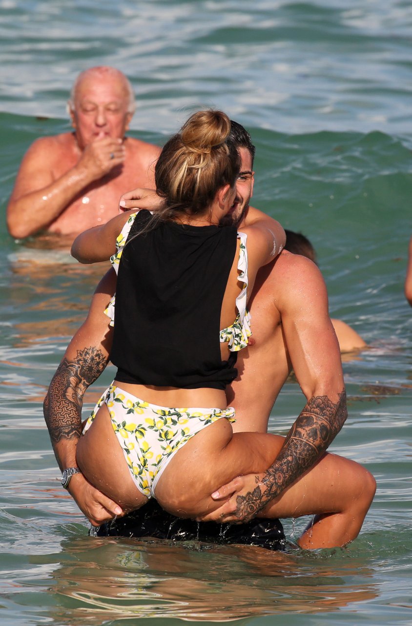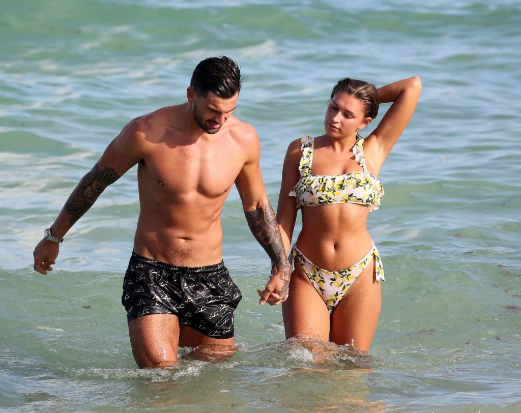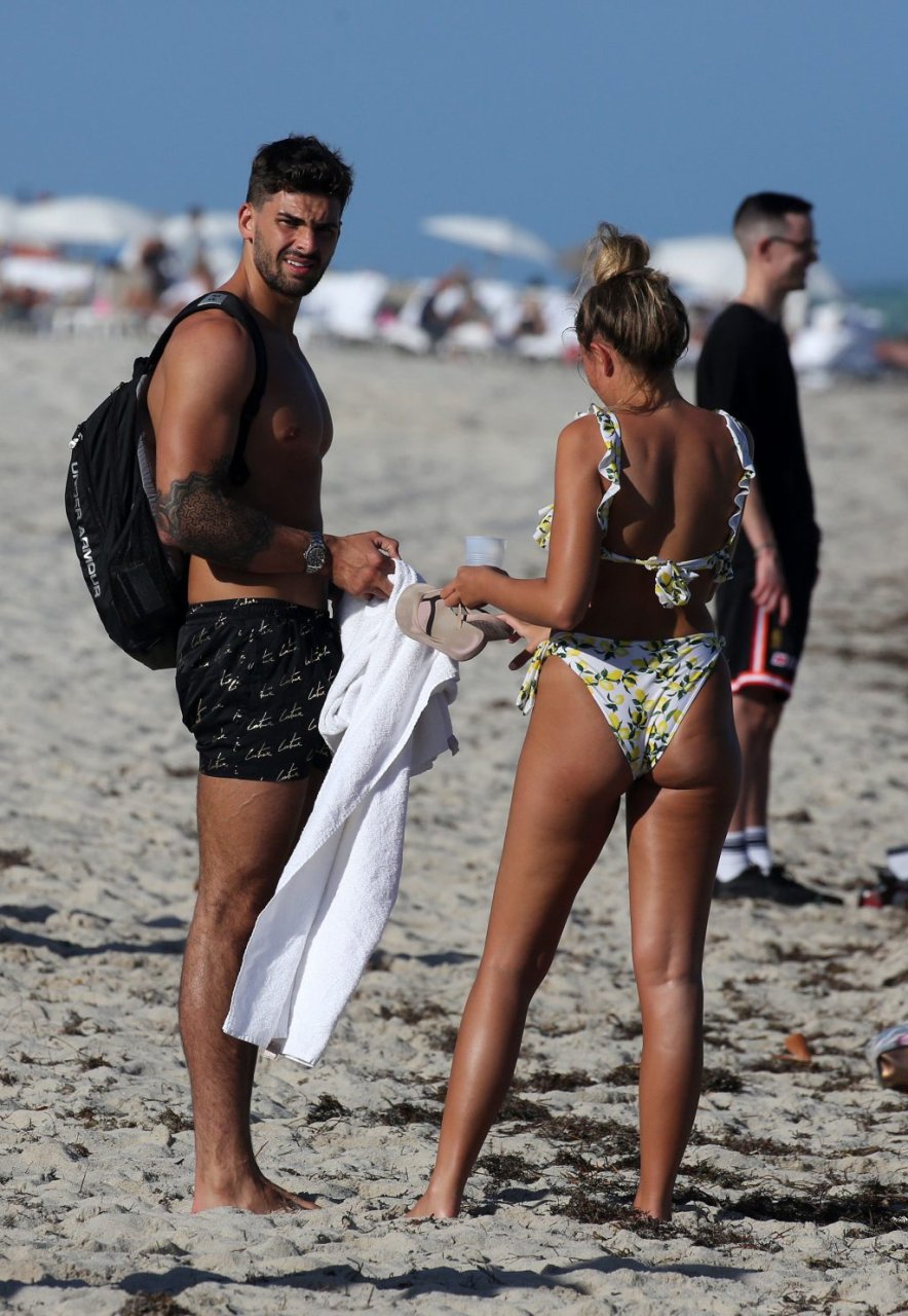 Зара Макдермотт (21) из шоу Love Island и Адам Коллард демонстрируют свои пляжные тела и проявляют больше публичных проявлений чувств на пляже в Майами-Бич, 11/08/2018.