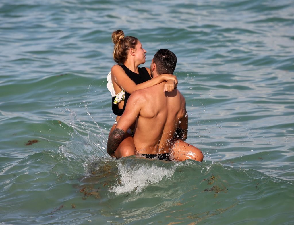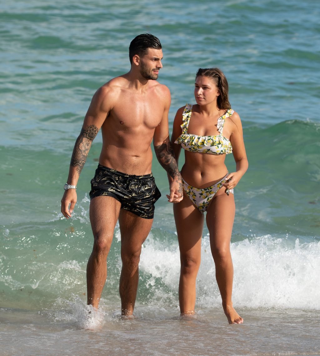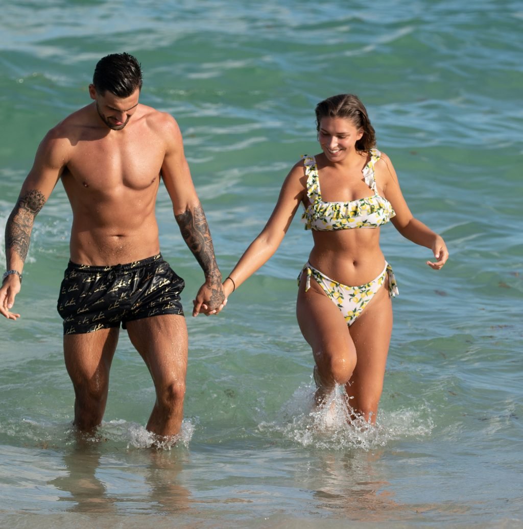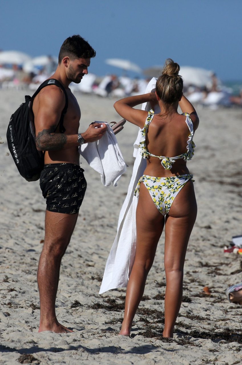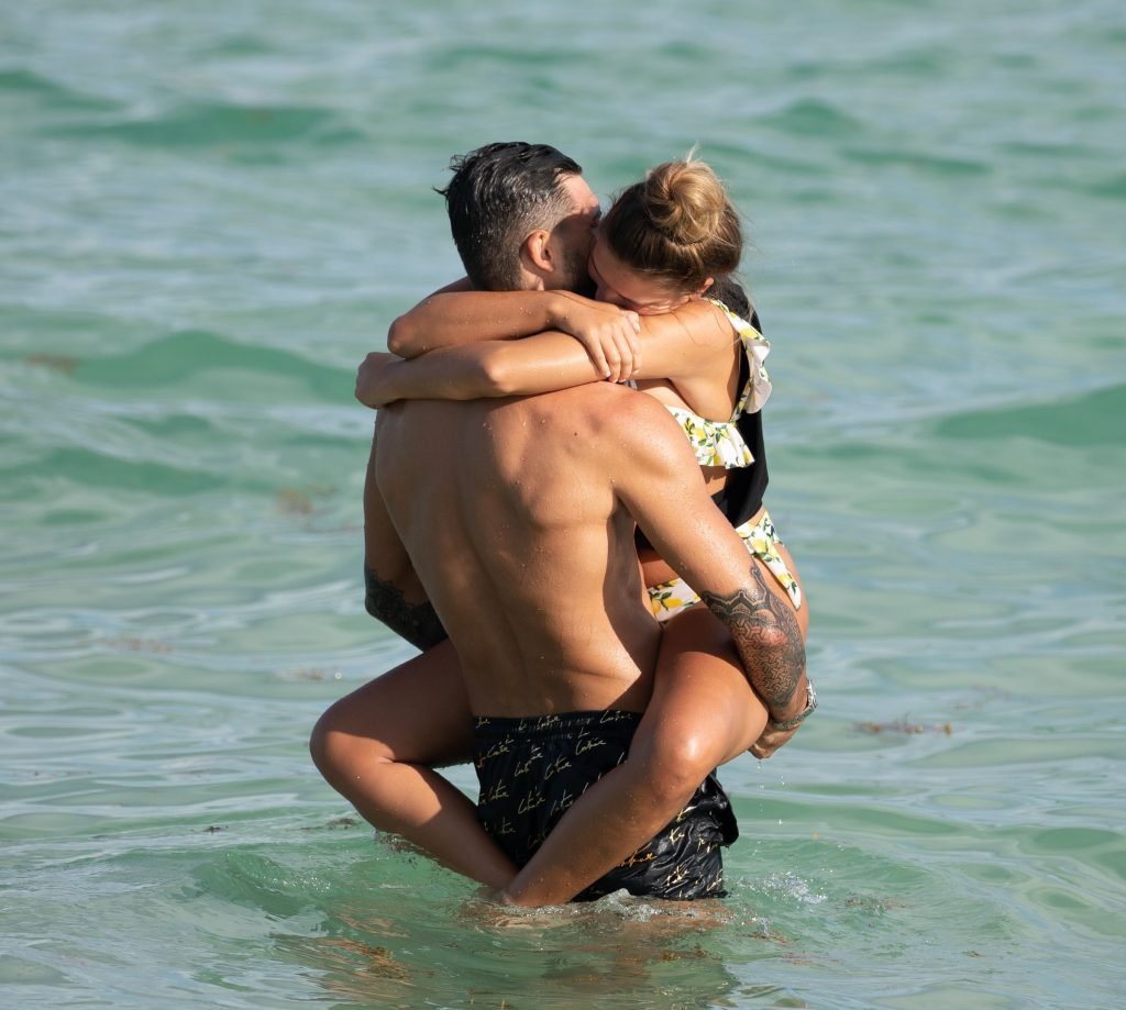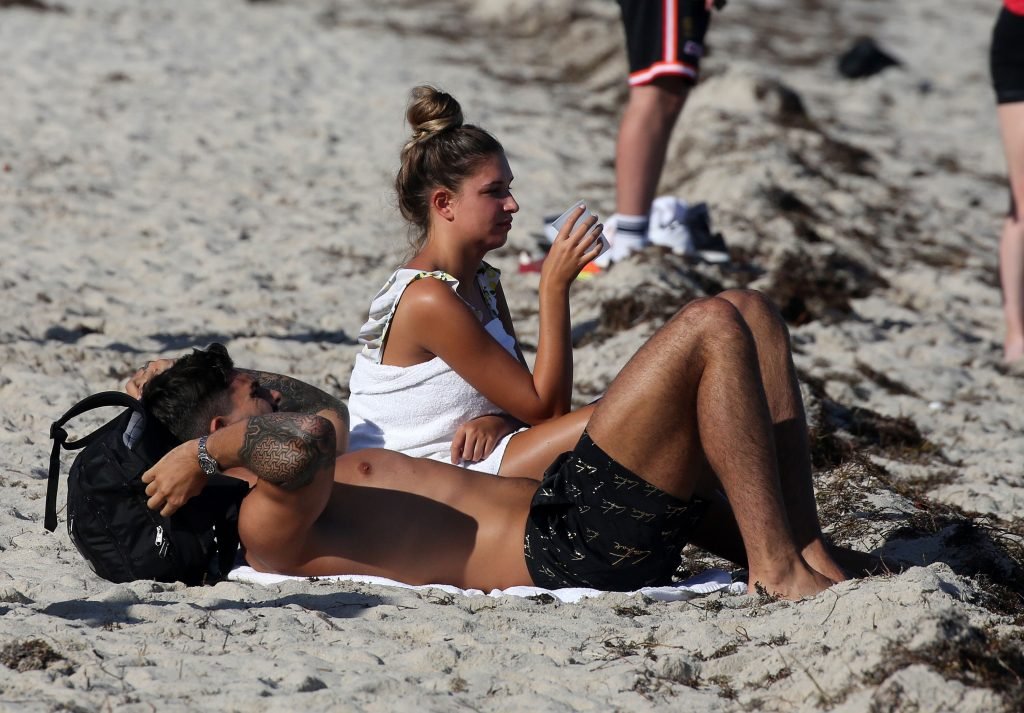 Зара Макдермотт (21) из шоу Love Island и Адам Коллард демонстрируют свои пляжные тела и проявляют больше публичных проявлений чувств на пляже в Майами-Бич, 11/08/2018.