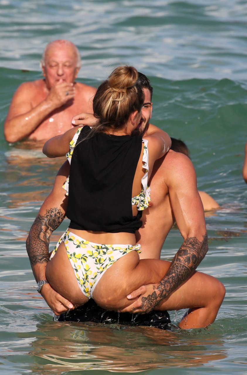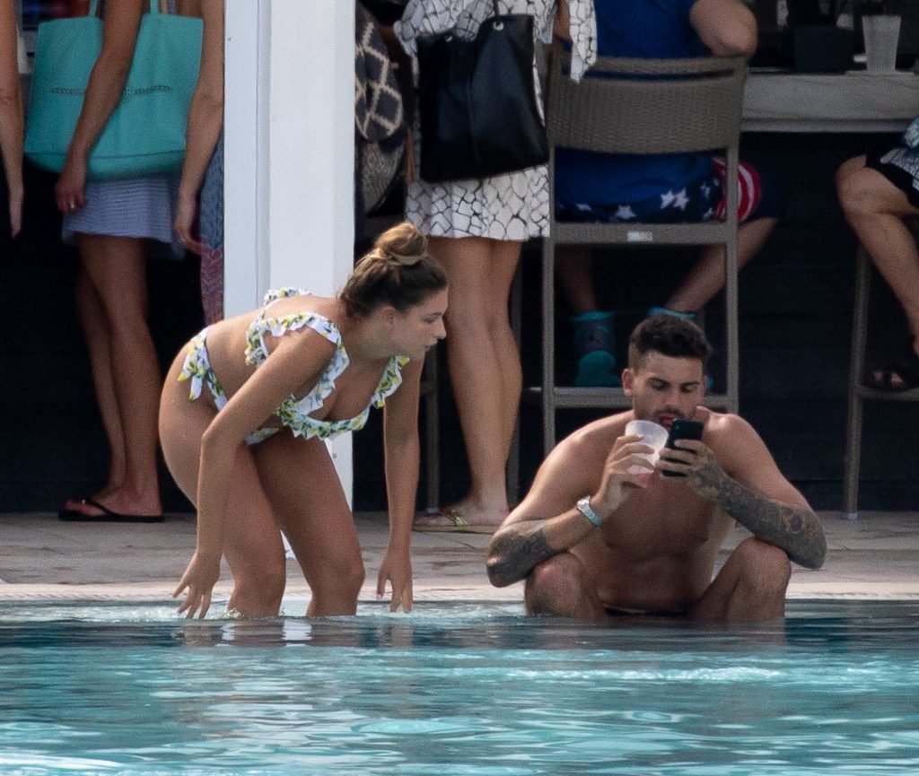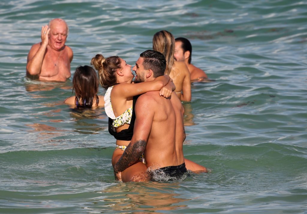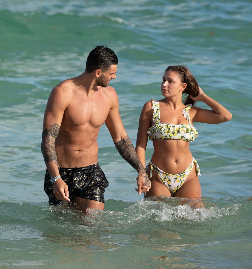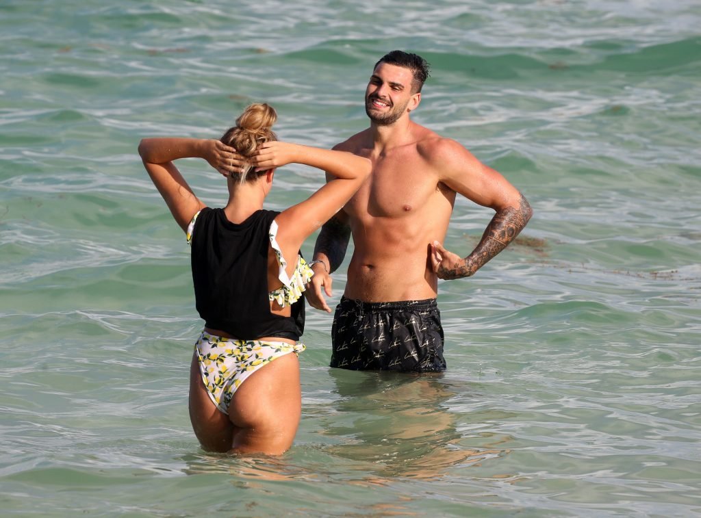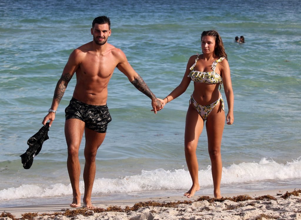 Зара Макдермотт (21) из шоу Love Island и Адам Коллард демонстрируют свои пляжные тела и проявляют больше публичных проявлений чувств на пляже в Майами-Бич, 11/08/2018.