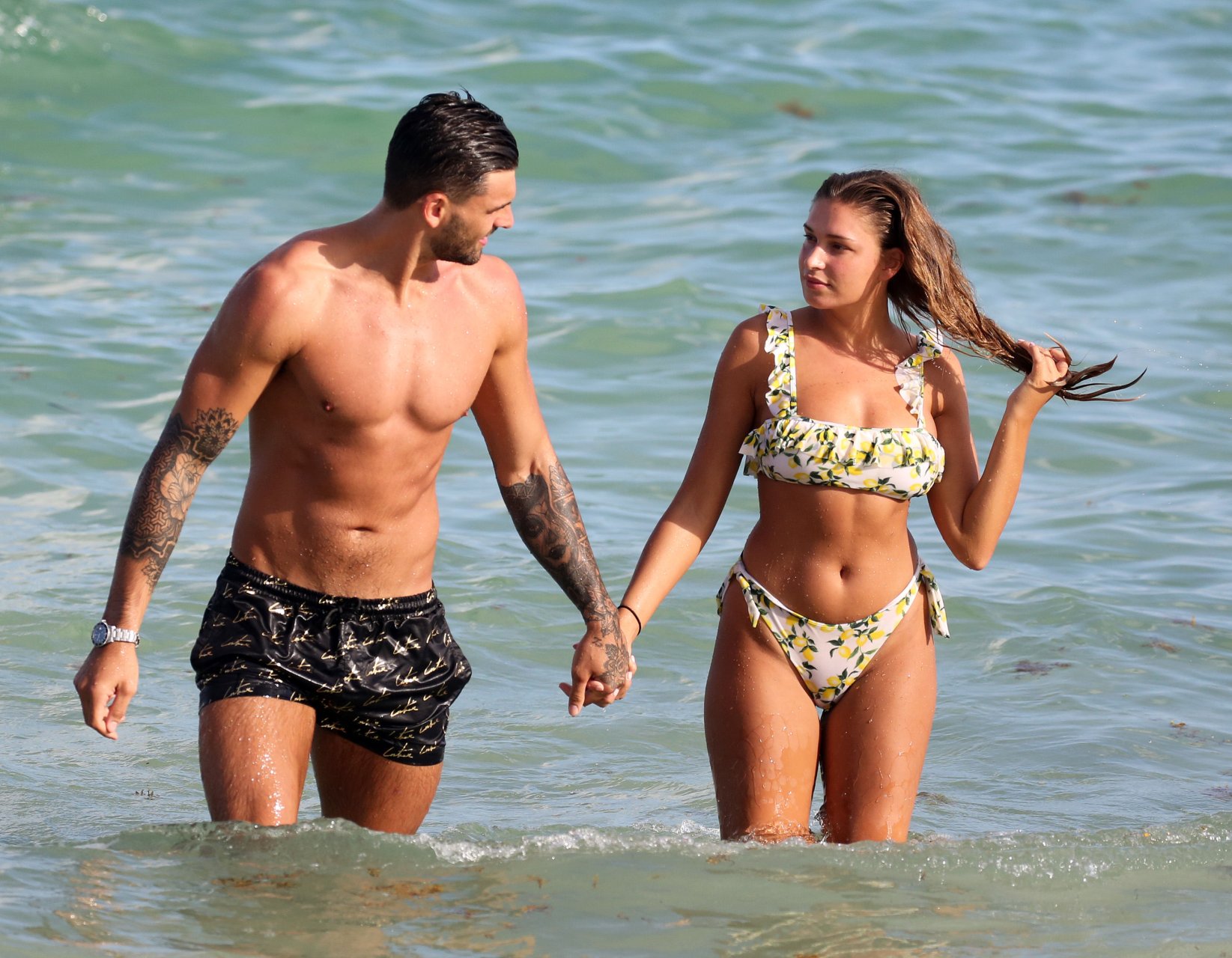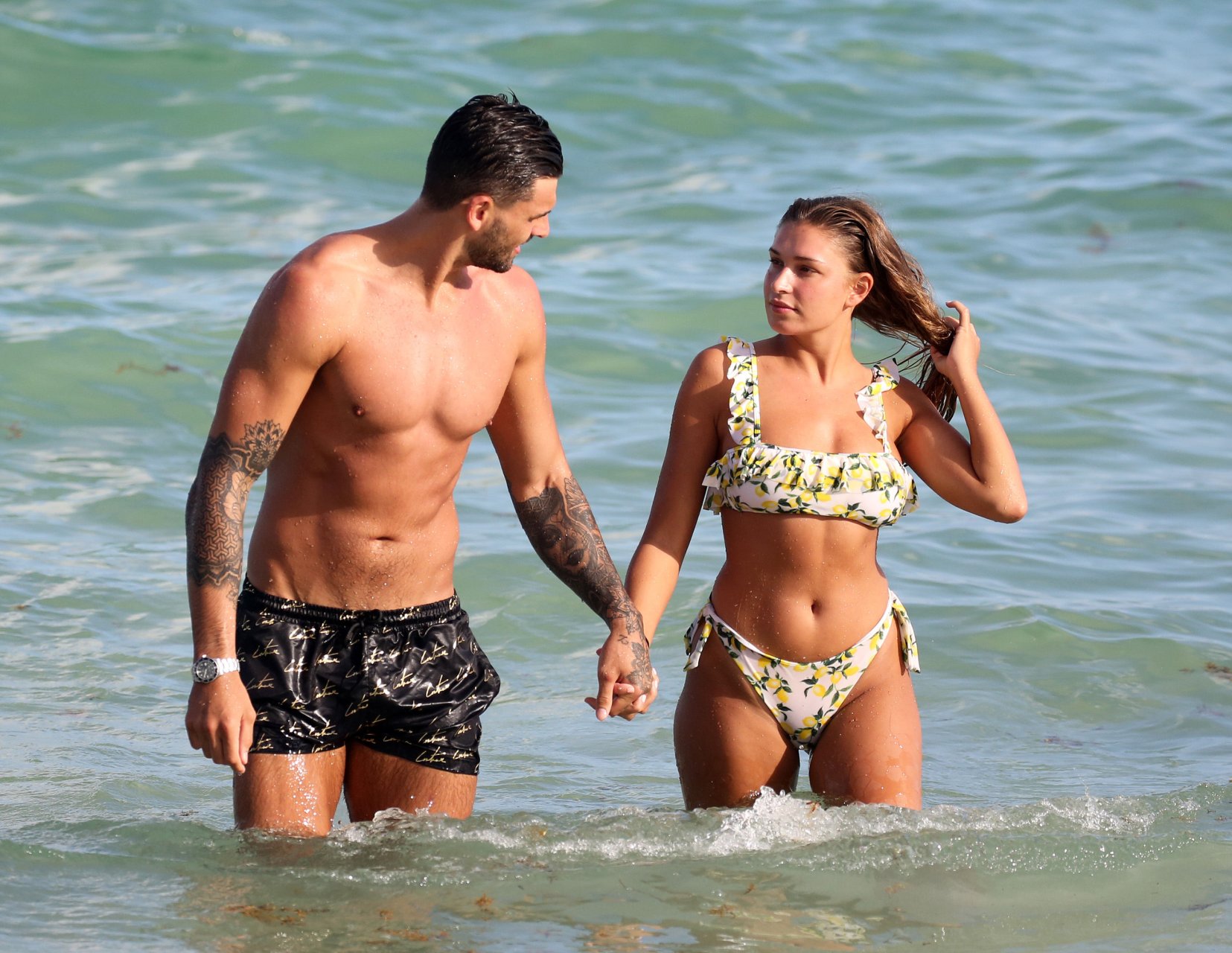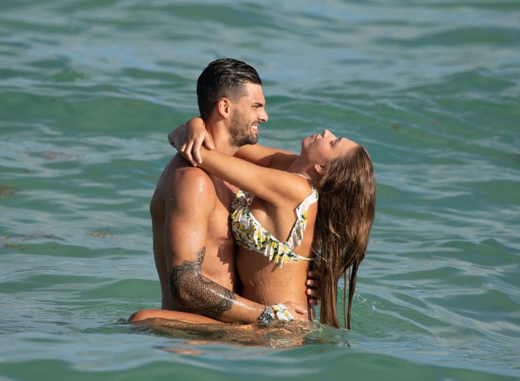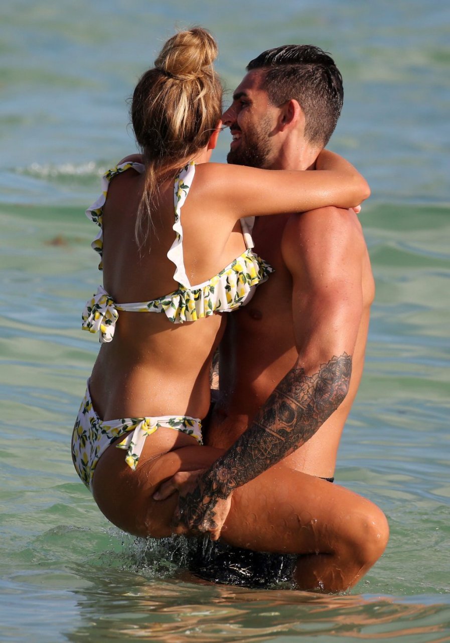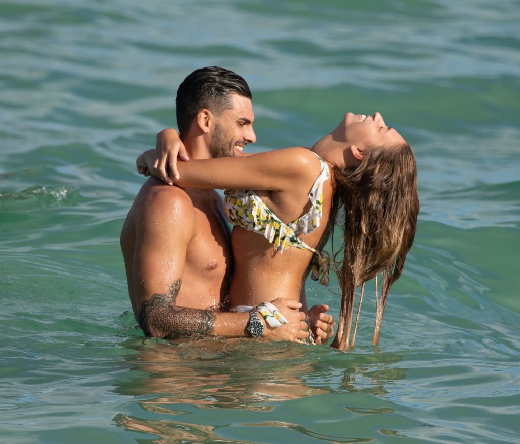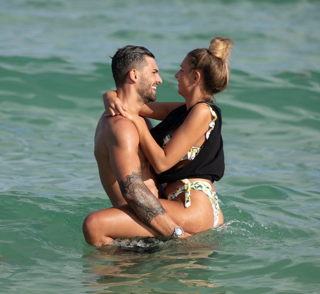 Зара Макдермотт (21) из шоу Love Island и Адам Коллард демонстрируют свои пляжные тела и проявляют больше публичных проявлений чувств на пляже в Майами-Бич, 11/08/2018.