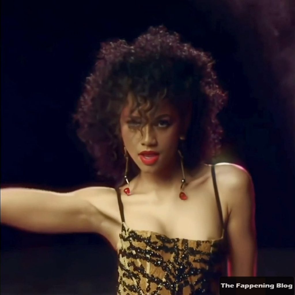 Актриса Зендая показывает свою обнаженную грудь в видеоклипе ниже из недавней фотосессии для журнала Vogue (2022).